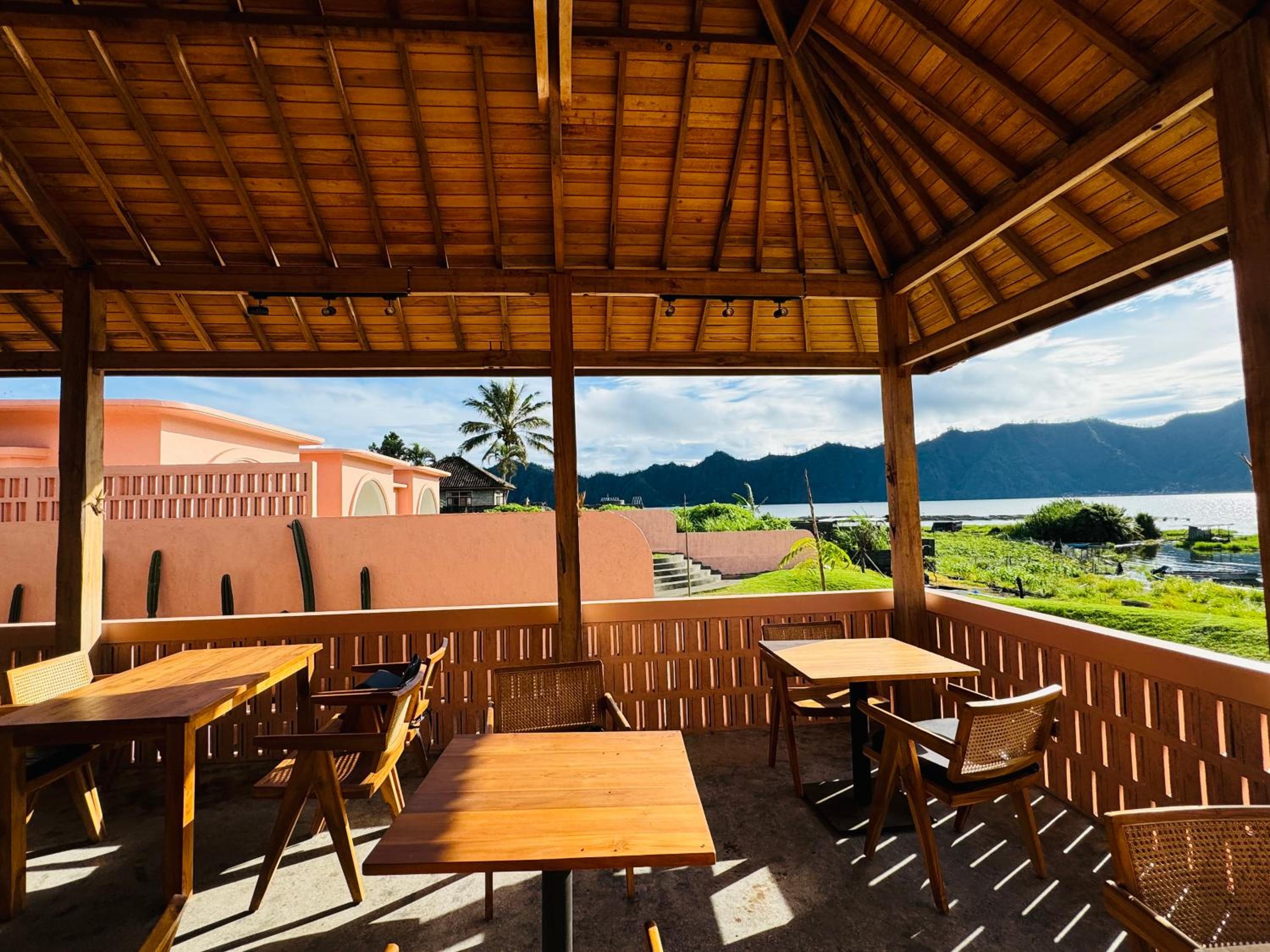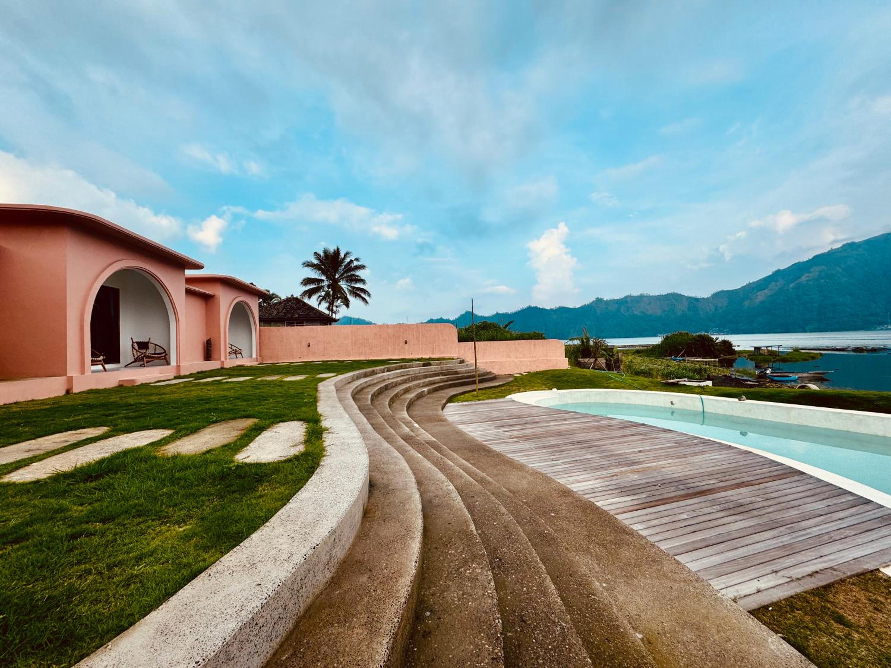 This is brand new accommodation that is spotlessly clean and well designed. The more expensive rooms have uninterrupted views of the lake and mountains and the hotel’s swimming pool in the foreground. The room itself was first rate. Bed was comfortable, decor was nicely styled, and the bathroom had a bath and hot water. Staff were incredibly friendly with good communication. We booked a sunrise trek to Ganung Batur through the front desk and our guide on the trek was exceptional and accomodating to our various levels of fitness.