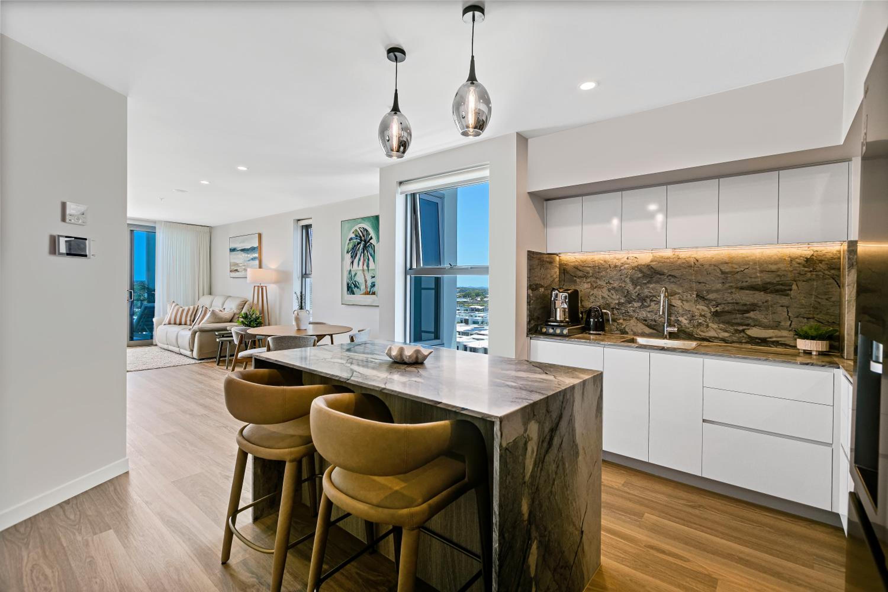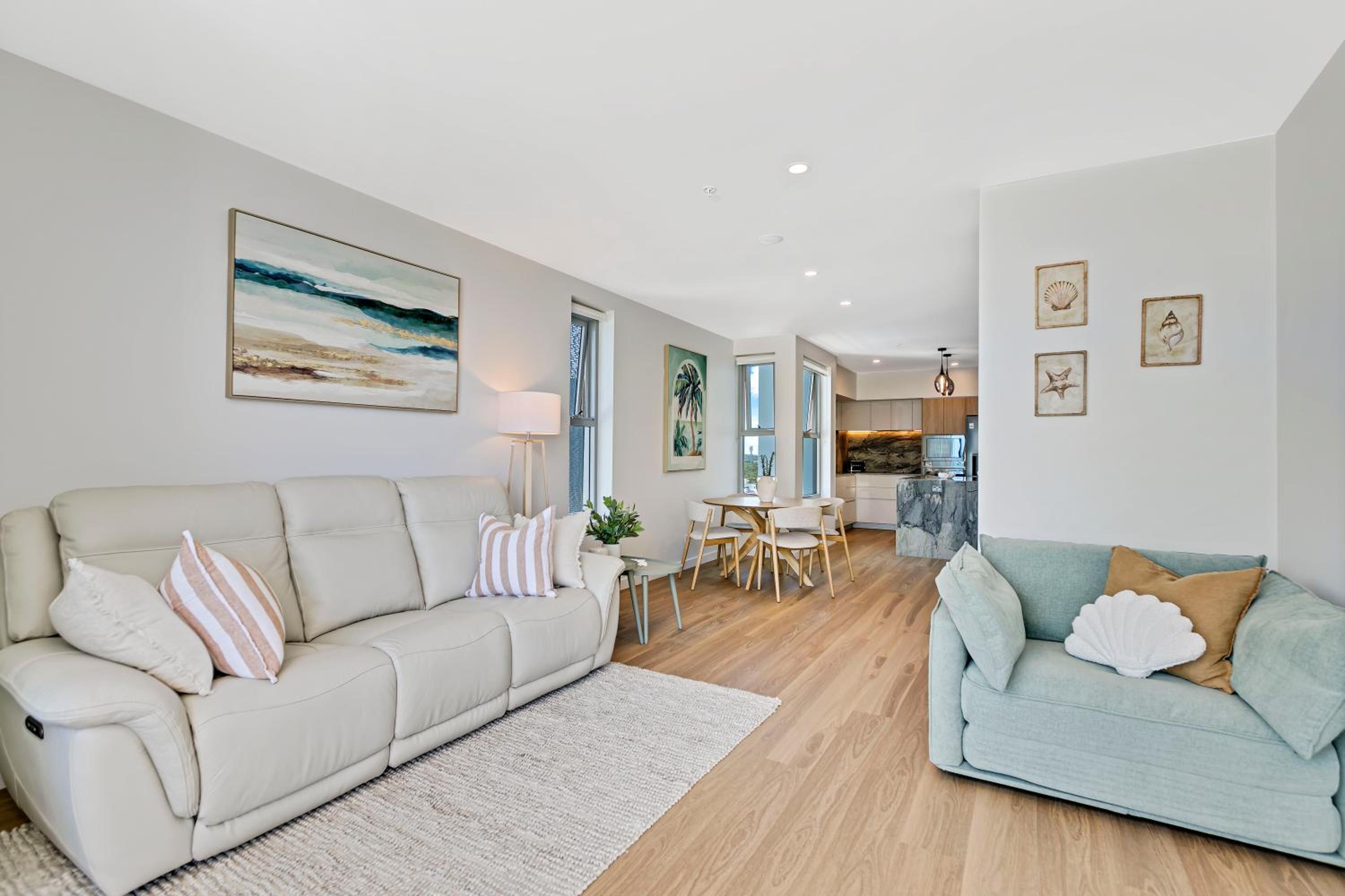 Experience luxury and relaxation at Azzure Bokarina Penthouse, where modern elegance meets beachfront bliss just a short stroll from Kawana Beach.