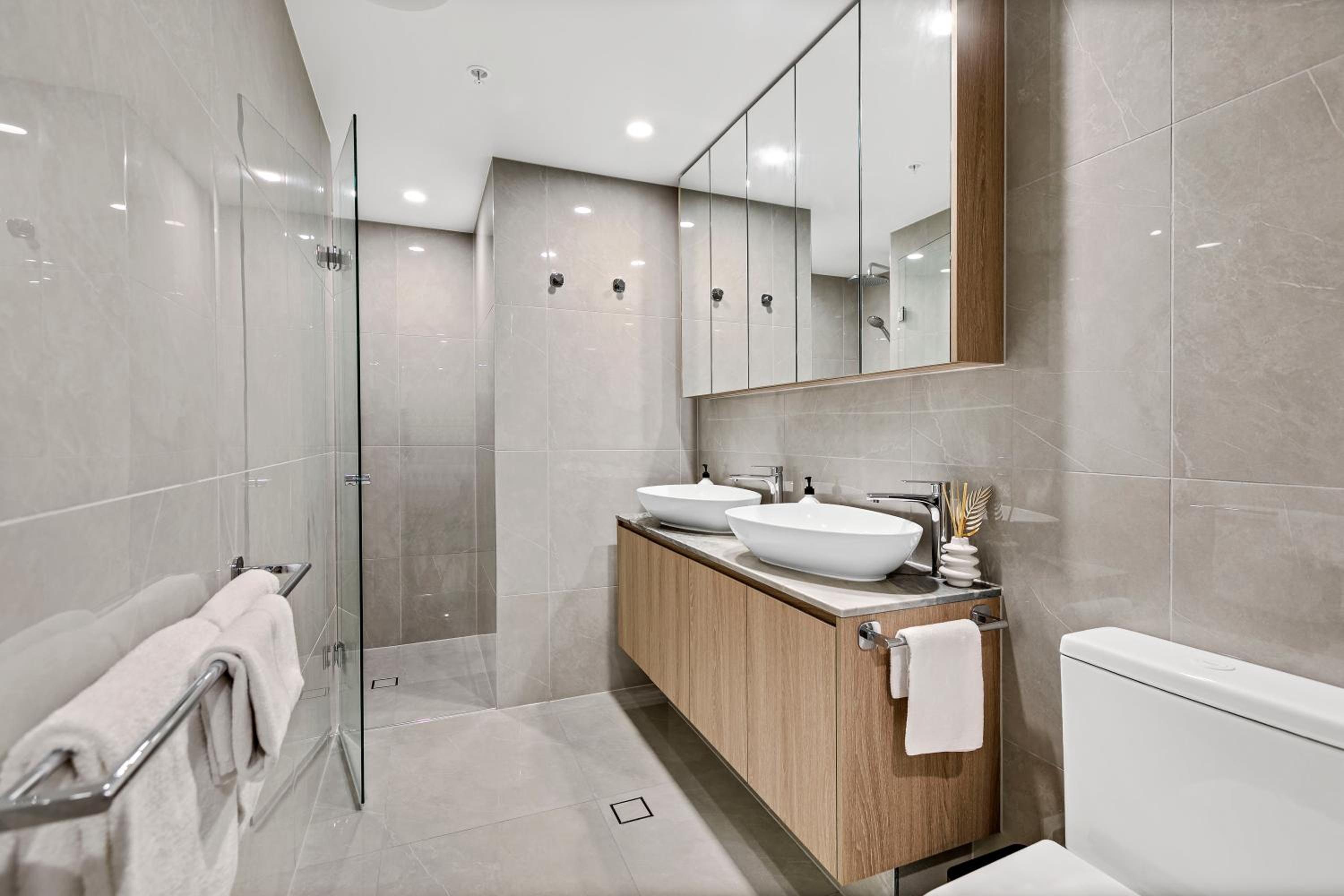 The apartment was fantastic spacious, clean with 3 air-cin units, comfortable beds and a big balcony. There were chocolate treats and a bottle of bubbly left by staff.