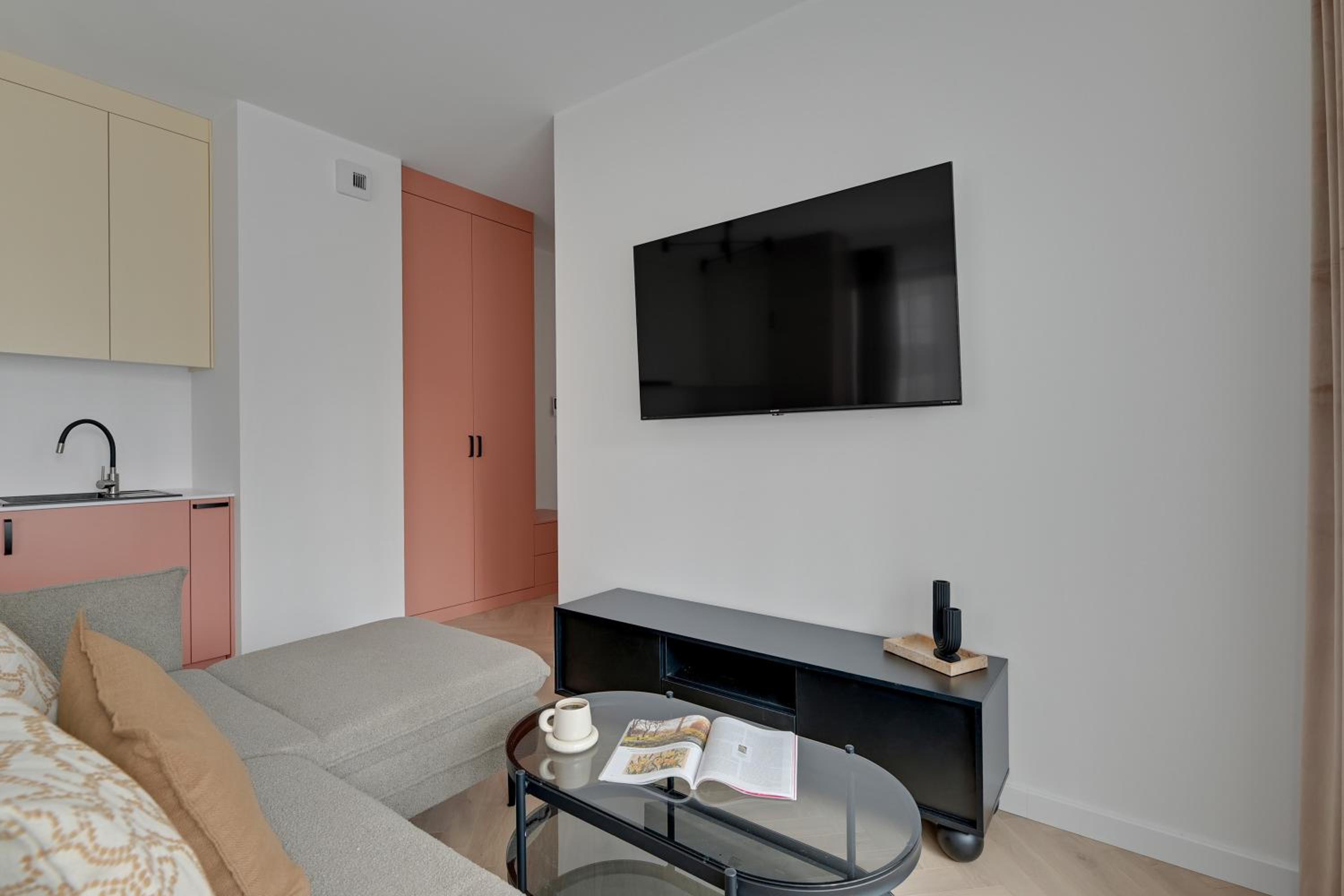 Jedyna rzecz to brak jeszcze telewizji rozumiem że dopiero oddany do użytku apartament myślę że wszystko musi się jeszcze dotrzeć 😉