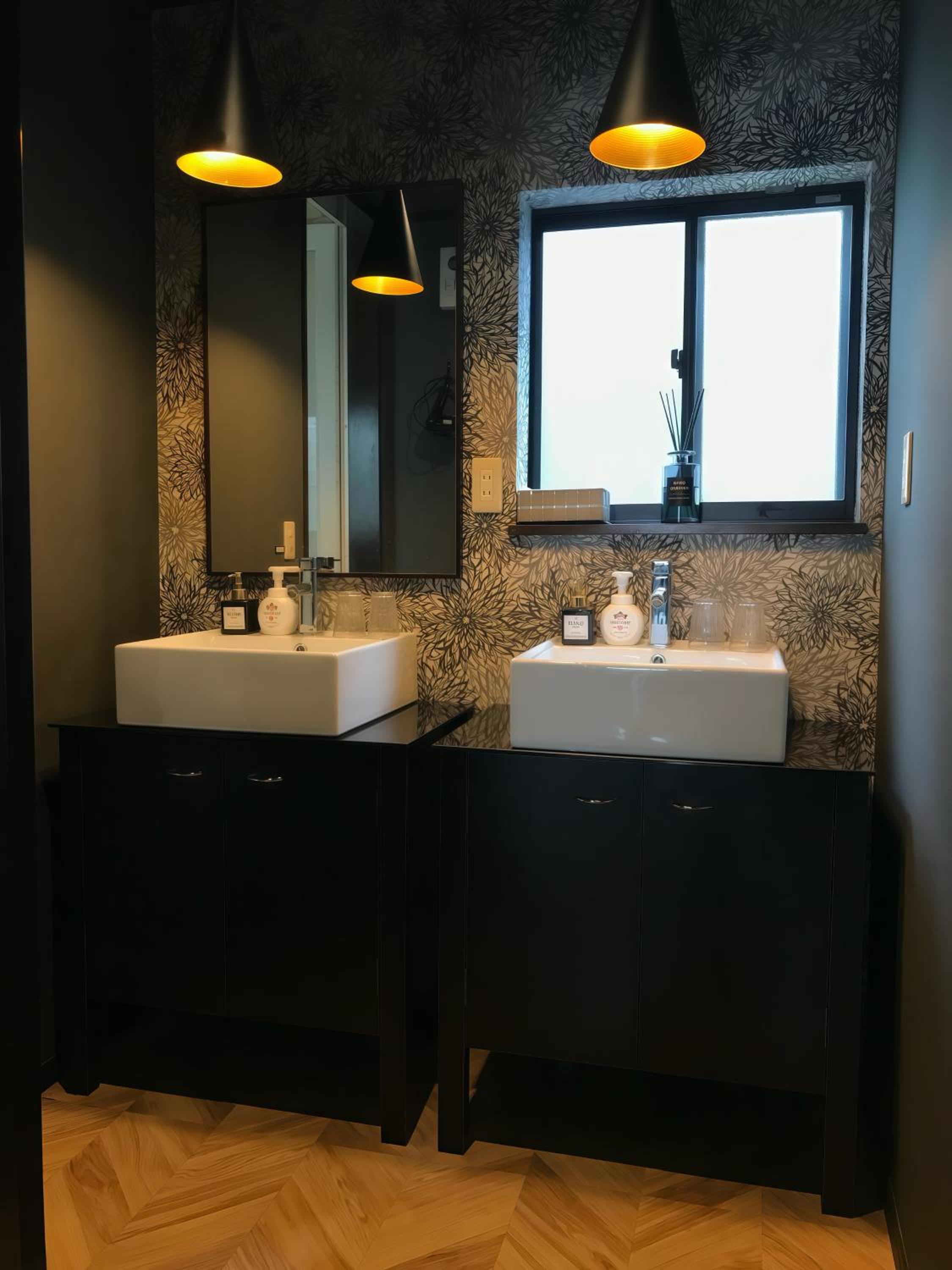 洗面台の鏡の水跡や、ドアノブのベタつきなどがあった