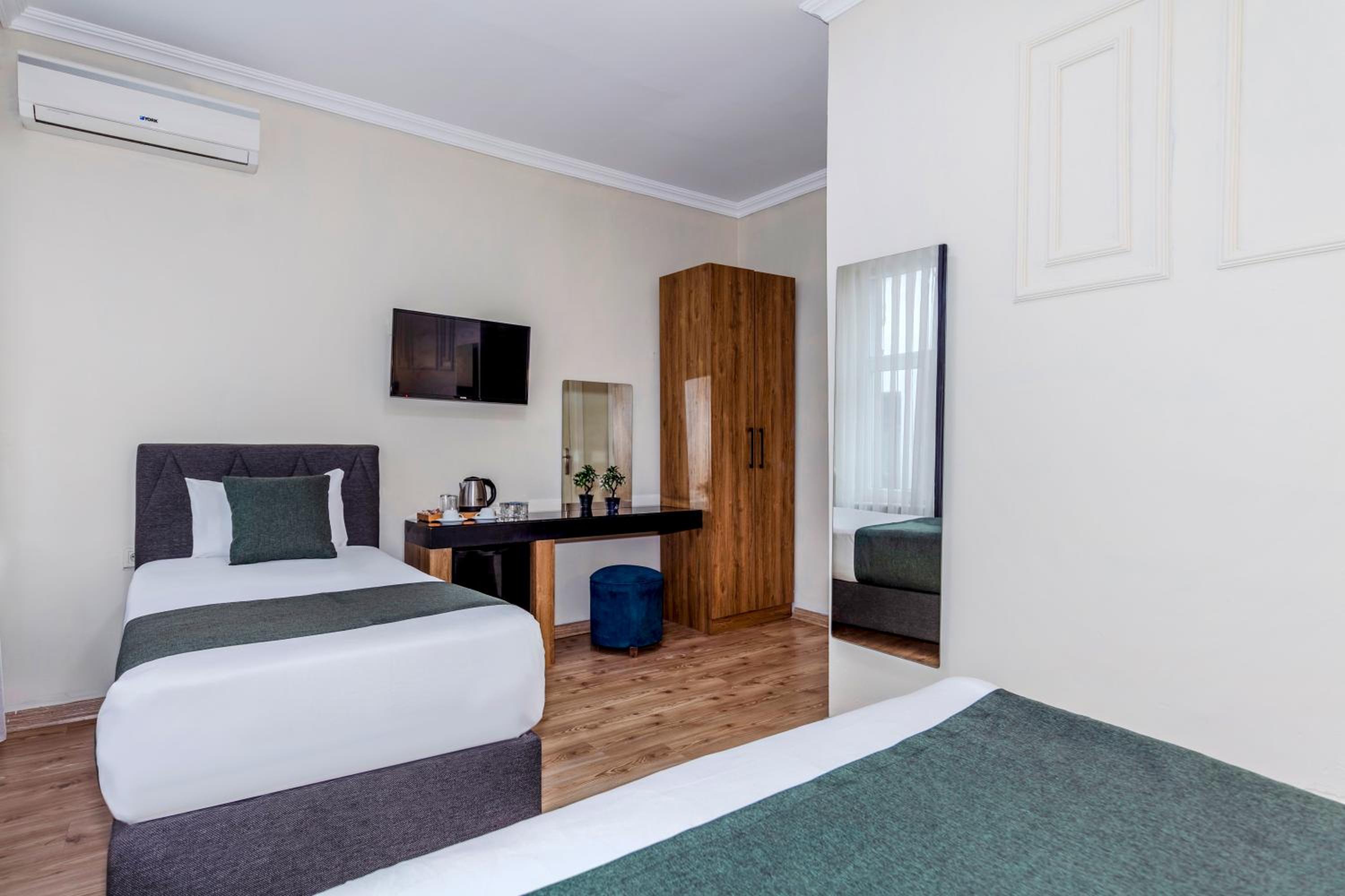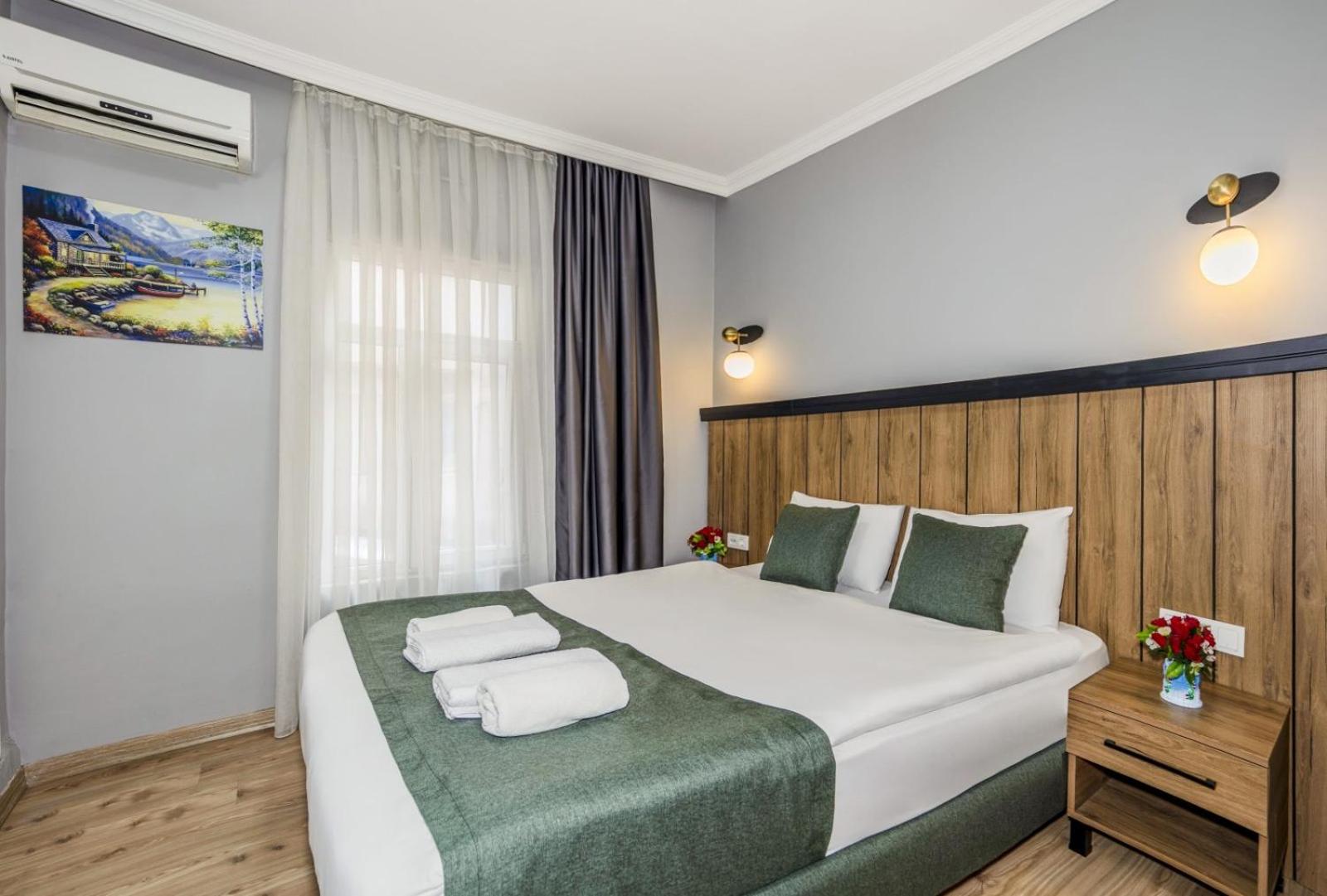 The hotel is centrally located in the Taksim/Istiklal Street area of Istanbul; you can easily reach many restaurants, cafes and public transport stops on foot.