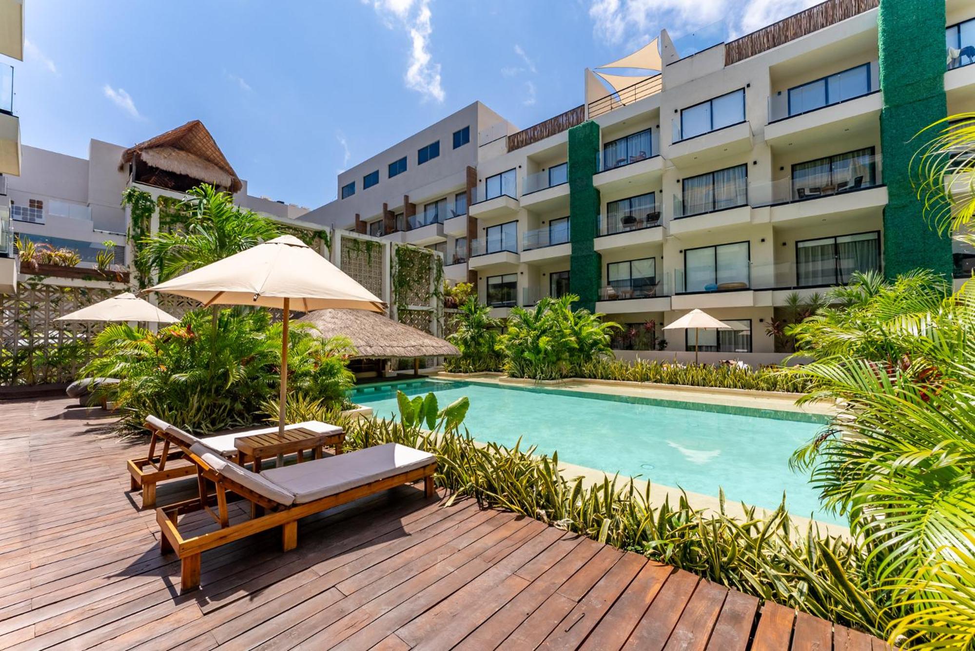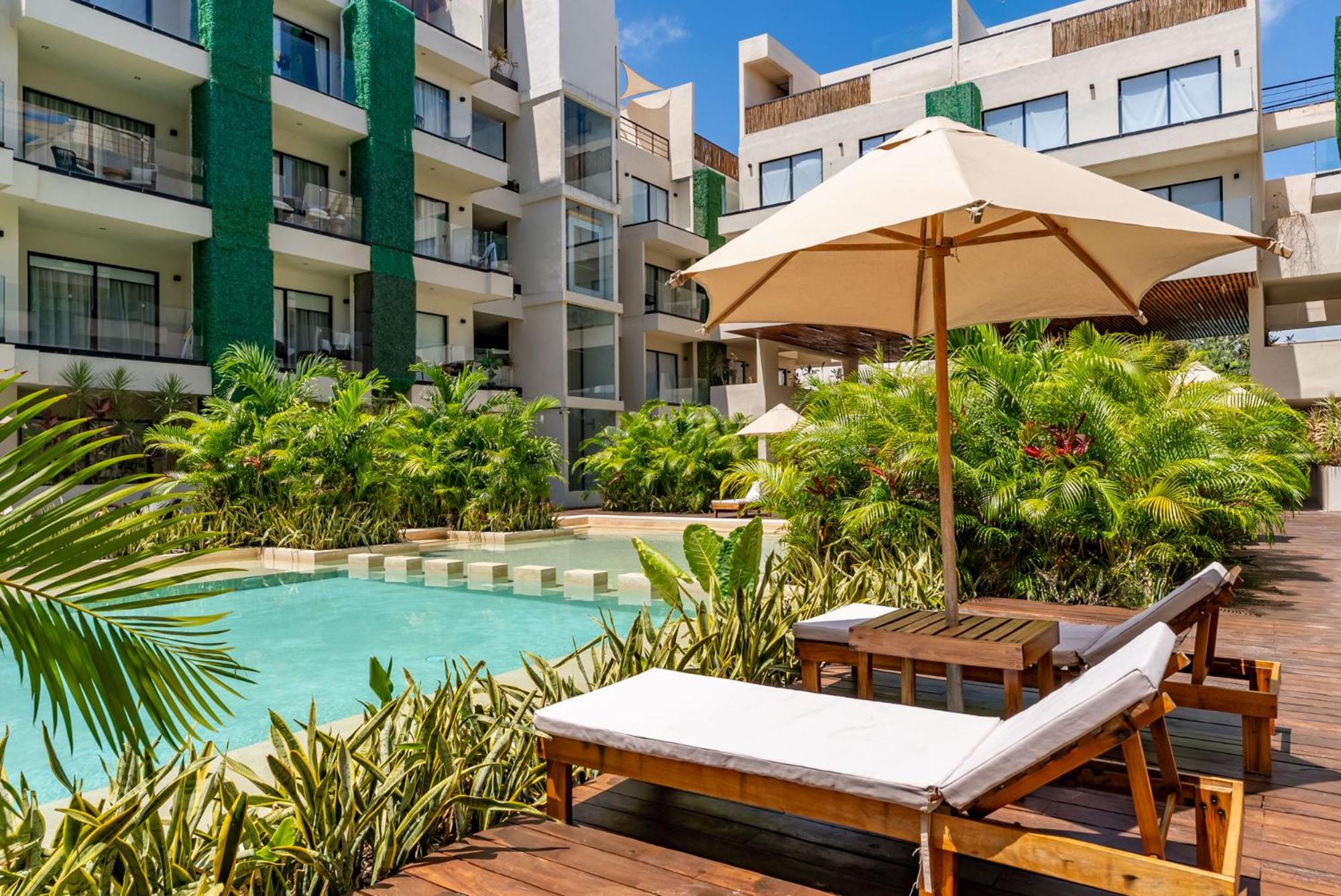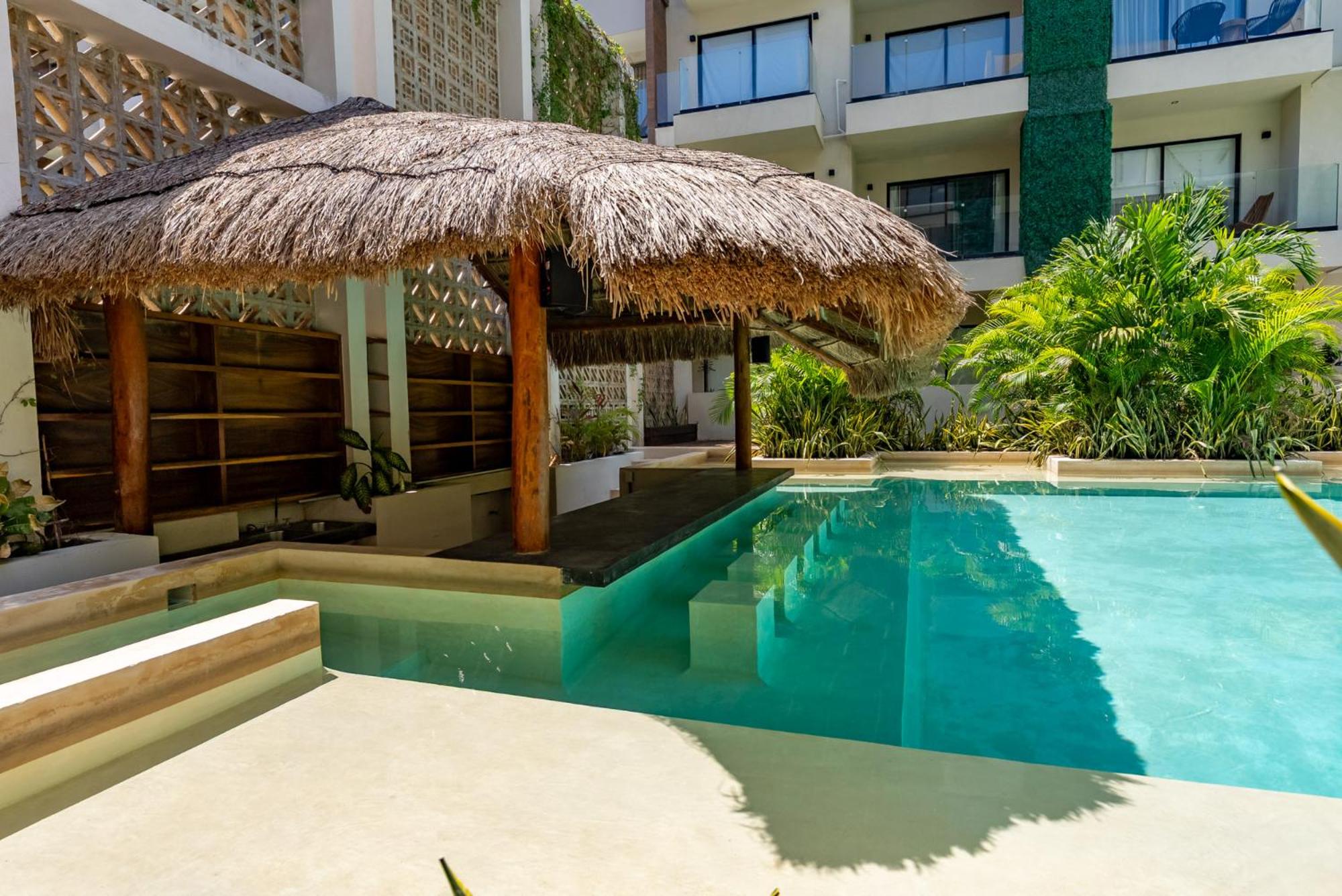 Dive into relaxation at our inviting outdoor swimming pool, perfect for soaking up the sun and unwinding after a day of exploring the nearby Tulum Archeological Site.