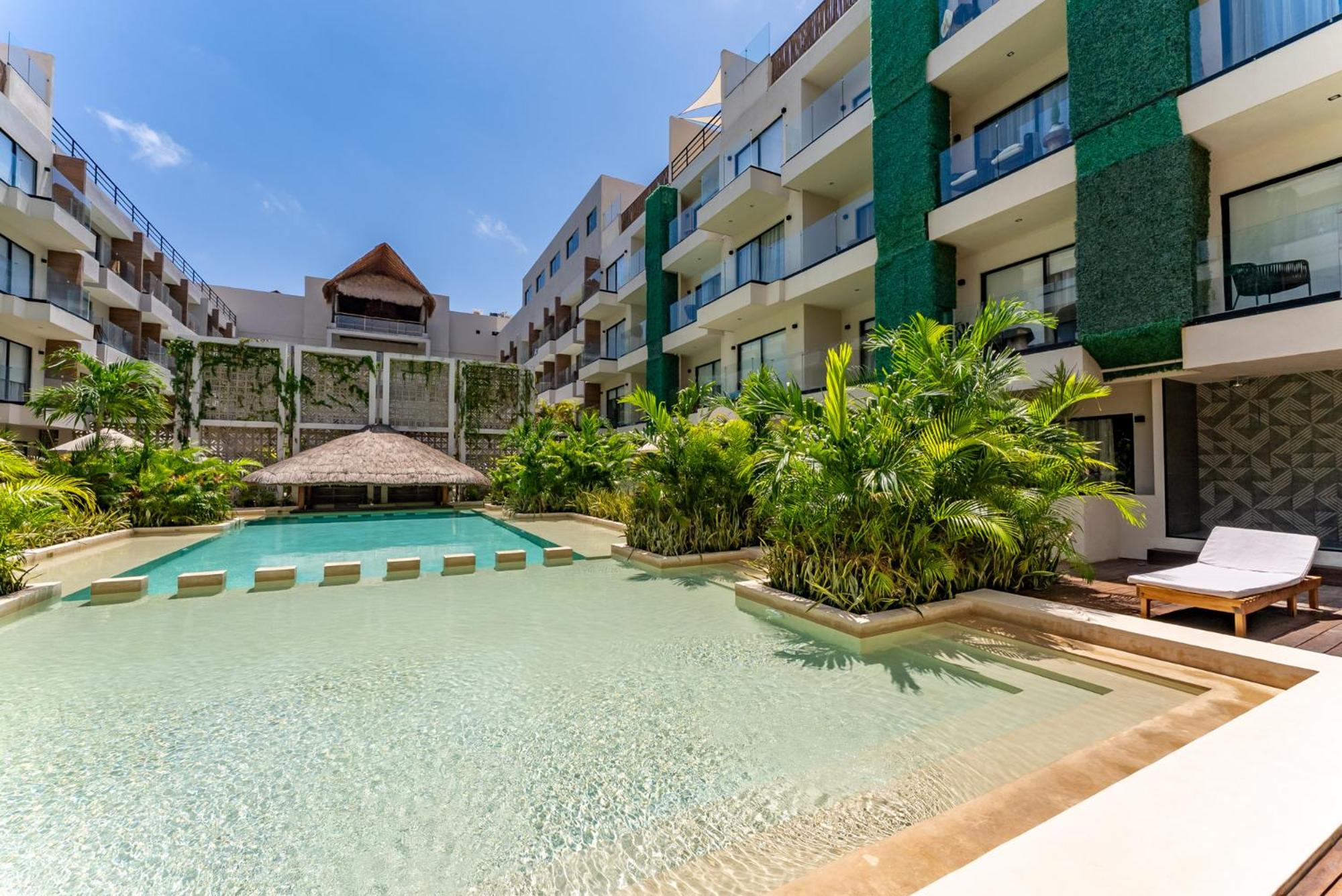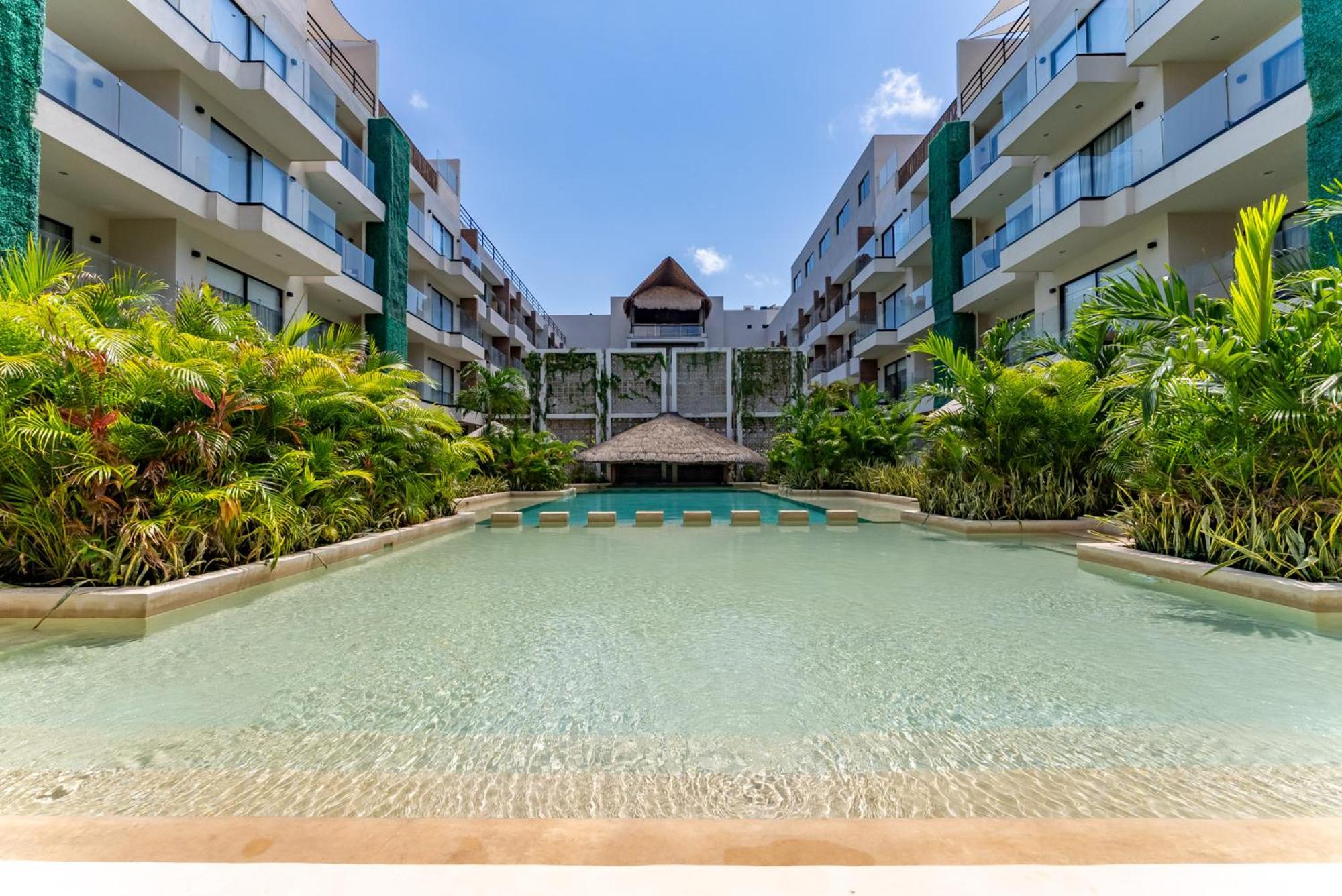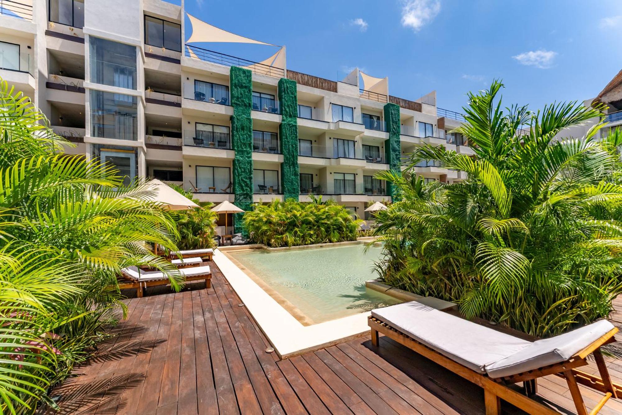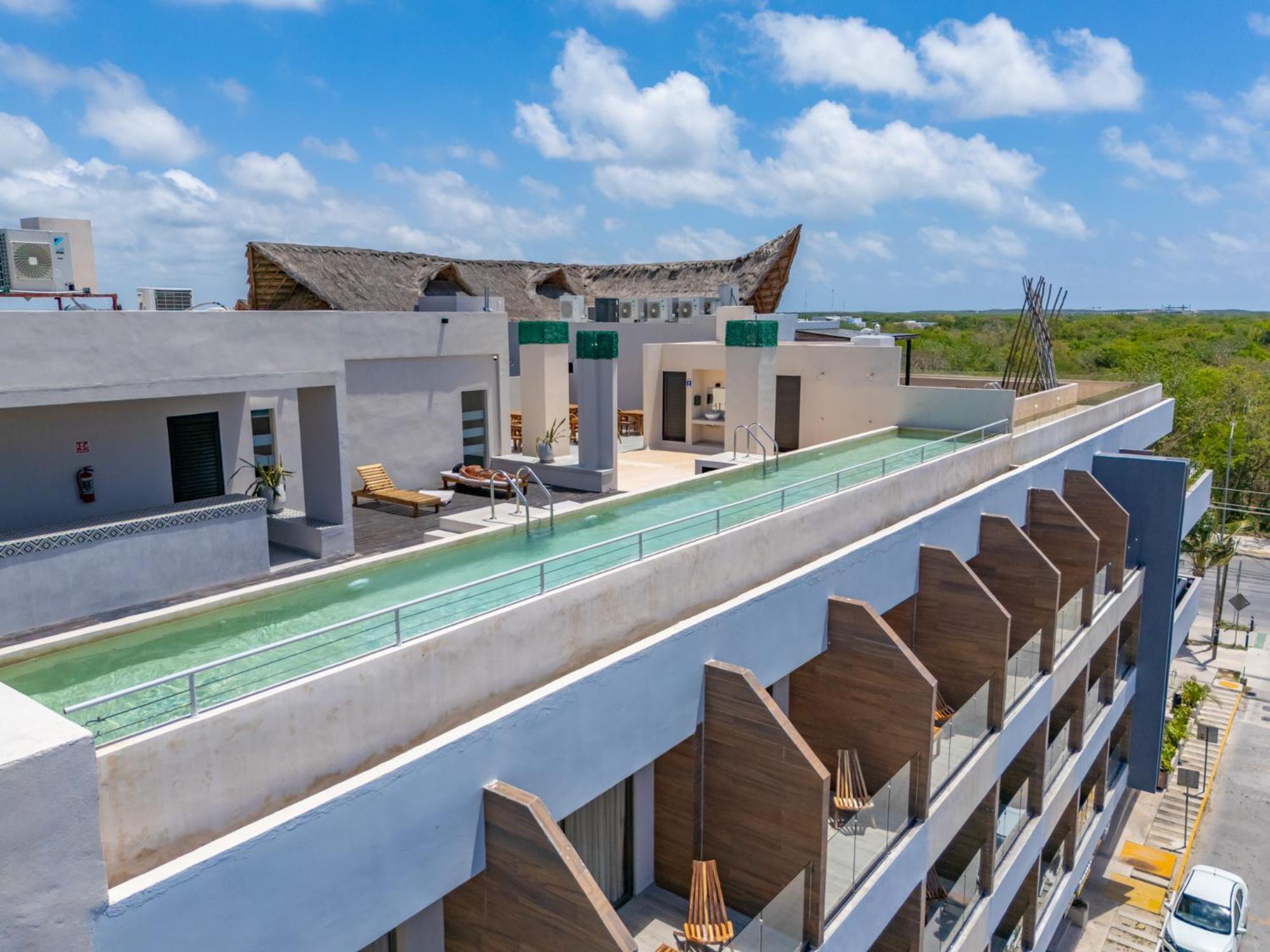 Dive into relaxation at our inviting outdoor swimming pool, perfect for soaking up the sun and unwinding after a day of exploring the nearby Tulum Archeological Site.