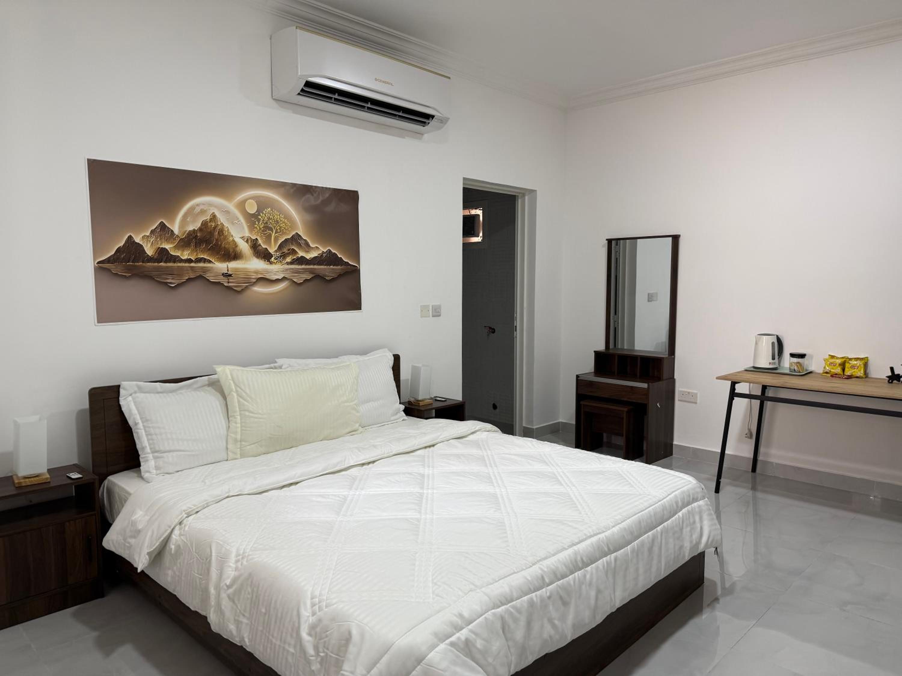 Discover a serene escape in our Master Bedroom Room, nestled conveniently in Abu Dhabi, just a short drive from thrilling attractions.