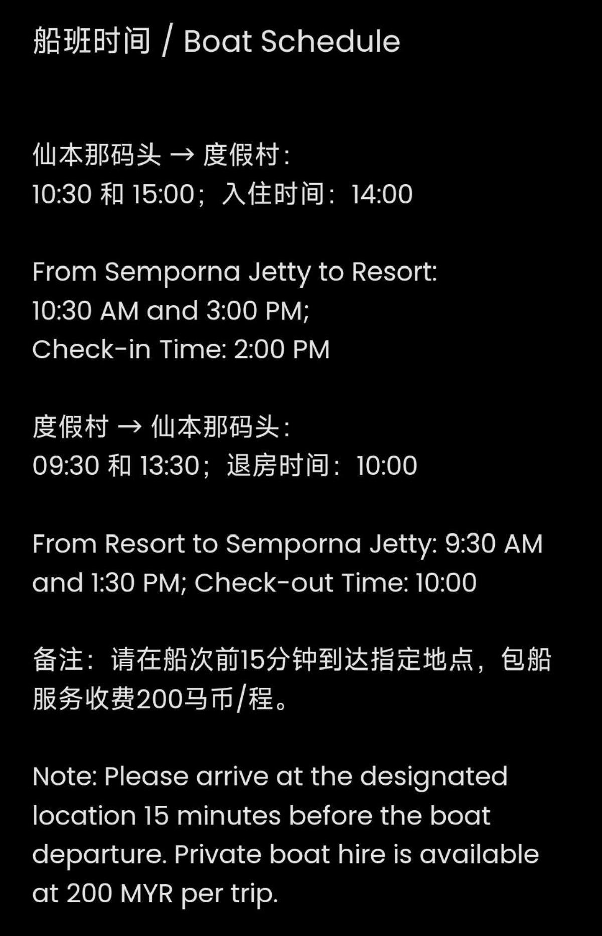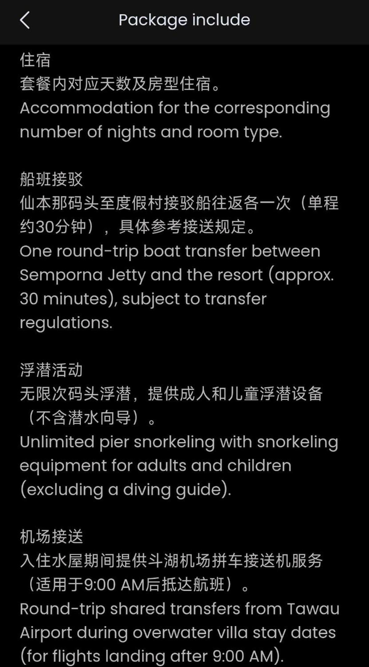It's a unique experience staying at this beautiful resort which is basically a platform with 8 water villas in the middle of the sea, surrounded by crystal clear water, star fish, turtles and other marine life. The staff is super hospitable. There will be Bajau people selling fresh seafood by boat. Andy, the manager was very helpful in bargaining and checking on the items for us and the kitchen is available to cook these fresh seafood free of charge.