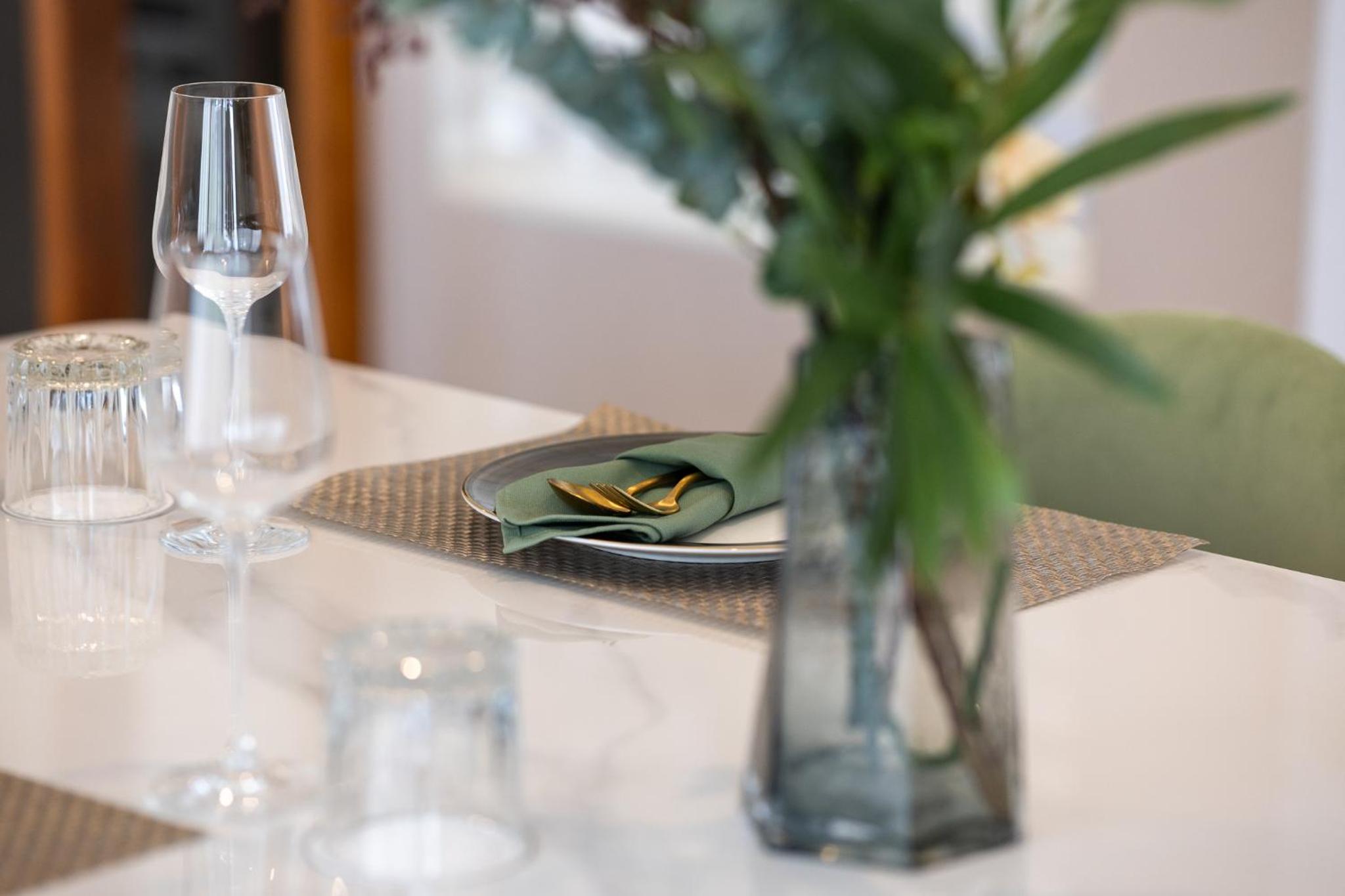 Our elegantly designed rooms offer a serene sanctuary, complete with a balcony overlooking lush gardens. Enjoy amenities such as air conditioning, flat-screen TVs, and fully equipped kitchens, ensuring a comfortable stay.