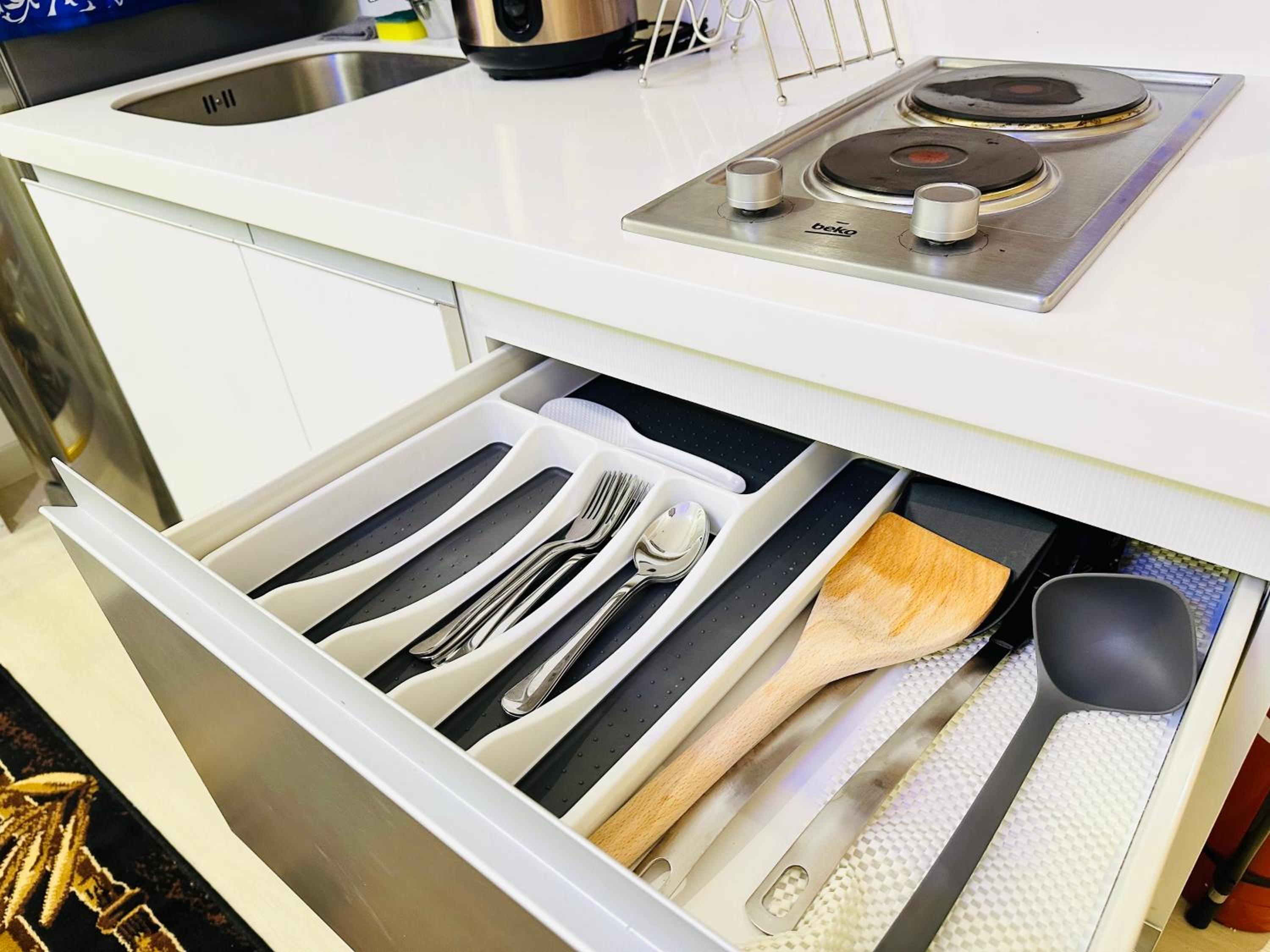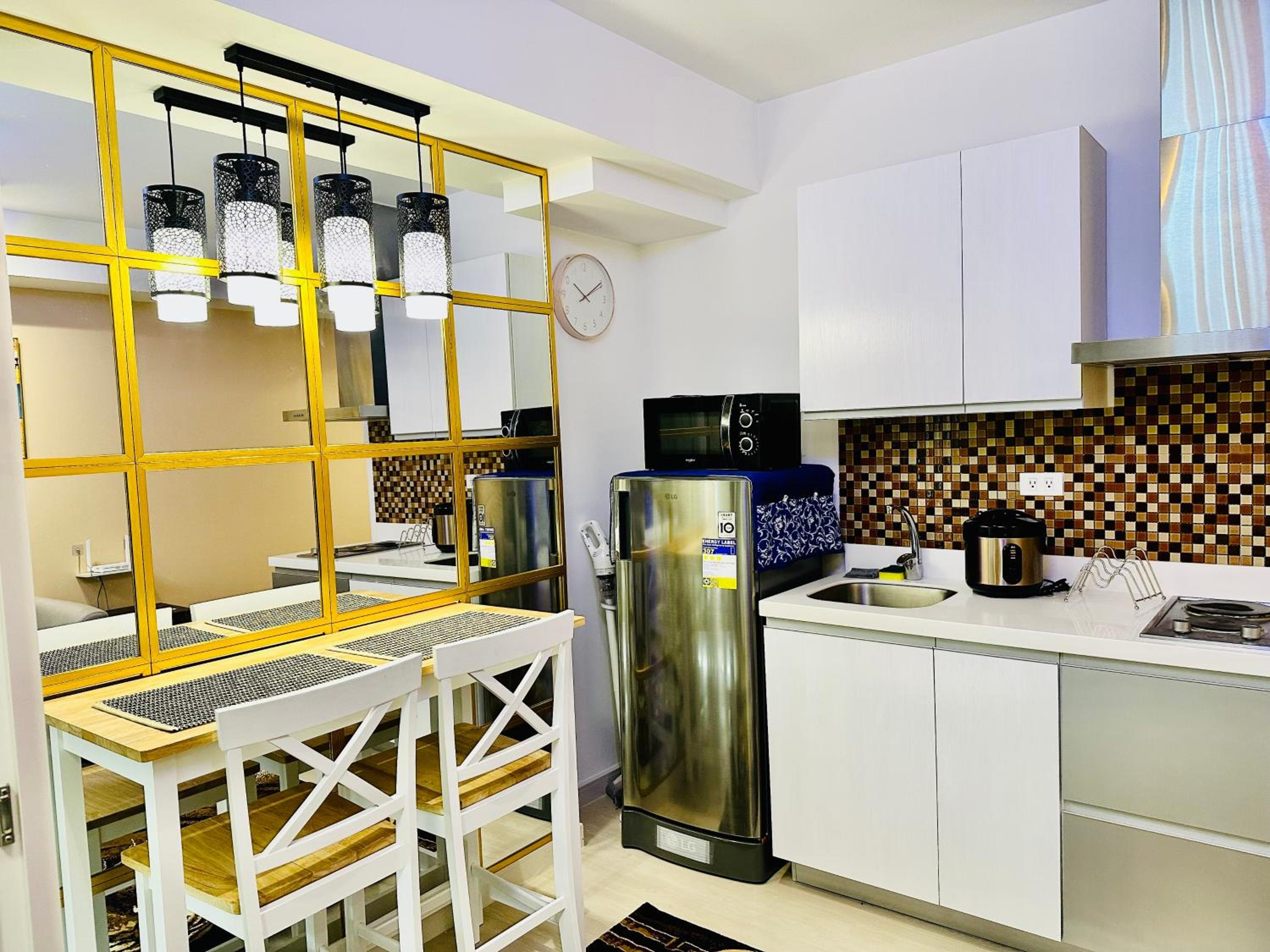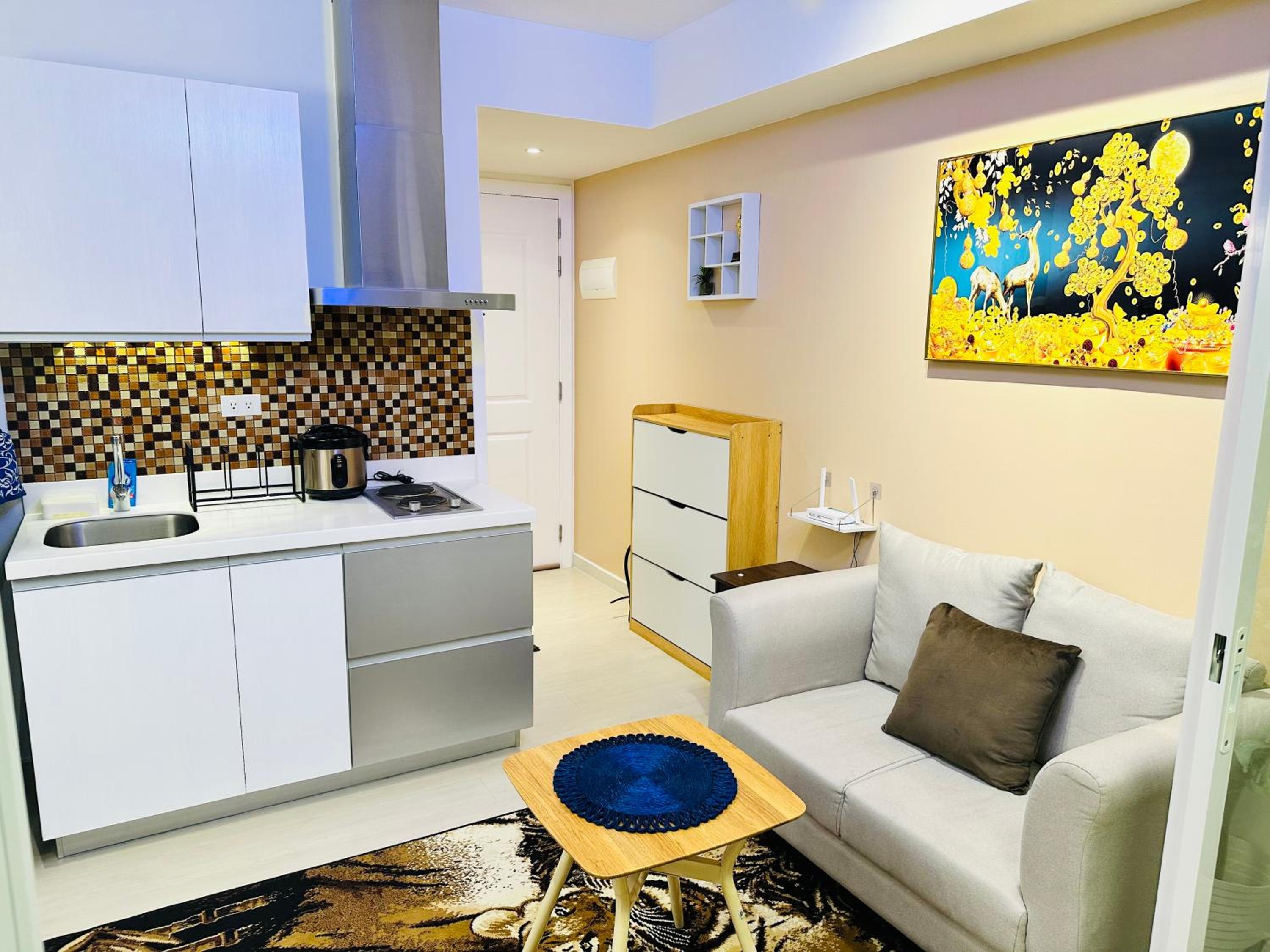 Each air-conditioned condo hotel features a stylish 1-bedroom layout, complete with a living room, a fully equipped kitchen, and modern amenities, ensuring a home-like experience with hotel luxury.