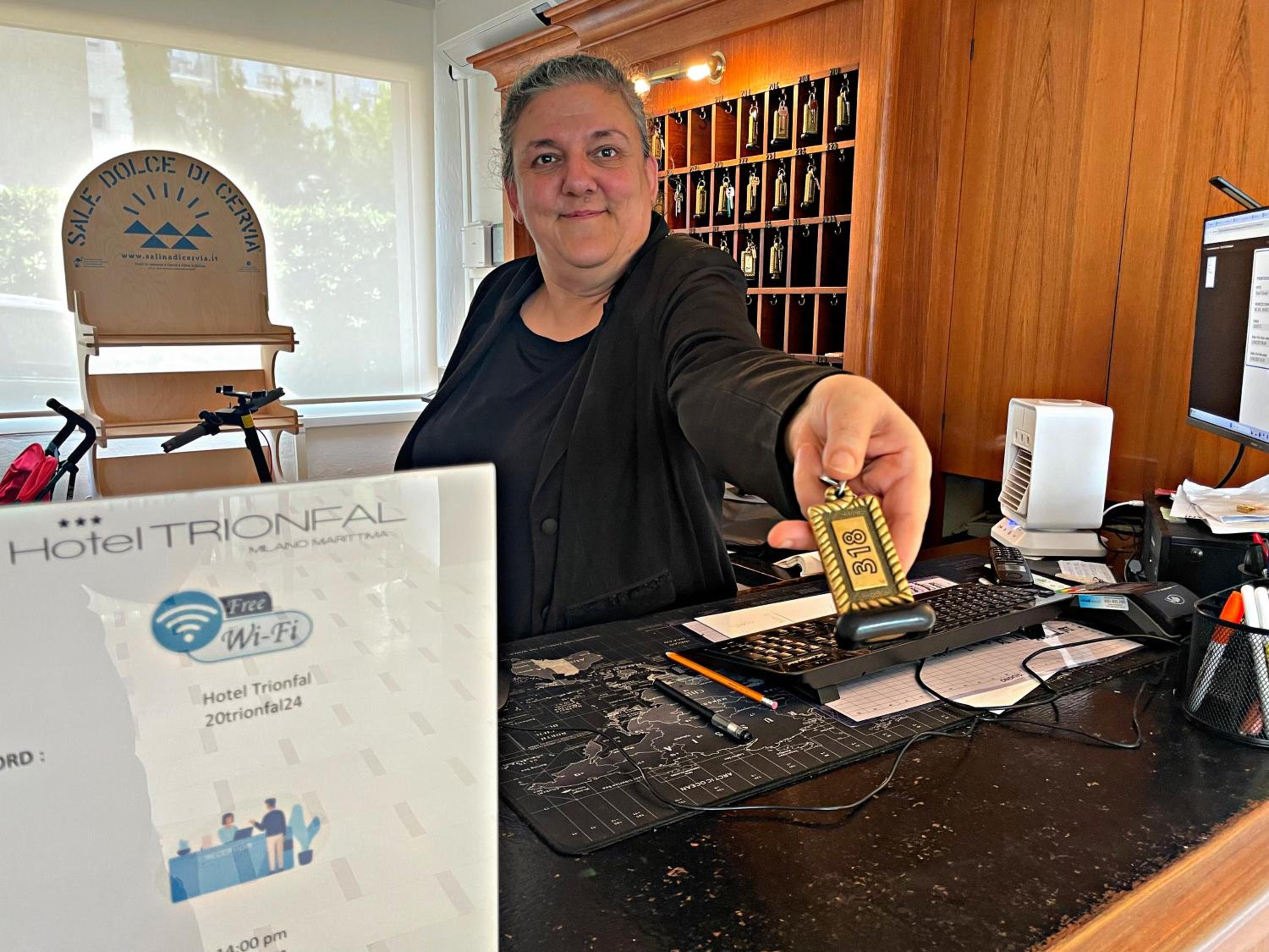 il giorno dell'arrivo mi sono presentato dando le mie generalità, la sig.ra mi ha risposto, " un attimo che finisco" era col suo telefonino che cazzeggiava, ho preso in consegna la camera ma non era quella che avevo prenotato mi sono lamentato , mi hanno usato come portiere per cercarmi la camera e riportargli le chiavi in ricevimento, la prima notte da dimenticare il letto che cigolava, pendeva tutto su un latto ed era come una tavola la mattina ho guardato sotto il materasso avevano messo una grossa tavola per tappare tutte le traverse che mancavano nella rete , al mio lamento in ricevimento la sig.ra solitamente sempre stufata mi ha detto che era impossibile ,comunque io gli ho riferito di cambiarmi il letto che avevano tutto il giorno per farlo, al mio rientro la sera ho chiesto se avevano provveduto e mia ha risposto che tra dieci minuti arriva il manutentore " e arrivato dopo un ora perchè a lui non avevano comunicato niente( e non era neanche il manutentore era un cameriere di riposo)" alla fine ho dovuto dargli una mano io a togliere il letto perche loro non sapevano come fare. per chiudere l'ultima sera rientro con mia moglie e nessuno al ricevimento per la chiave aspetto, chiamo, provo a telefonare dopo tanti squilli mi risponde una ragazza di un altro hotel e mi a detto che non sapeva niente e comunque chiamara la signora , dopo mezzora che aspettavamo e arrivata ,, ci siamo lamentati che aspettavamo da mezzora e ci a risposto " non e vero ero appena uscita a prendermi la cena" comunque io dico ma se uno non a v oglia ,ma se non sono capaci a gestire perche continuano a tenere strutture per fare un brutto nome a MILANO MARITTIMA che e cosi bella .