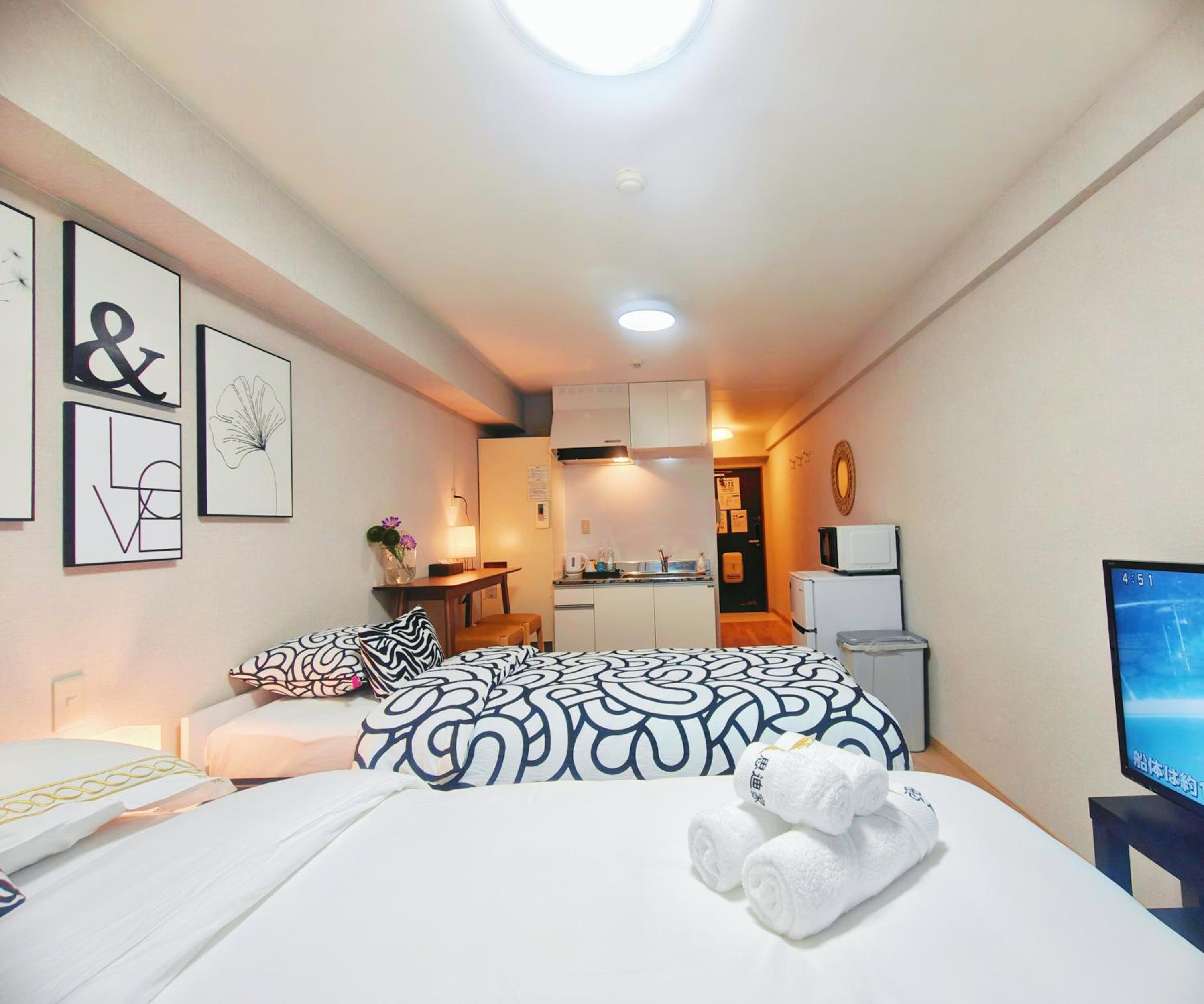 오사카 숙박시설 평균보다 넓어요. 난바역에서 2정거장, 공항 기차는 바로 탈 수 있는 지역입니다. 숙소에서 5분이내 기차역이 있어요. 관광객이 많지 않아 한산한 동네입니다. 근처에 슈퍼마켓이 3개나 있어요.(할인 시간대에 회, 초밥 등 저렴히 구매 가능합니다.) 숙박하는 기간동안 생수를 무료로 제공해 줍니다. 바닥을 제외하고 대부분 청결했고 침구가 푹신해서 좋았습니다. 화장실과 욕실이 분리되어 있어서 편해요. 인덕션을 사전에 요청해서 라면 끓여 먹었습니다. 리클라이너 쇼파가 있어요.