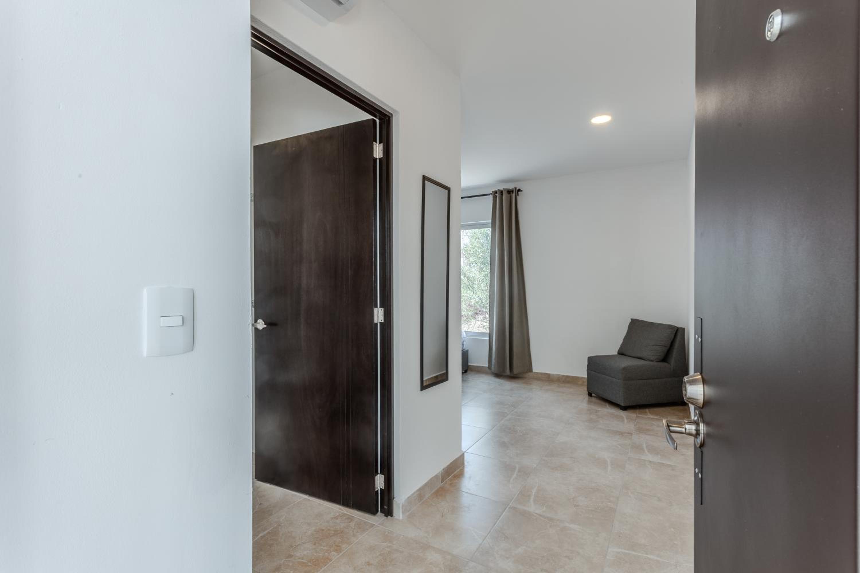 Sin acceso cercano al estacionamiento, tienes que cargar maletas, ya que el estacionamiento está en terracería. Y no se muestra el acceso. Realicé llamada para solicitar información de dónde se encuentra la recepción, no hay anuncios.