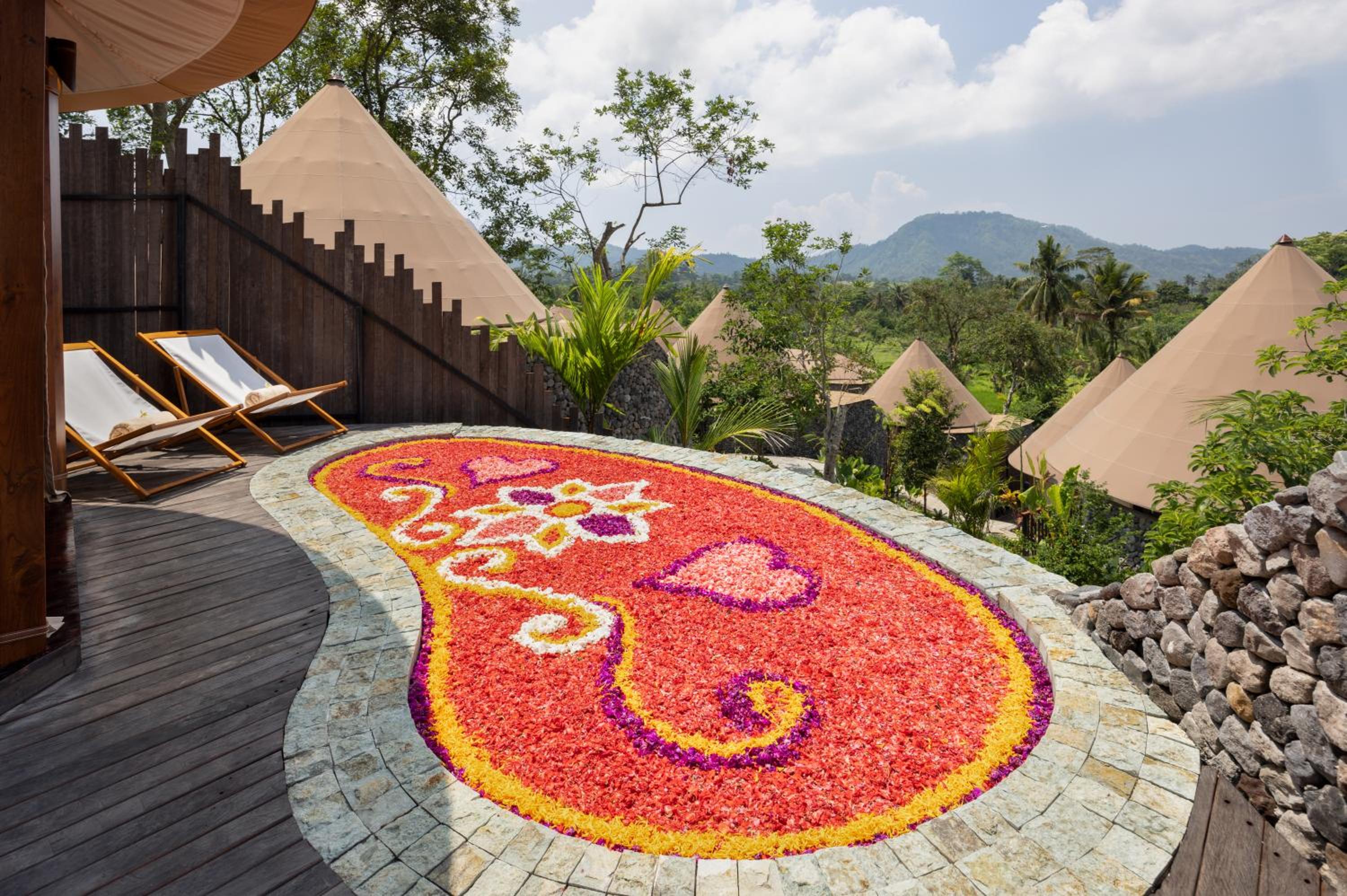 Lux tente décevante fermée et petite ( comparée aux autres chambres 5 étoiles de bali ) . Pas de place pour les valises , sombre . Nous avons eut même des insectes grand qui nous ont pas permis de rentrer dans le toilettes . Pendant la nuit à cause des pesticides dans la chambre des petits insectes ne cessaient pas de tomber sur la couverture . La qualité du restaurant n est pas à la hauteur par rapport aux restaurants qui sont autours . La randonnée de une heure offerte le matin n’est qu’une descente sur une rue près des rizières .