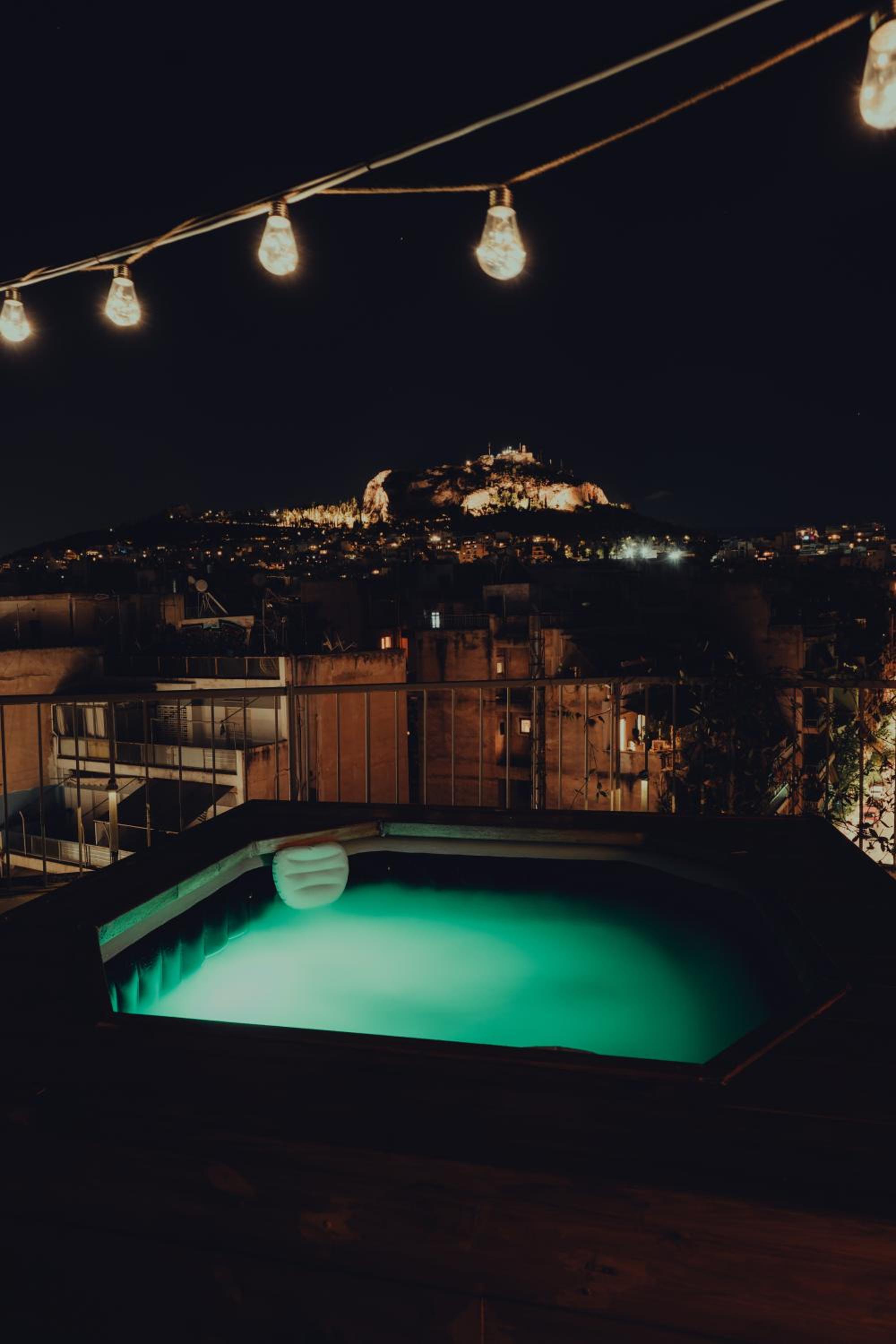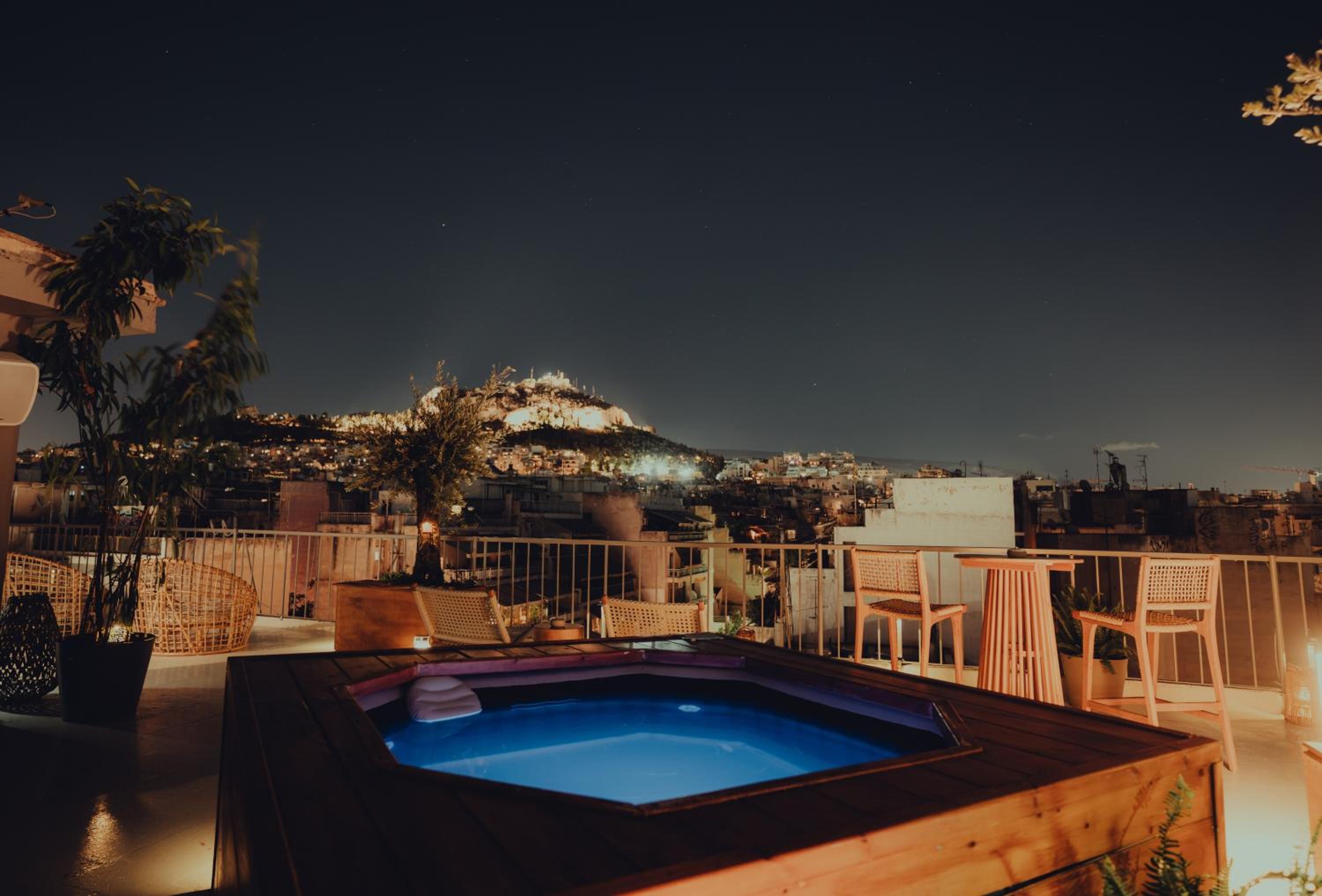 Na dachu taras z jacuzzi (szkoda, że nie było wody) z cudownym widokiem na wzgórze Lycabettus.