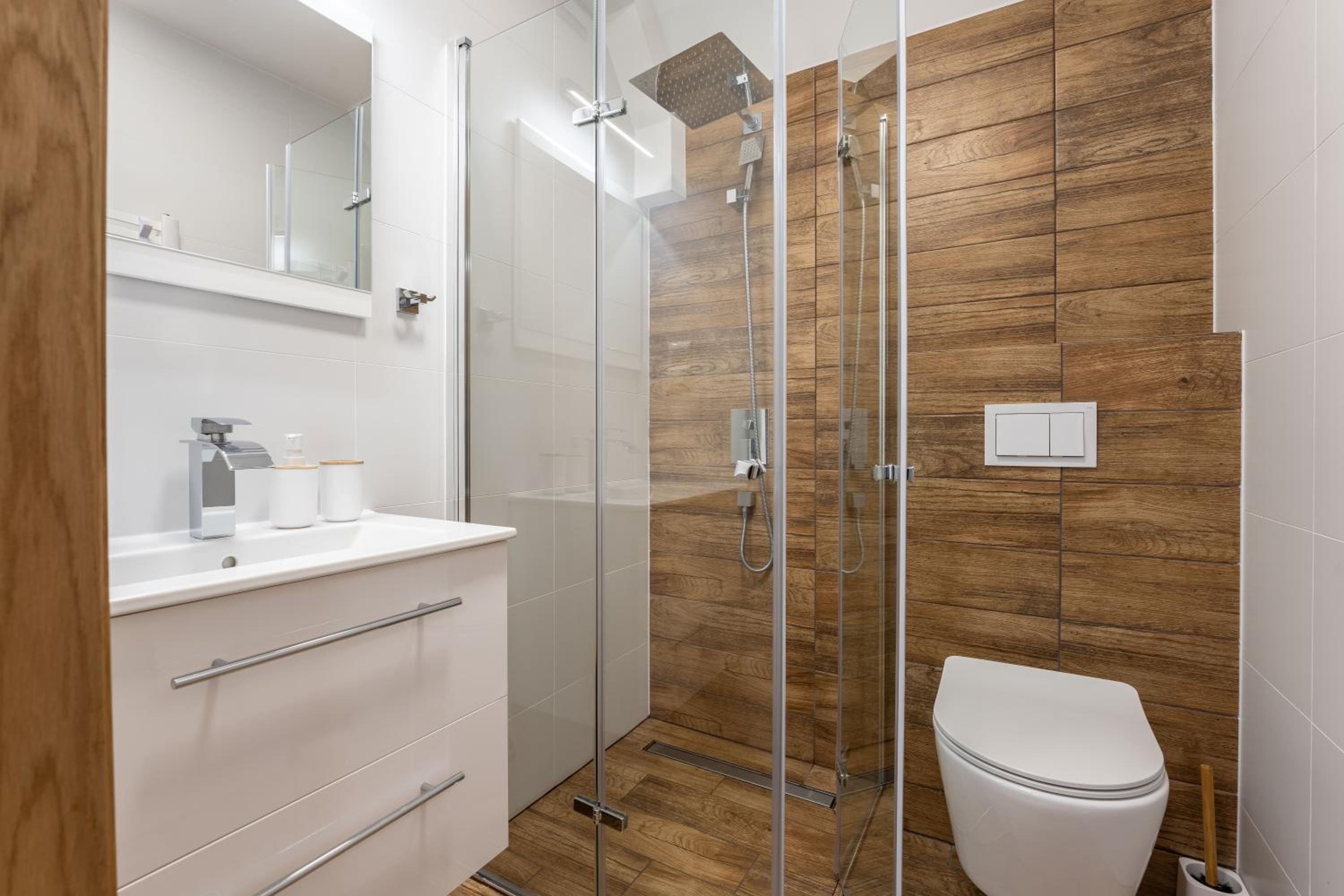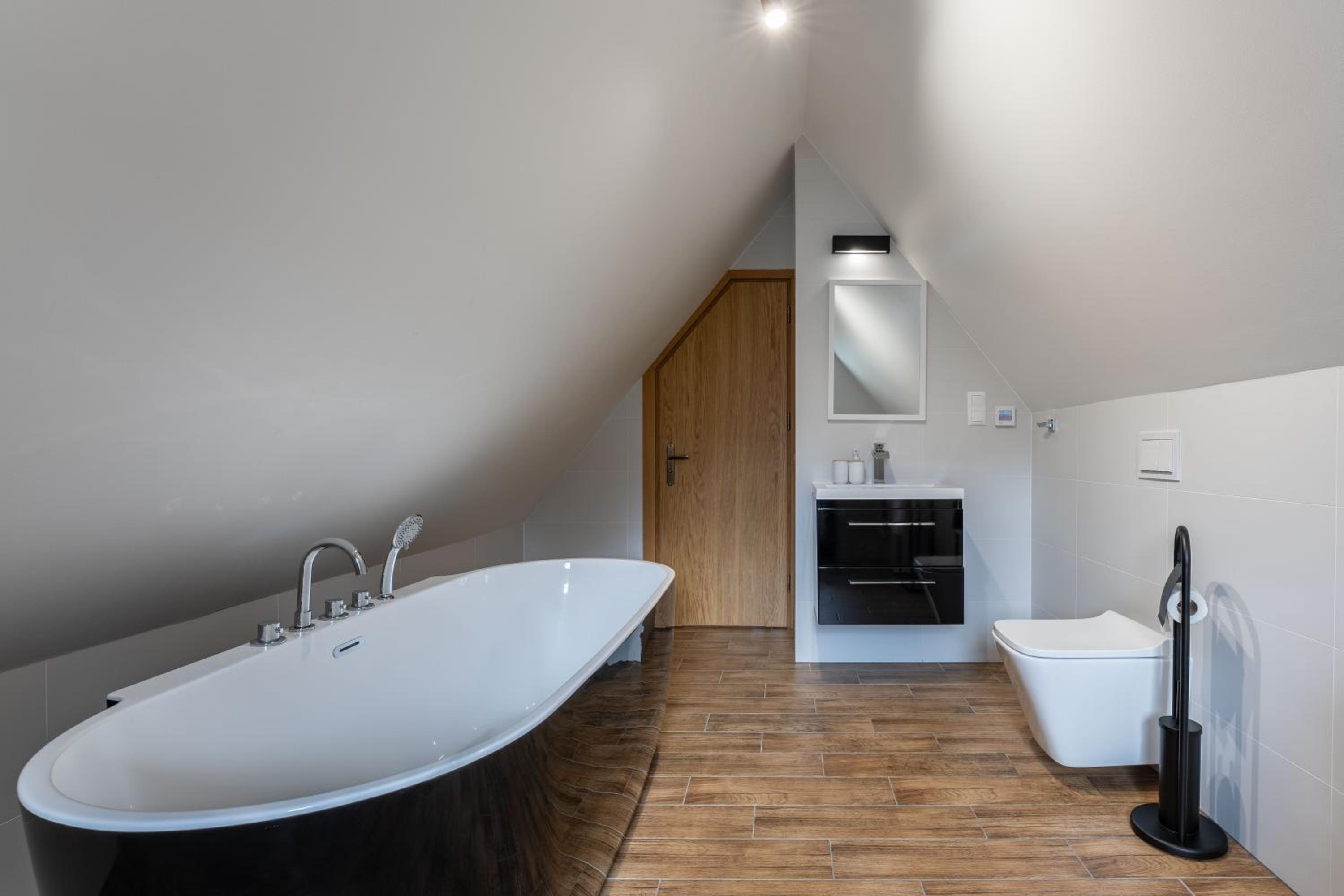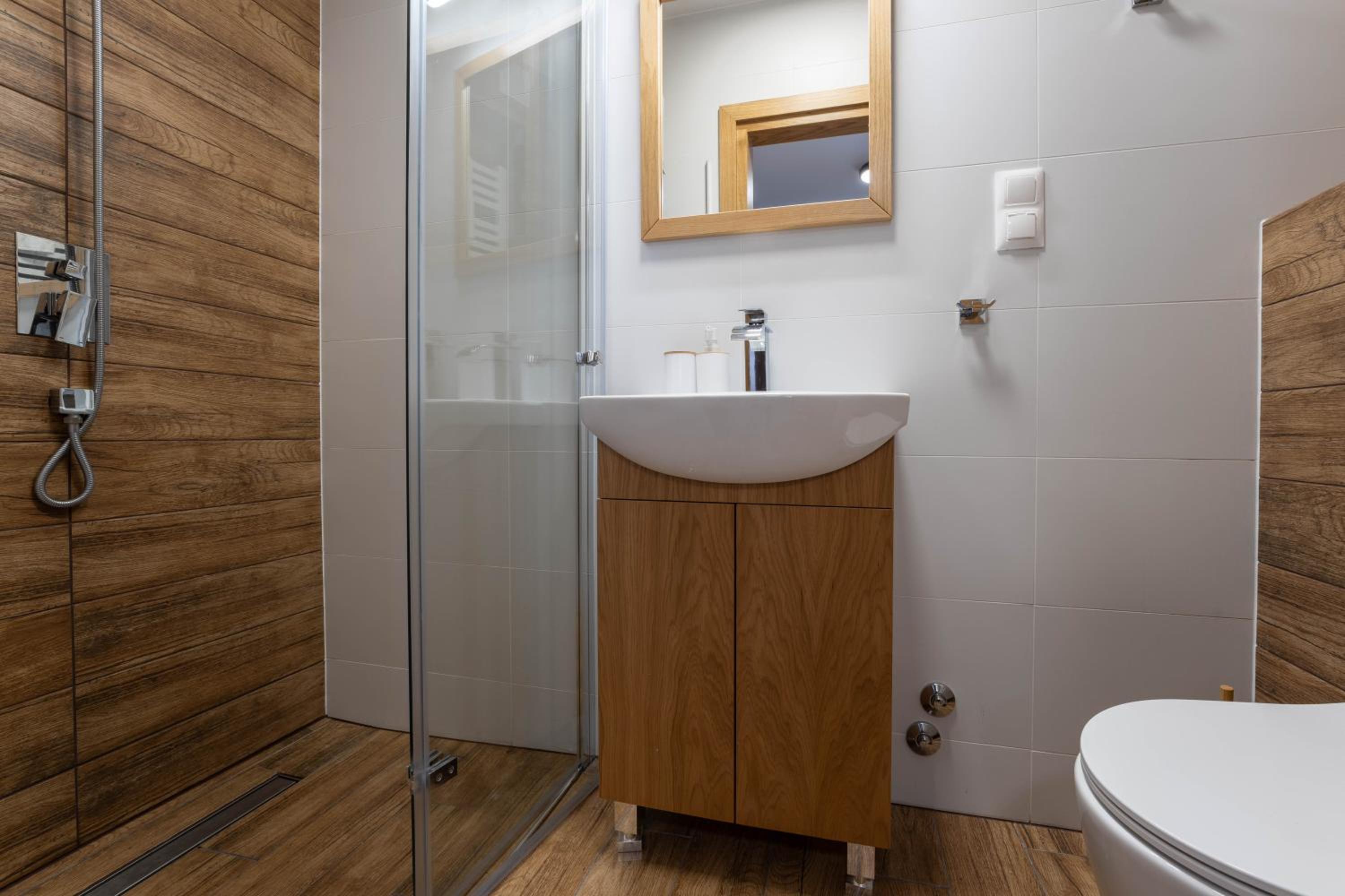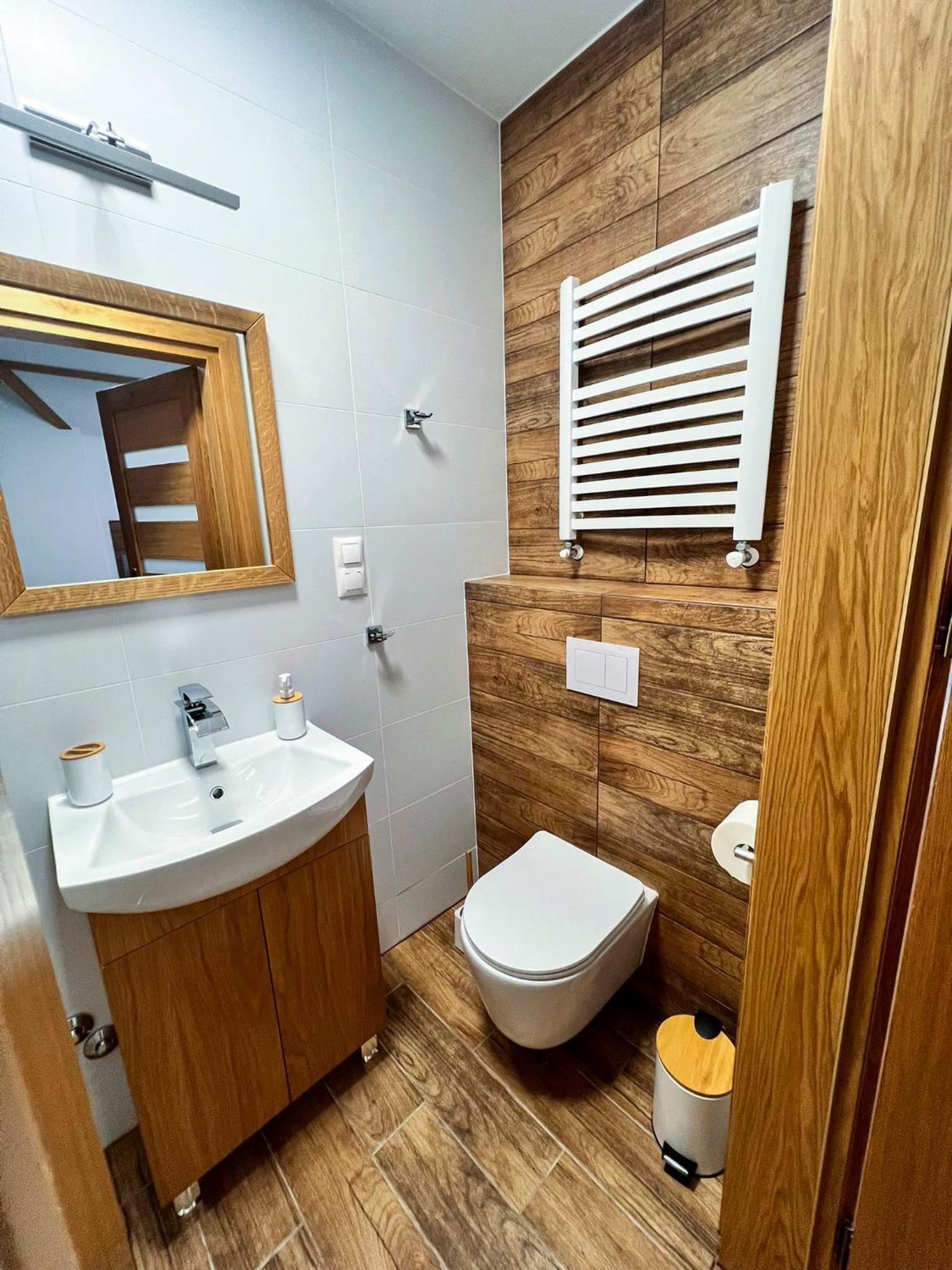 Nowoczesna willa, wysoki standard. Ciepło, czysto, elegancko. Nawet kapcie dla gości.