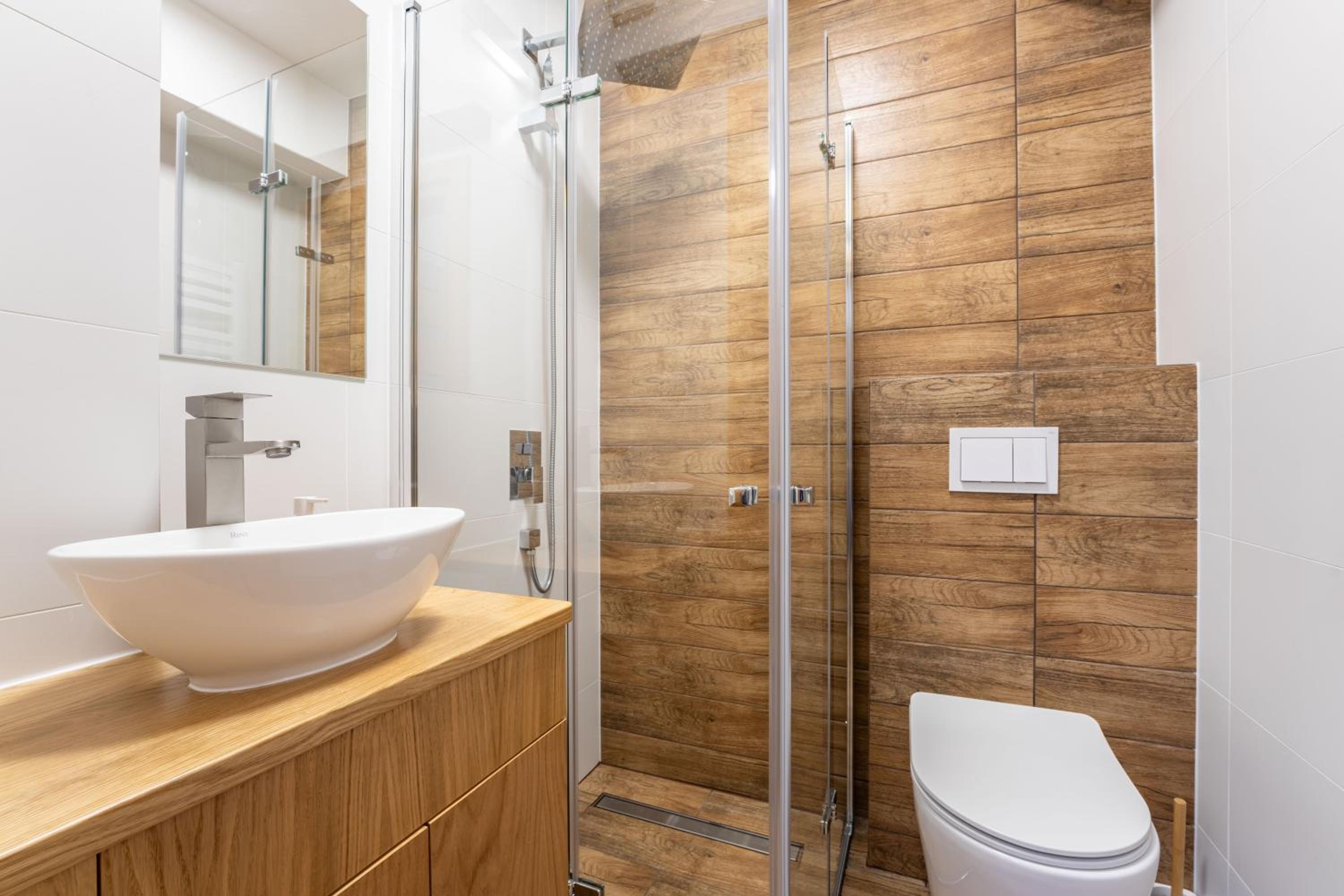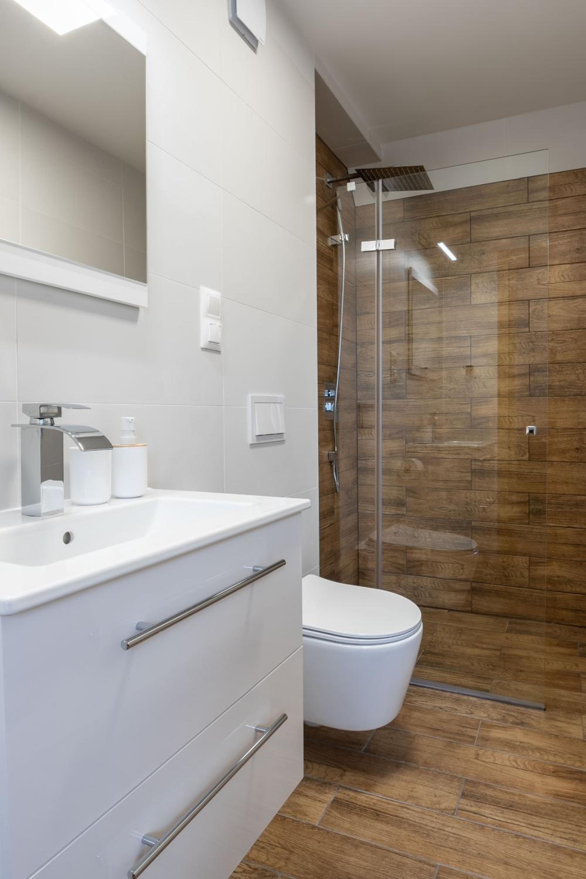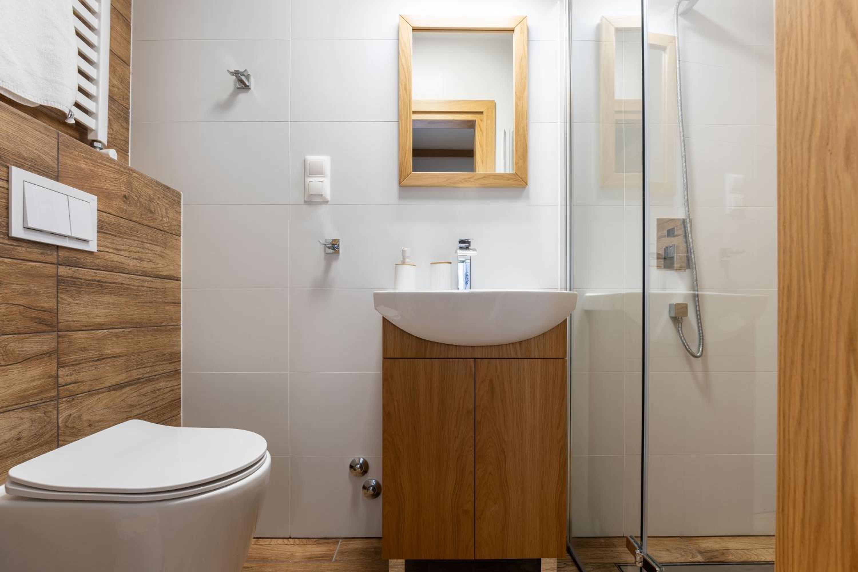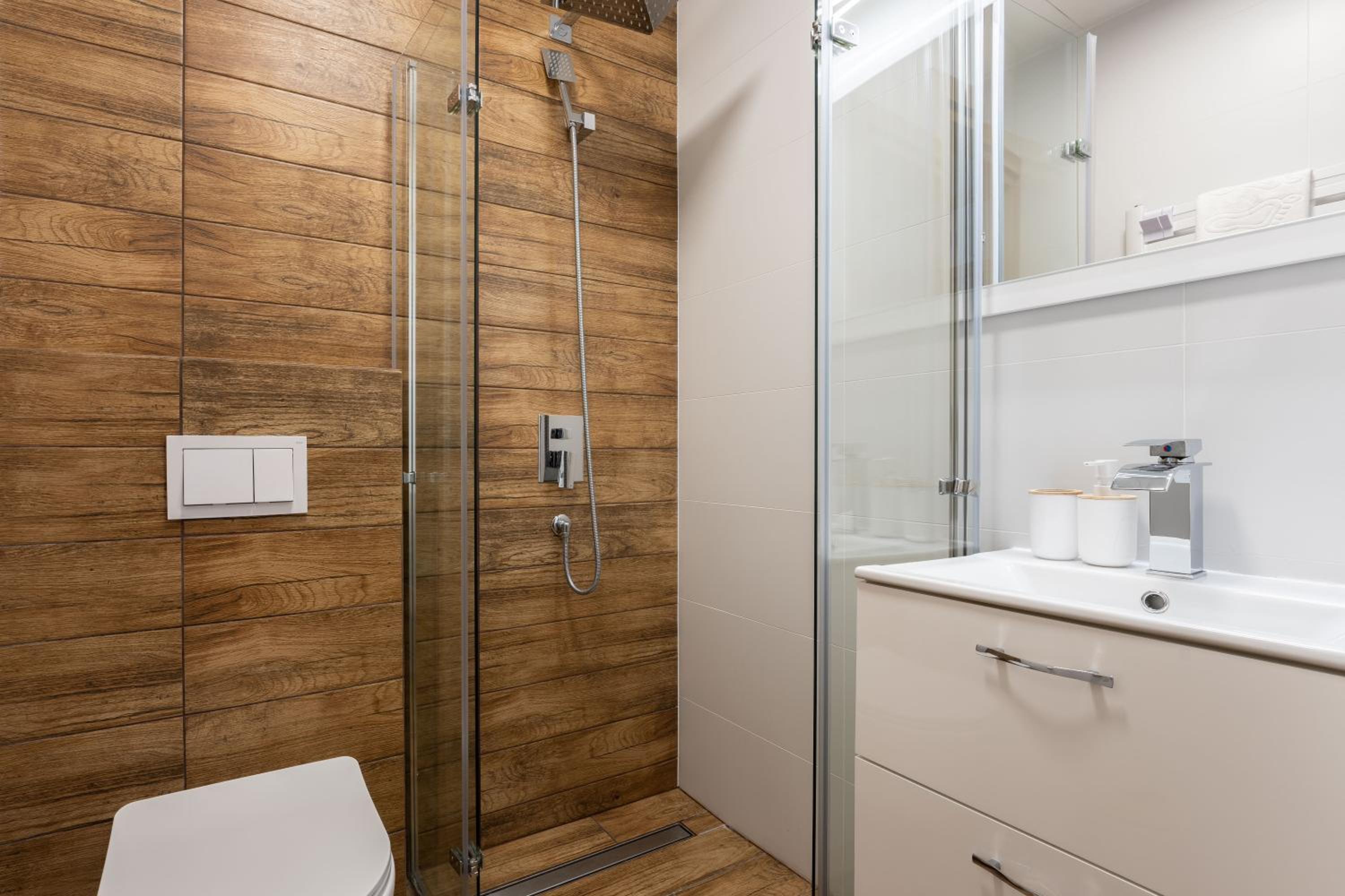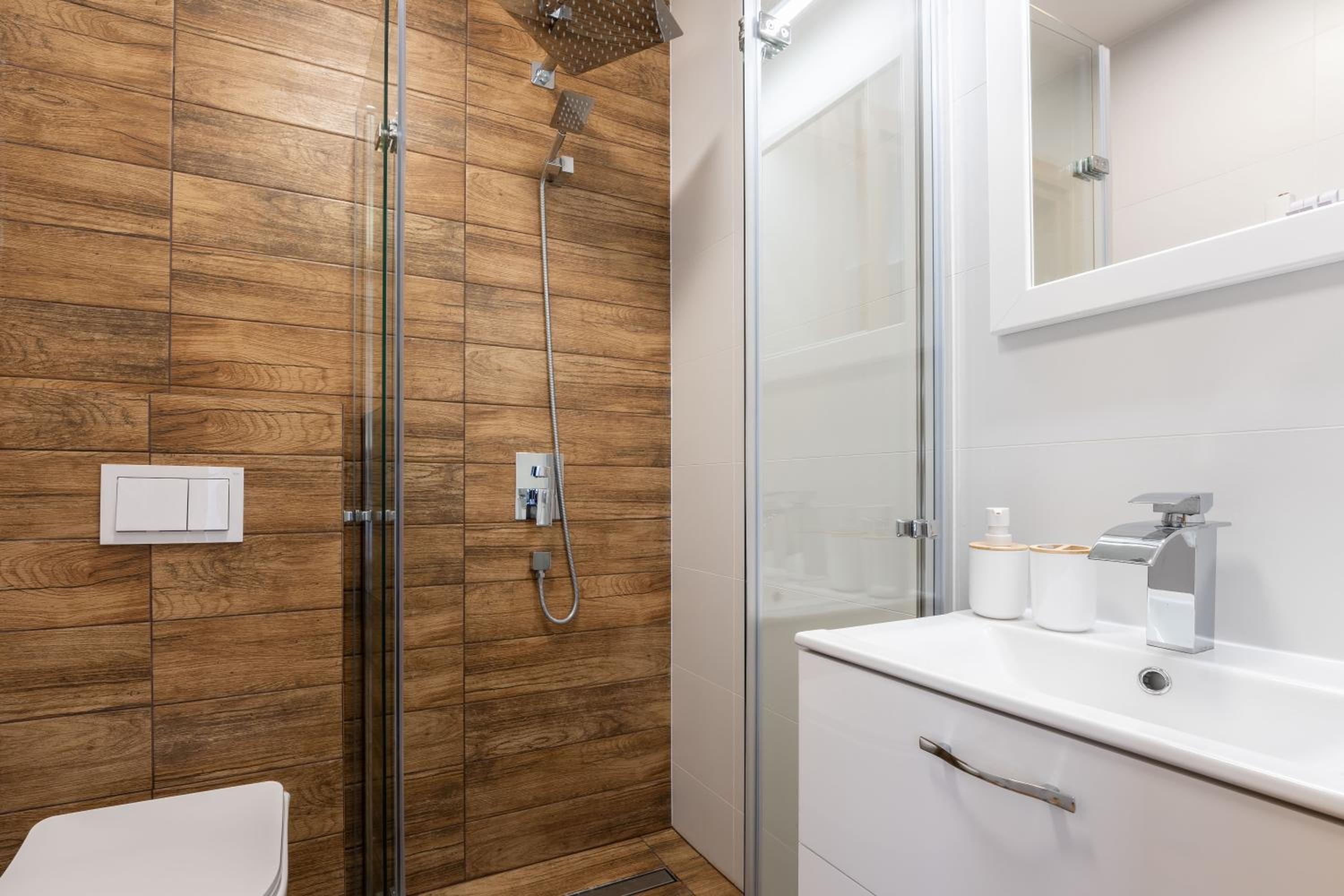 Nowoczesna willa, wysoki standard. Ciepło, czysto, elegancko. Nawet kapcie dla gości.