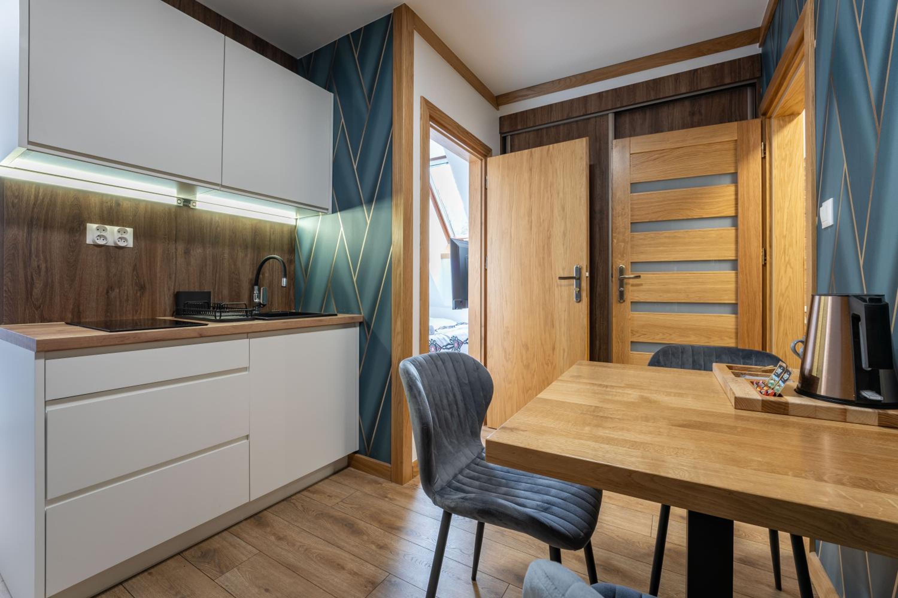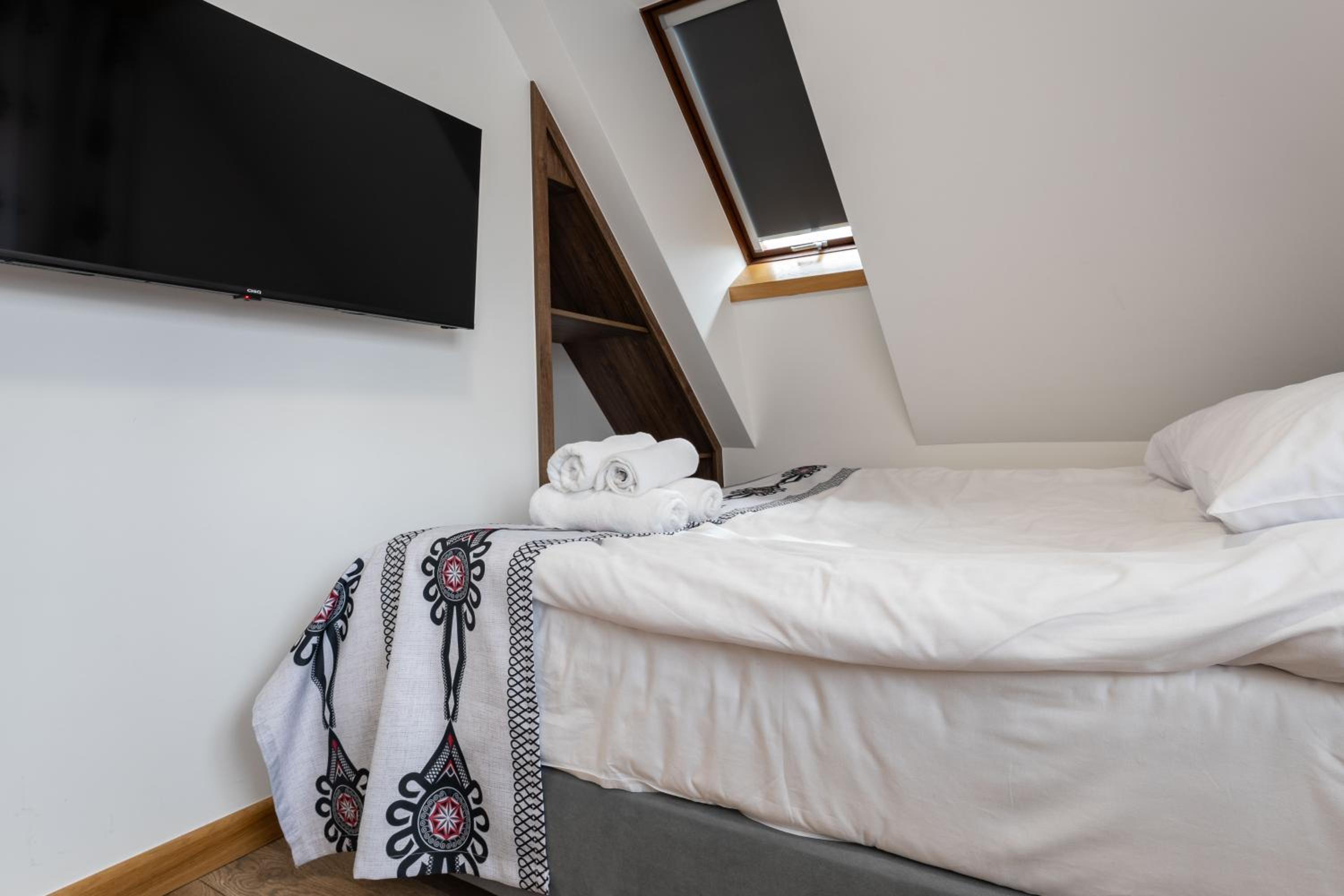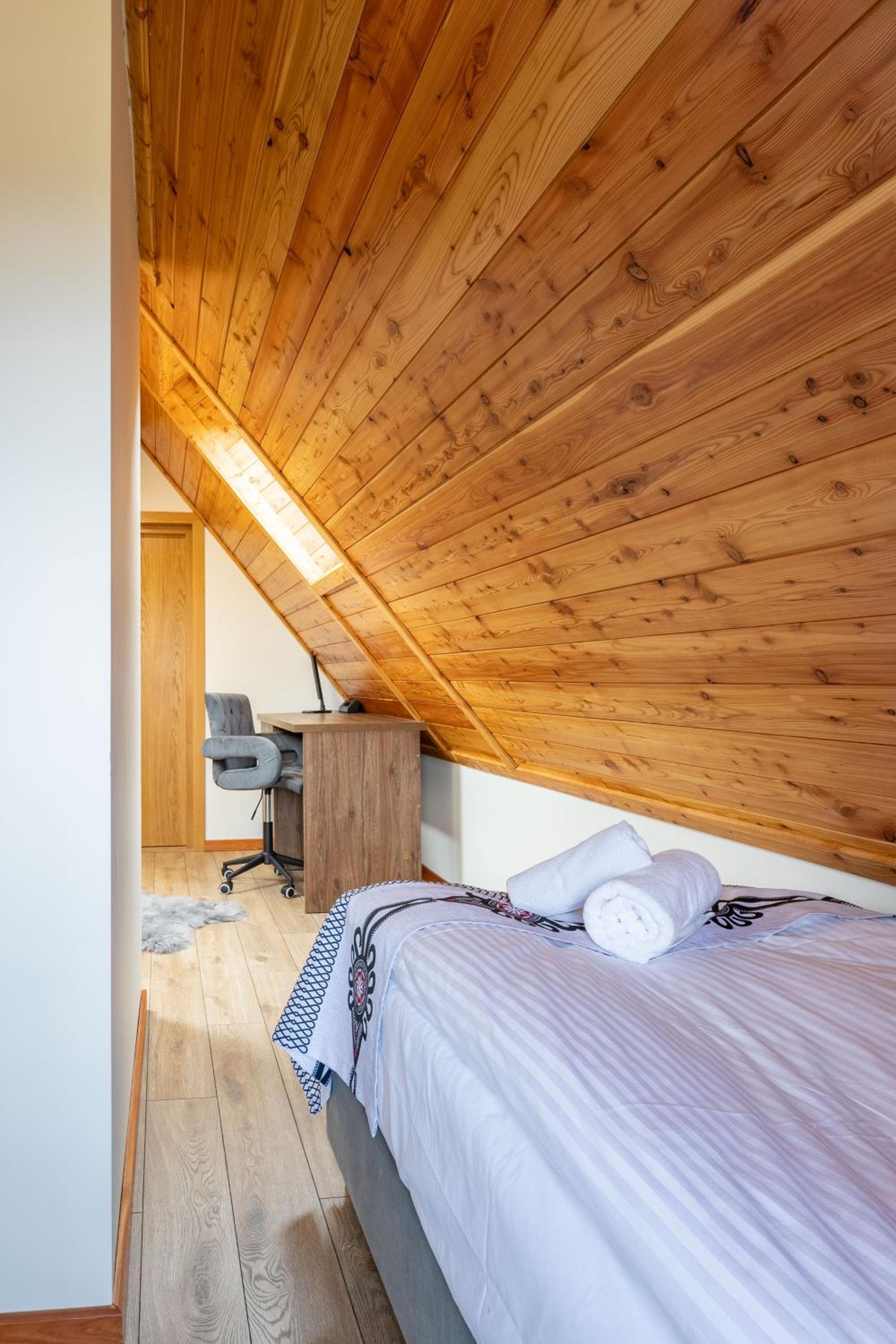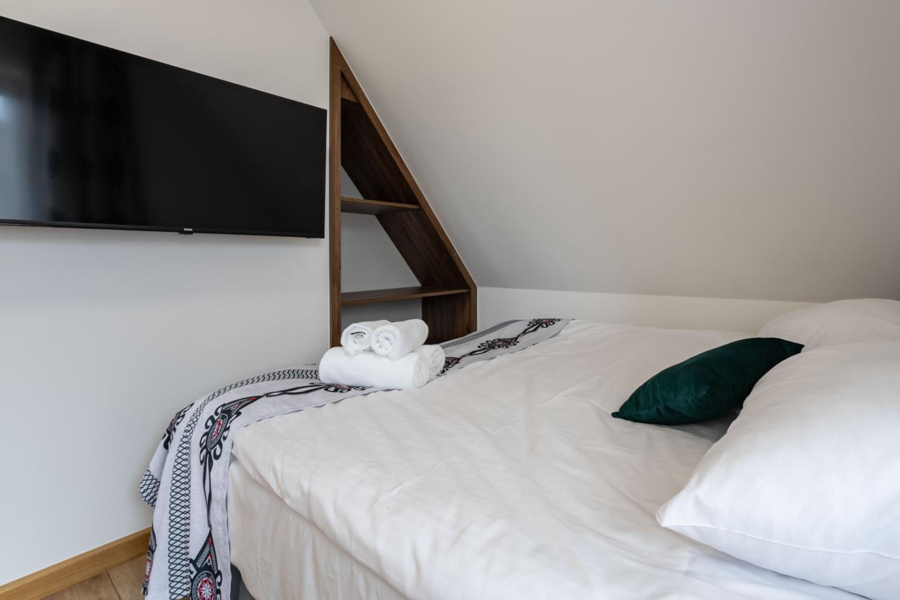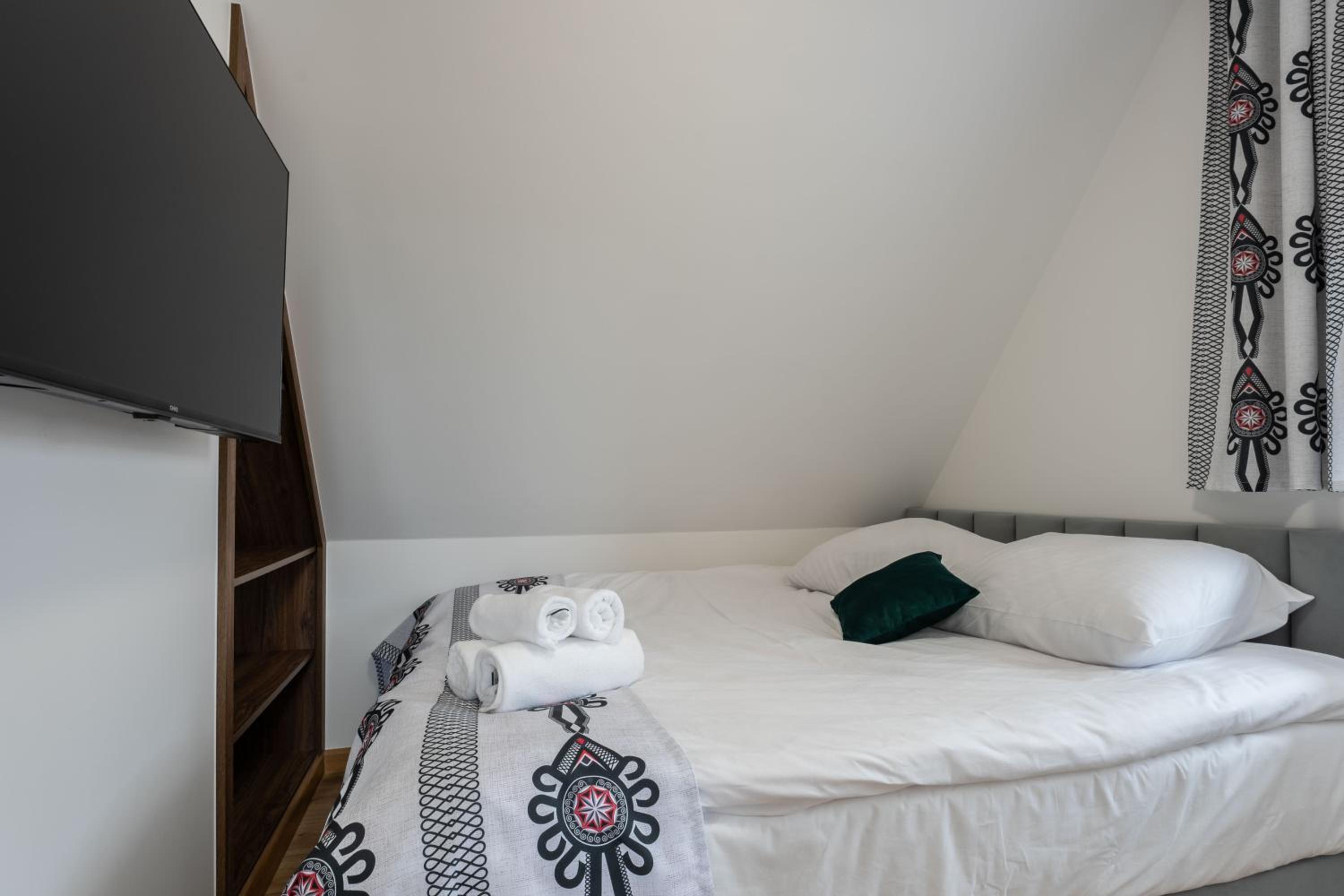 Bardzo przyjemny i czysty pokój w pięknym, zadbanym budynku. Do dyspozycji gości była również wspólna kuchnia, co było dużym udogodnieniem. Wszystko, łącznie z łazienką, było nieskazitelnie czyste i w pełni wyposażone — niczego nam nie brakowało. Lokalizacja znajduje się w dolinie, nieco na uboczu, więc bez samochodu dojazd może być odrobinę trudniejszy, ale dzięki temu panuje tam wyjątkowa cisza, spokój i można naprawdę odpocząć. To idealne miejsce dla osób szukających relaksu z dala od zgiełku. Dodatkowym atutem jest świetny stosunek jakości do ceny. Zdecydowanie bardzo polecamy pobyt w tym miejscu.