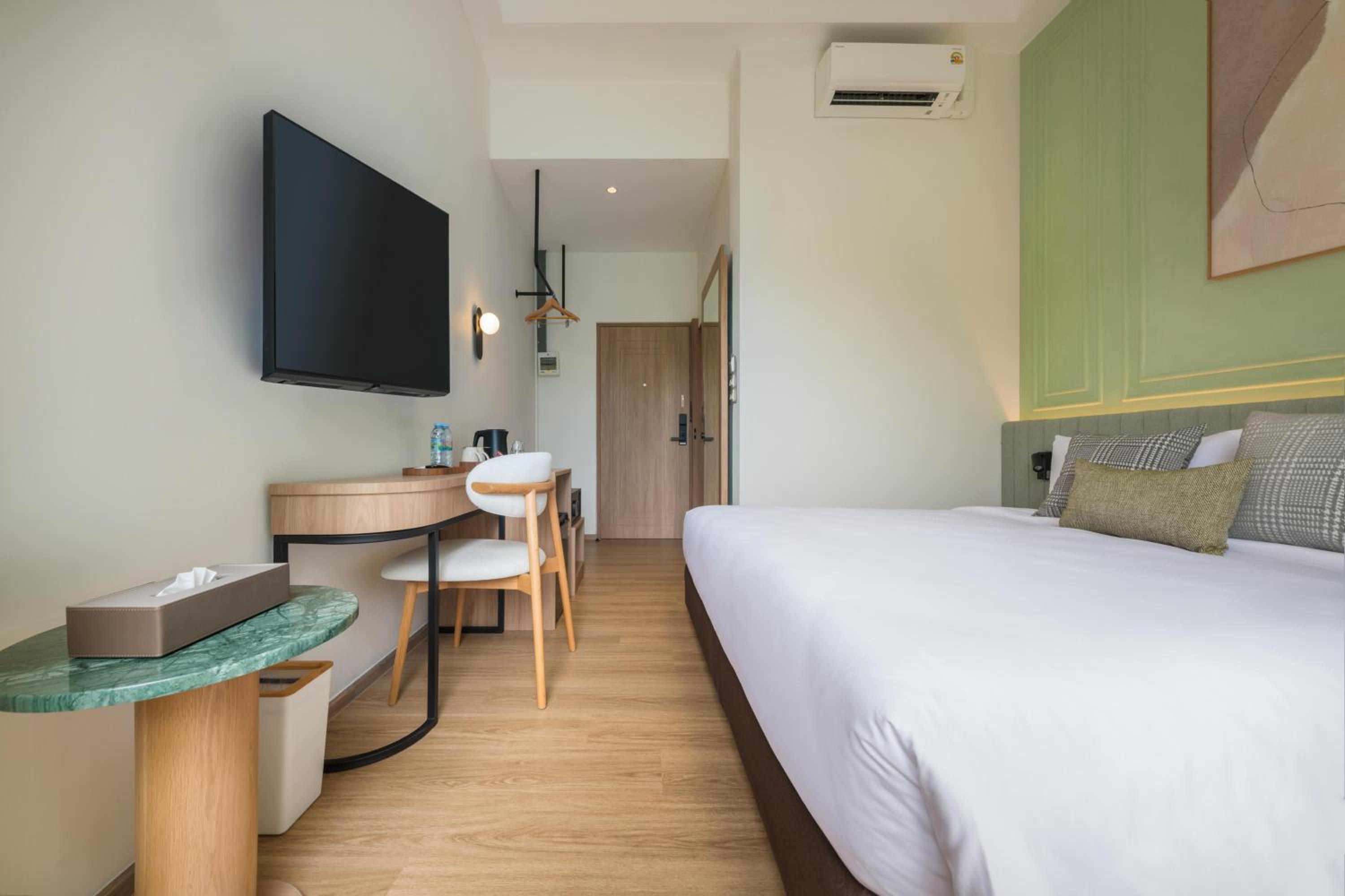Die Zimmer sind sehr modern eingerichtet. Die Lage ist perfekt, um Bangkok zu erkunden, aber trotzdem ist es nachts nicht zu laut, wobei wir auch Glück hatten, dass unser Zimmer nicht zur Straße raus ging. Bett war ebenso top (nicht zu hart, wie sonst oft in Thailand). WLAN & AC funktionierten auch sehr gutFrühstücken kann man sehr gut im dazugehörigen Restaurant. Wir waren sehr zufrieden und können die Unterkunft definitiv weiterempfehlen!