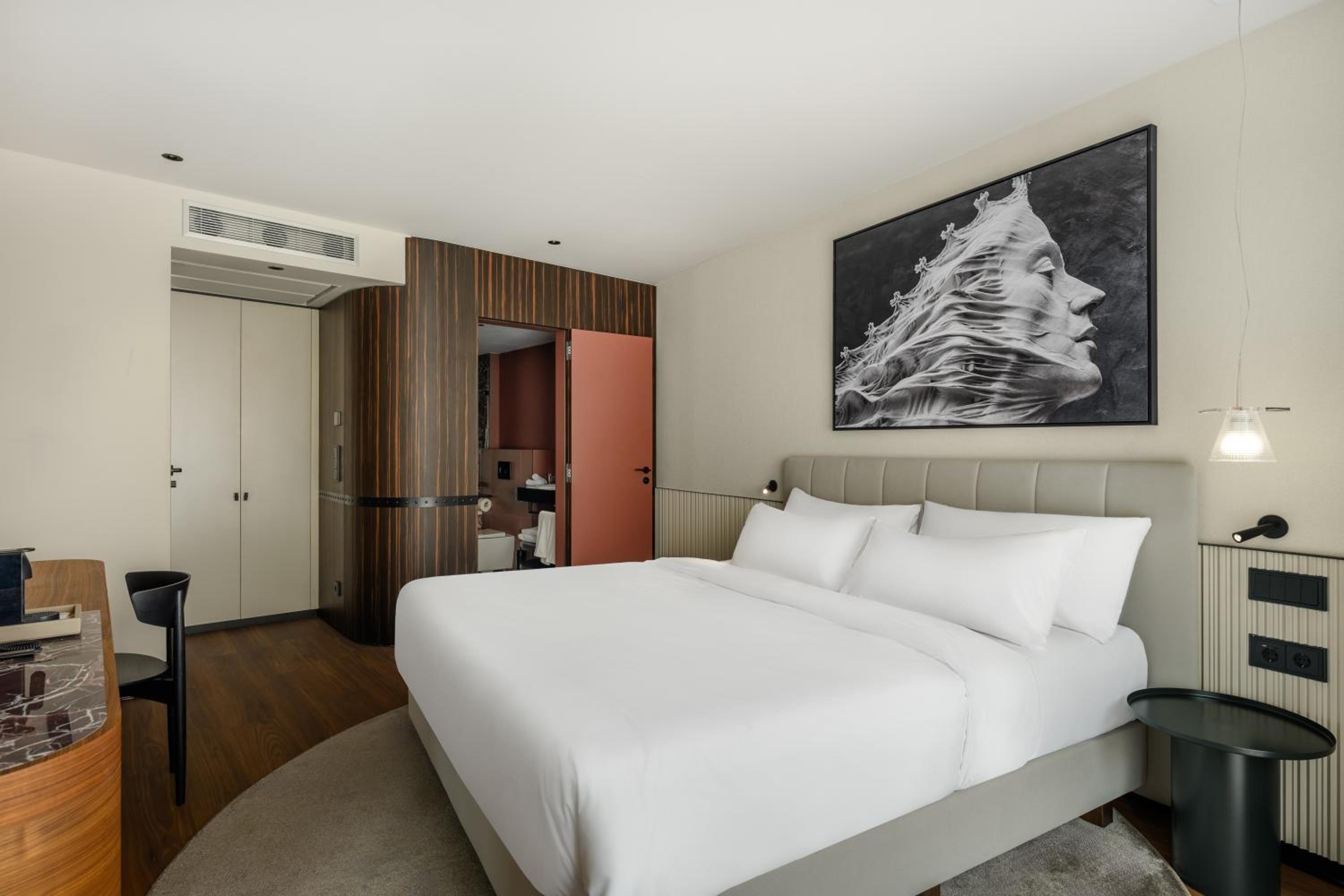 Delight in elegantly designed guest rooms featuring air conditioning, flat-screen TVs, and modern amenities. Some rooms boast private balconies with stunning city views, ensuring a tranquil retreat after a day of exploration.