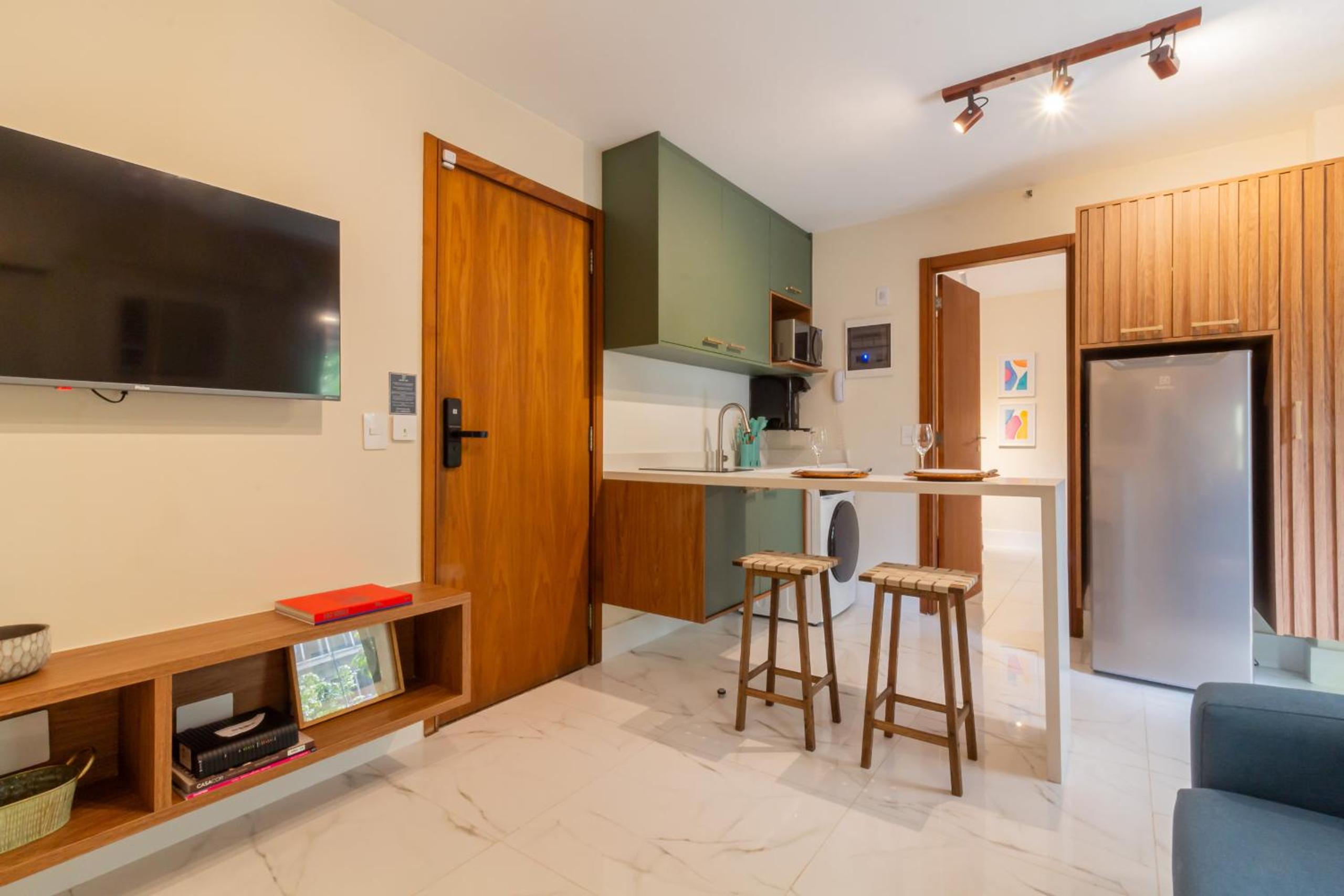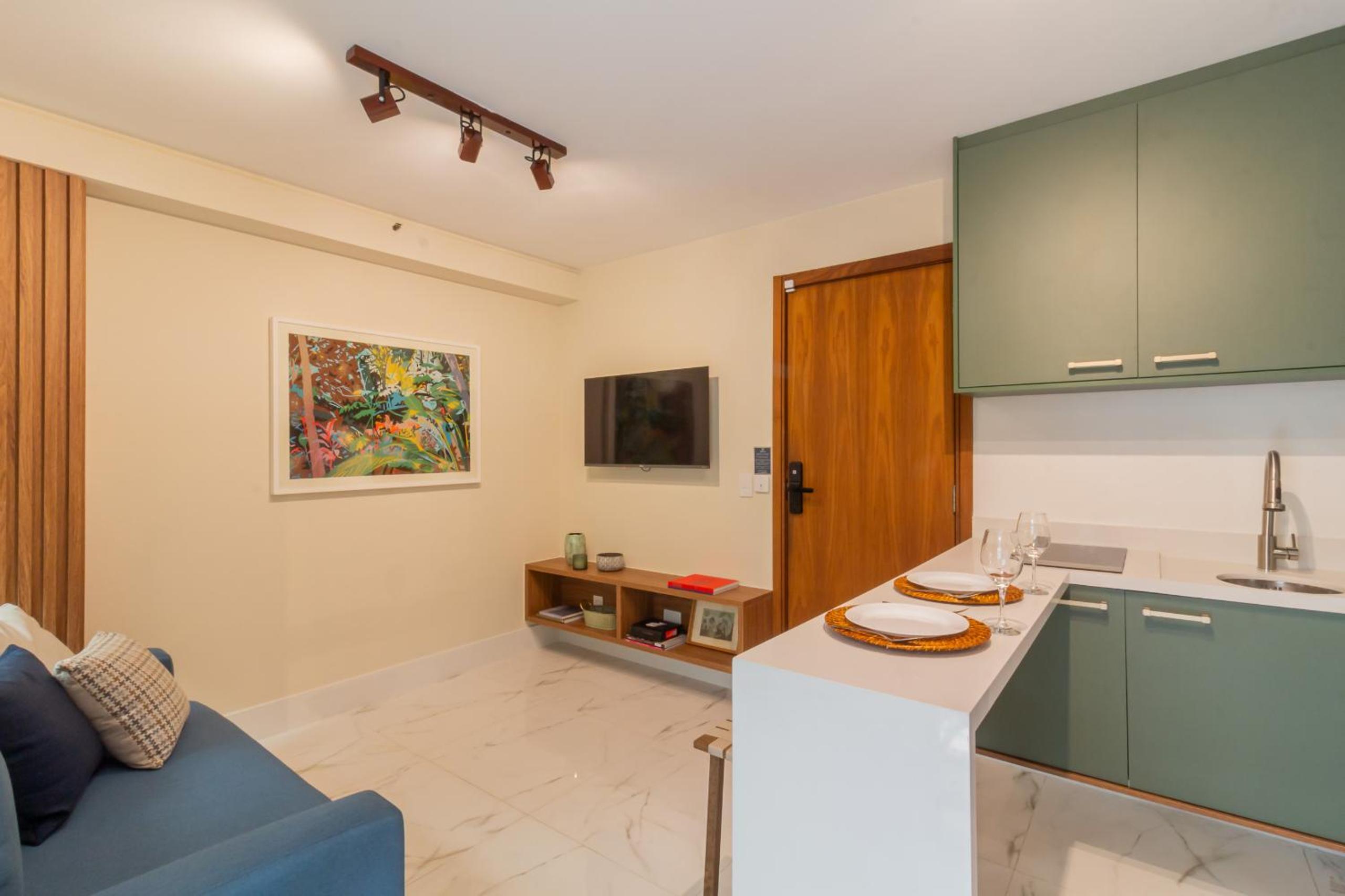 Experience the vibrant energy of Rio de Janeiro at 6 minutos da Praia do Leblon - GSM103, a cozy condo hotel just a stone's throw away from the stunning Leblon Beach.