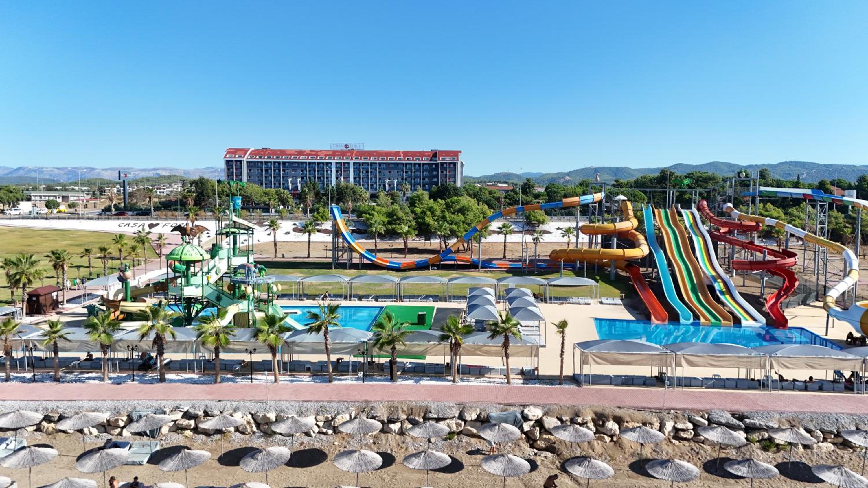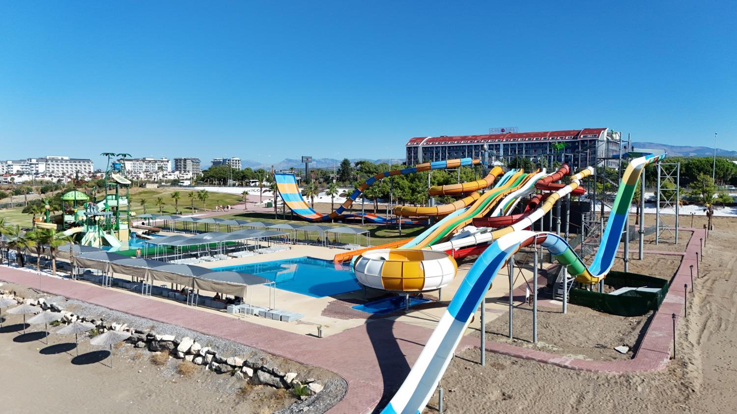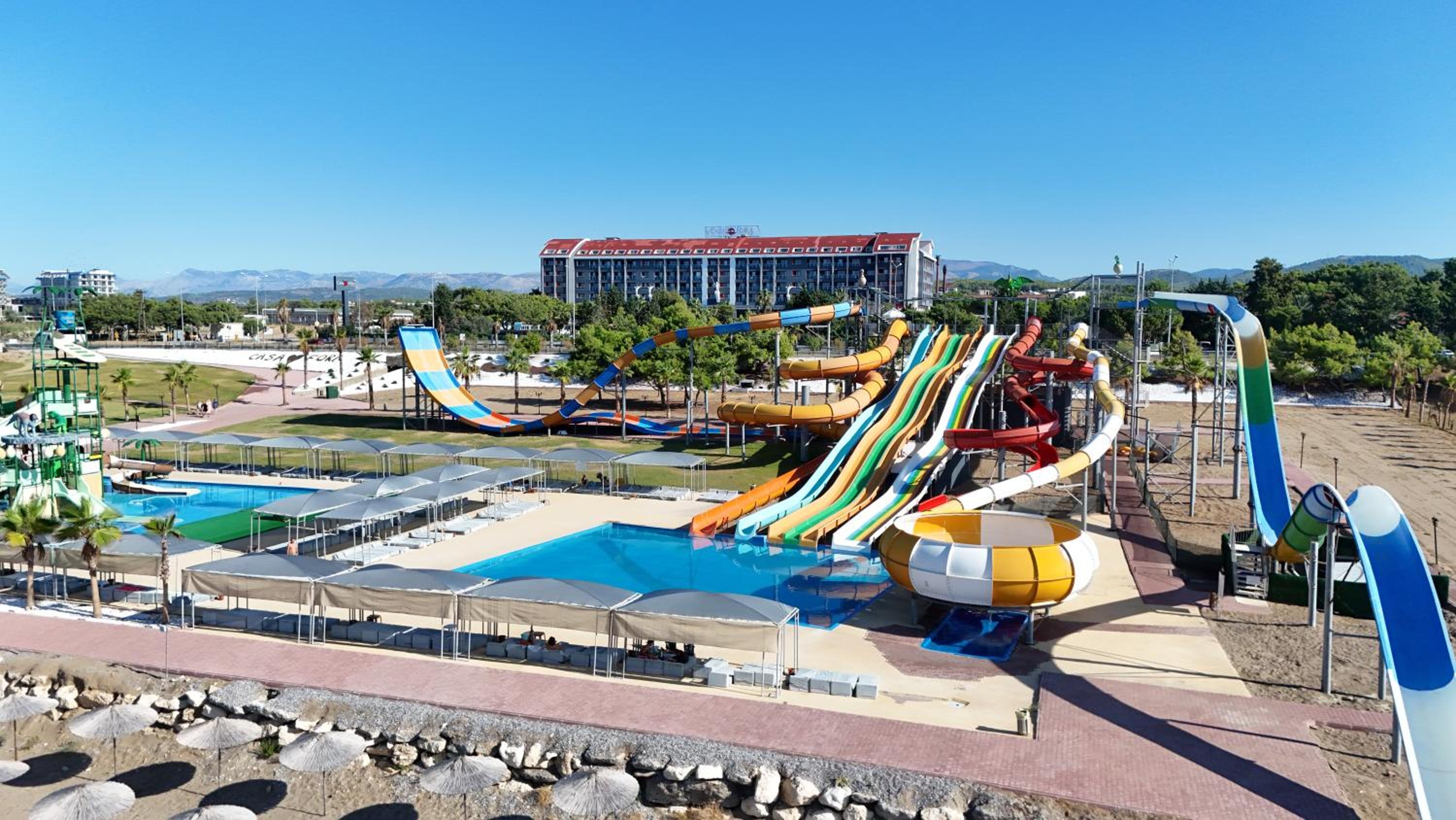 Dive into our stunning outdoor swimming pool, perfect for sun-soaking or enjoying refreshing dips. Revel in our water park, designed for endless fun for guests of all ages.