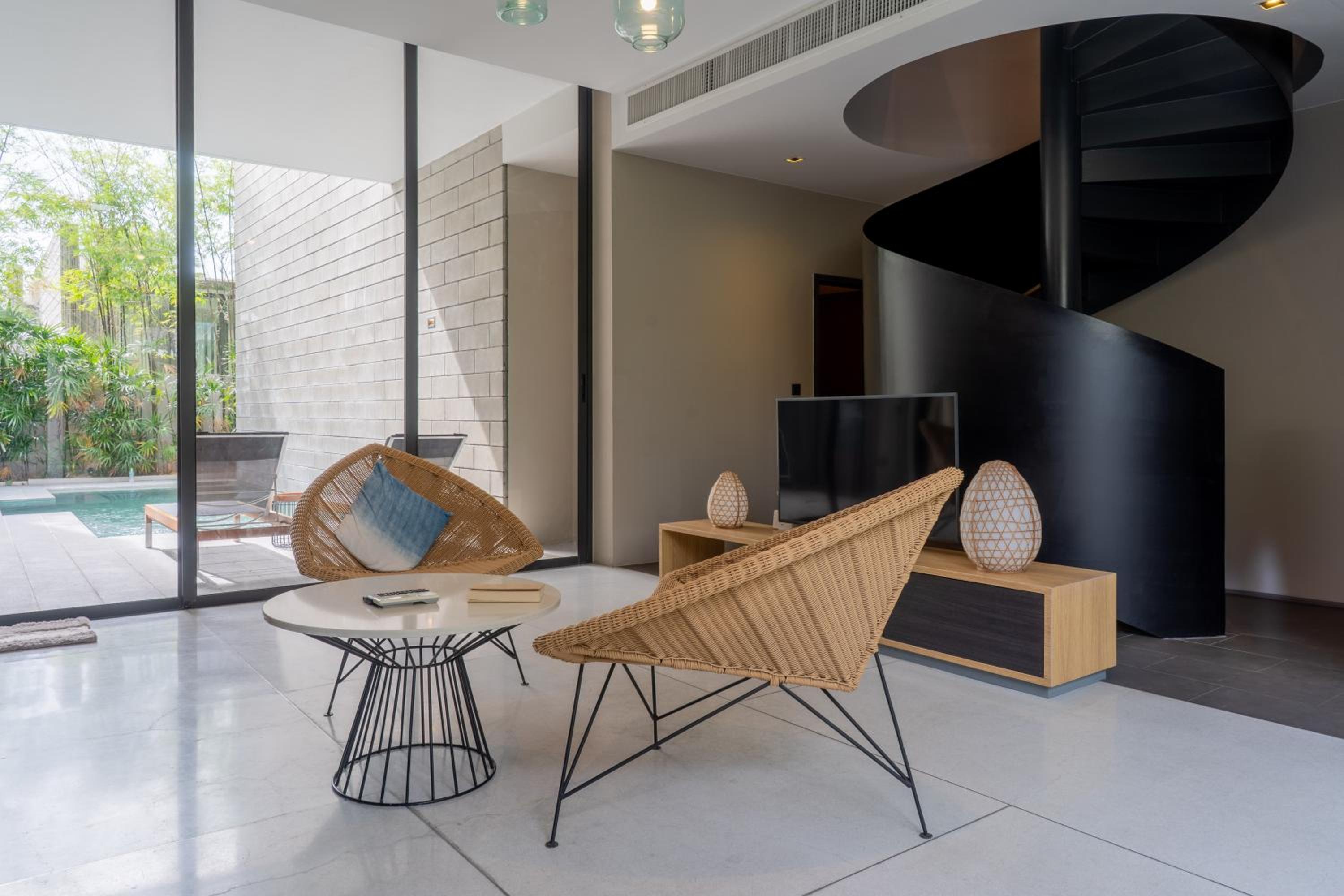 Every guest room offers stunning pool views and is equipped with modern amenities including air conditioning, a flat-screen TV, and a private bathroom complete with complimentary toiletries. Select rooms feature a kitchen for ultimate convenience.