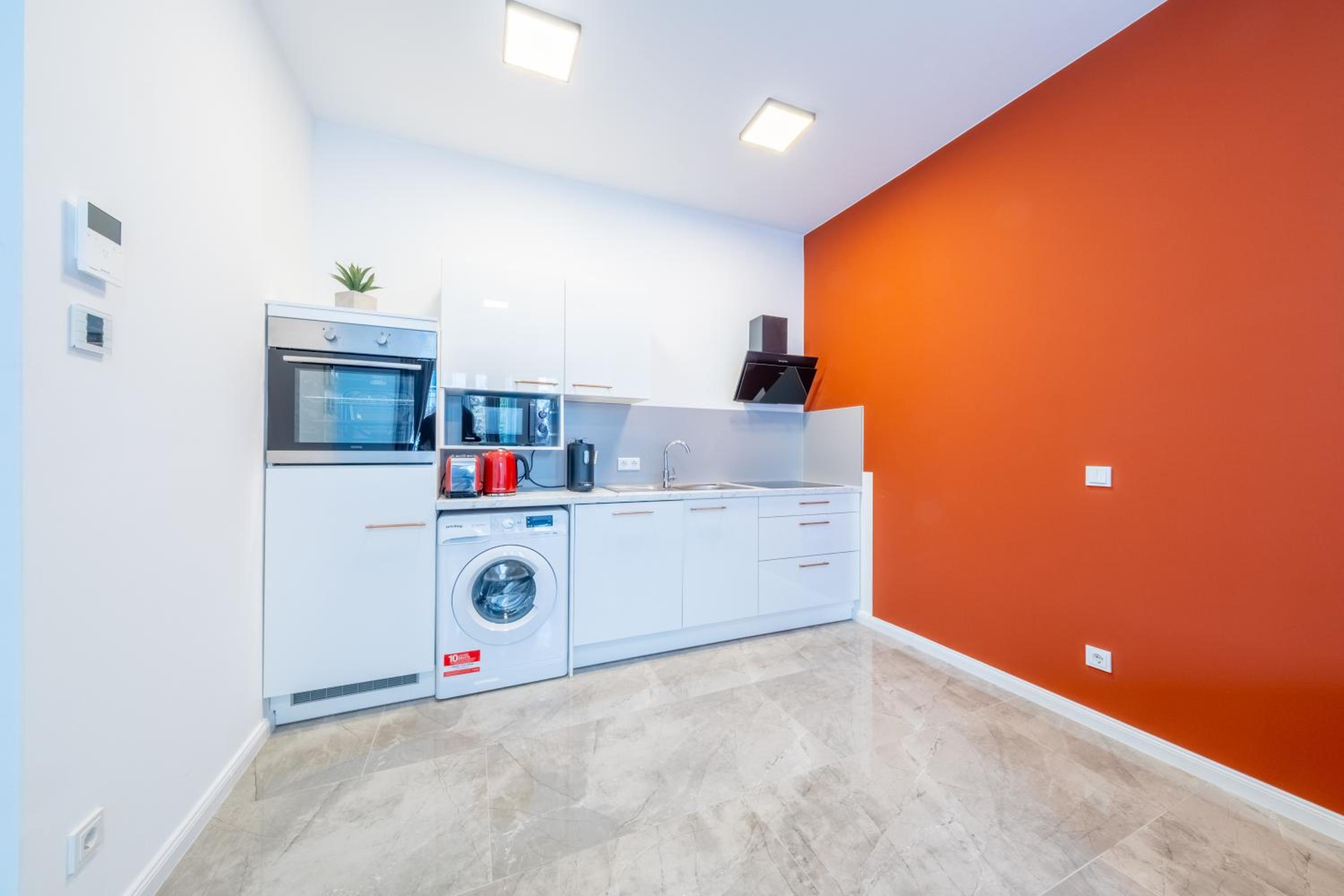 Lokalizacja:blisko do transportu publicznego.Jako baza wypadowa na zwiedzanie miasta w pełni się nadaje.Sam apartament jest bardzo ladny.