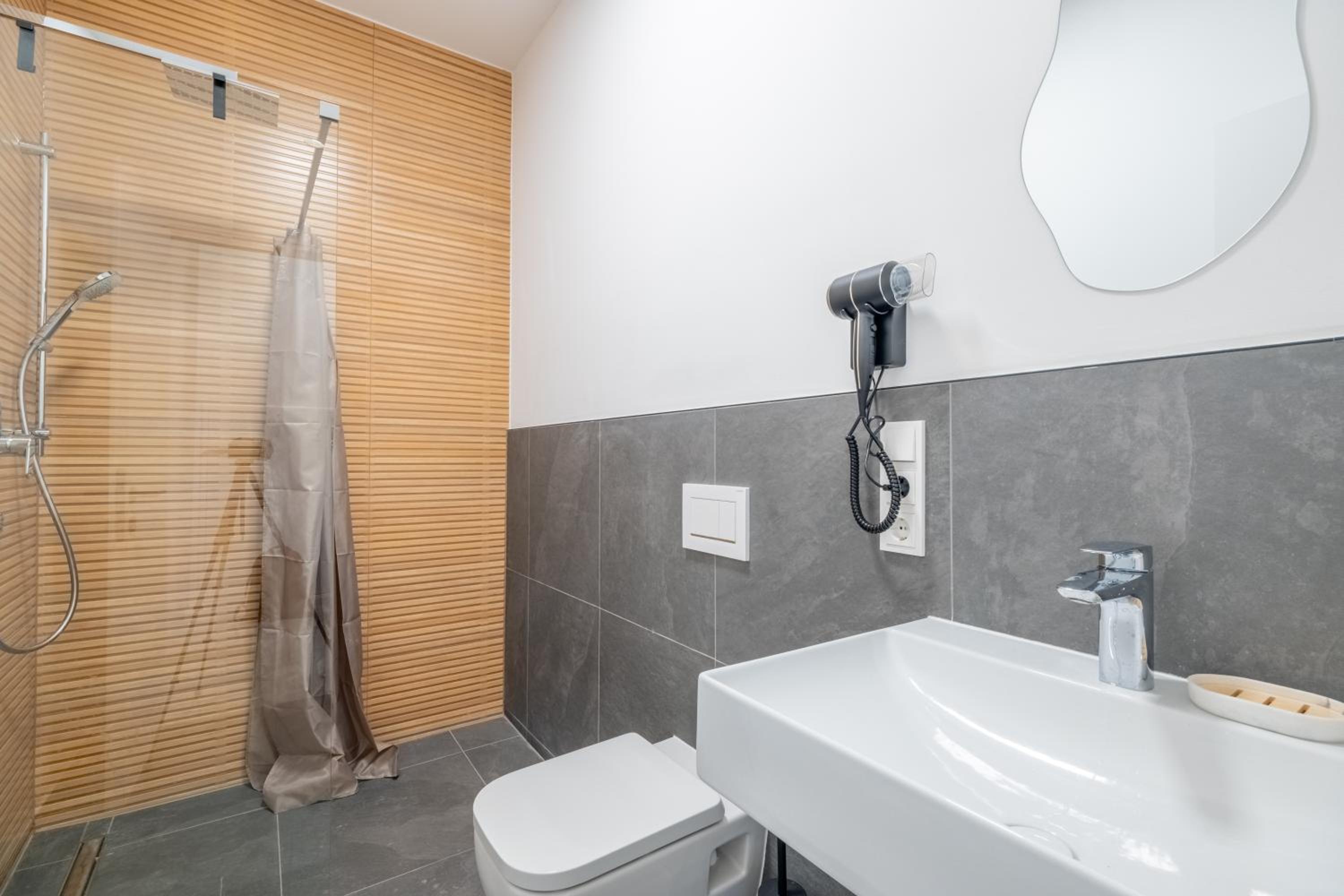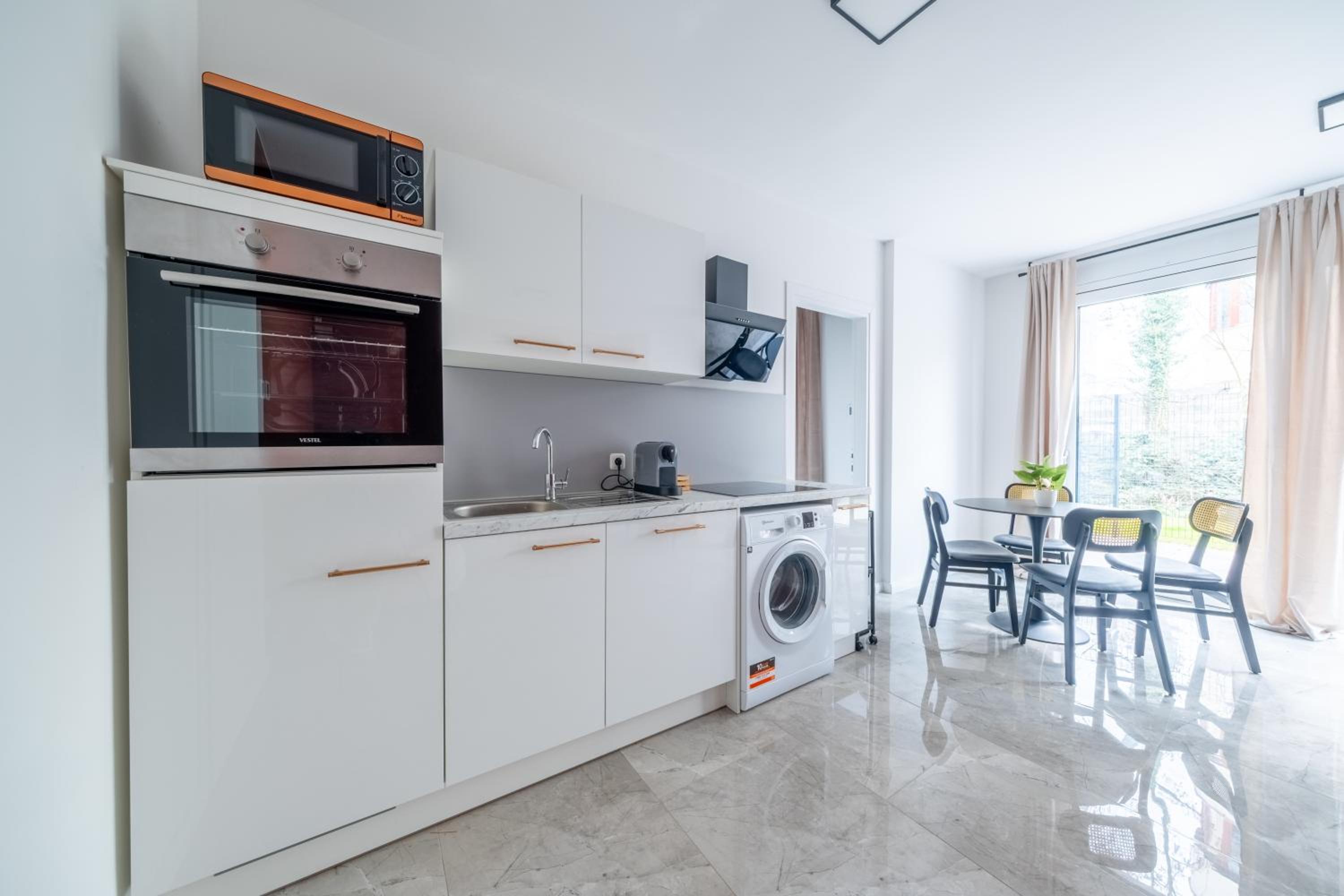 Rozumiem ,że apartament leży blisko ruchliwej ulicy ale okna od środka powinny być umyte!Odplyw w prysznicu był zatkany,dobrze by było go czyscic po każdym pobycie gosci!Przescieradla musza być wybielanie i prasowane bo tego wymaga higiena !-