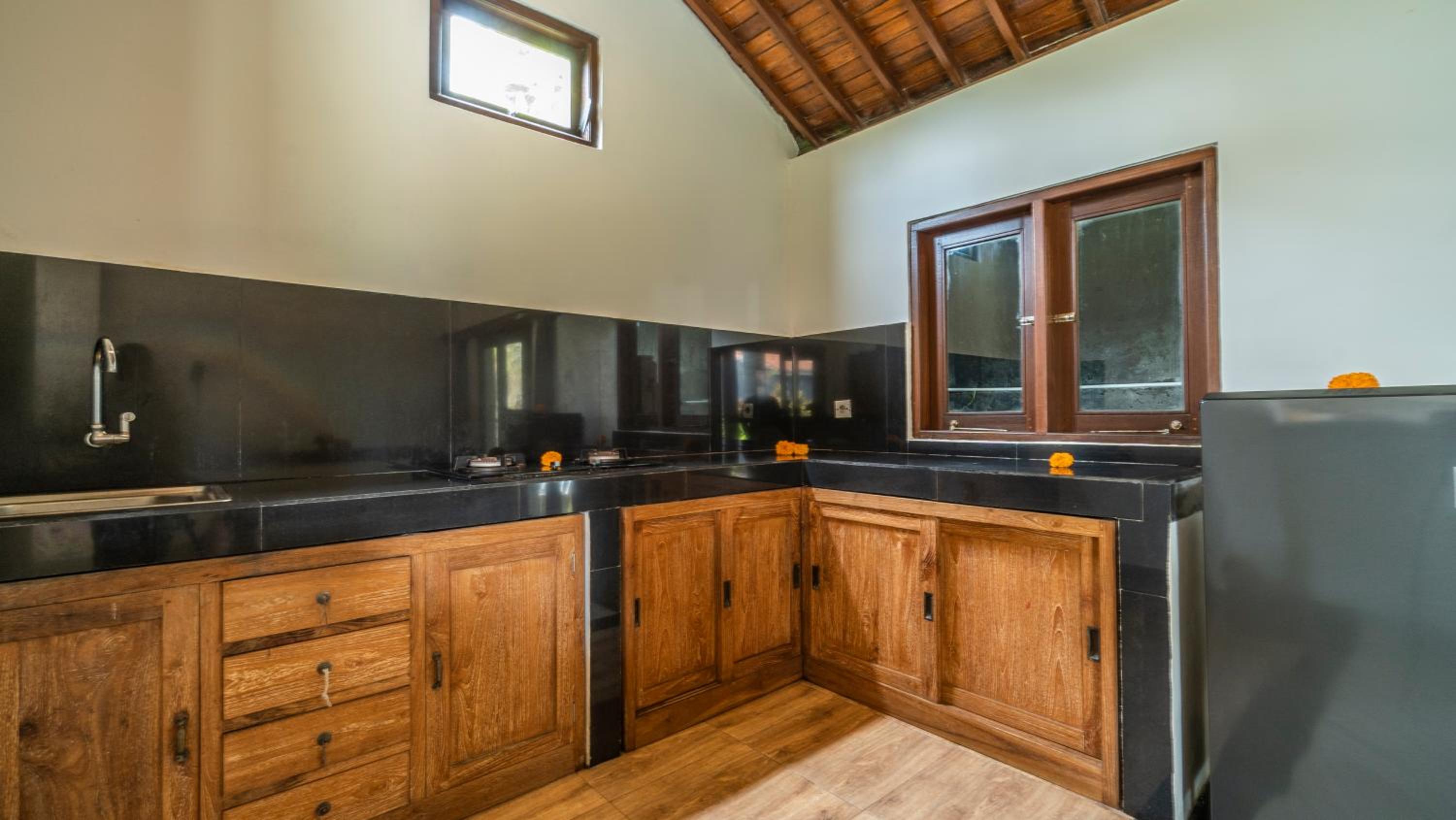 The place is spacious, cleanliness level is acceptable. Location is quiet. Grateful that the villa provides drinking water dispenser.