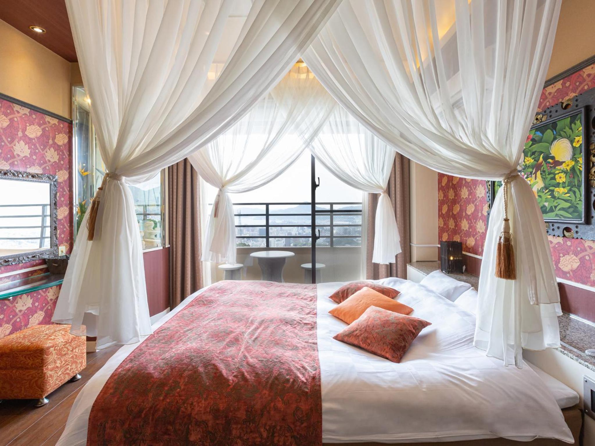 Discover the perfect romantic getaway at リゾートホテル CARA -Adult Only- in picturesque Sasebo. Elegant Accommodations - Each room is designed with your comfort in mind, featuring balconies and private bathrooms stocked with complimentary toiletries, not to mention flat-screen TVs and air conditioning for your personal oasis. Relaxation and Entertainment - Unwind in our inviting hot tub or enjoy a fun-filled night of karaoke, ensuring every moment spent here is memorable. Convenient Location - With free private parking and easy access to local attractions, you can explore the beauty of Sasebo, from Huis Ten Bosch to local eateries, with ease. Don’t miss out on this enchanting experience—book your stay at リゾートホテル CARA today!