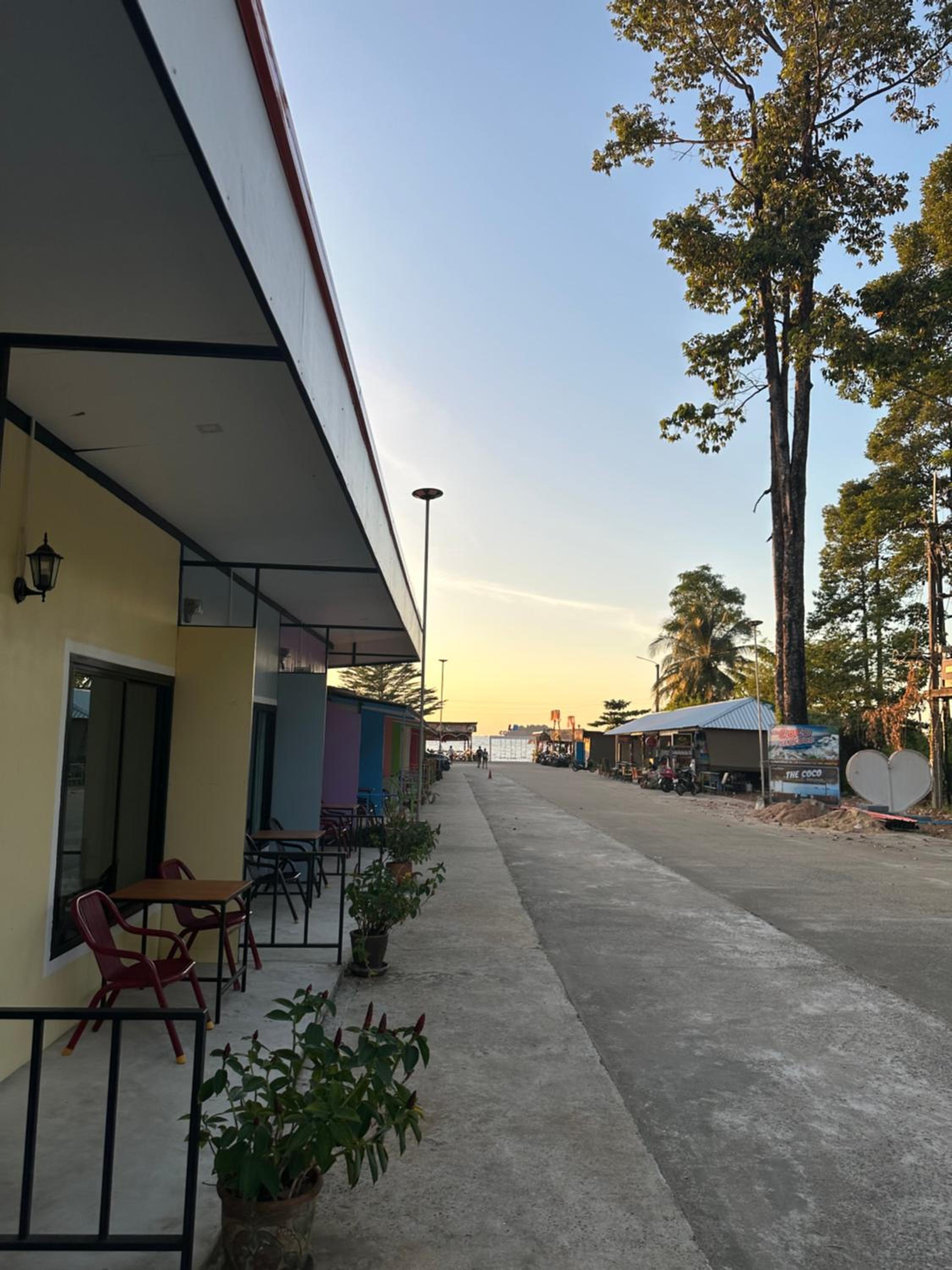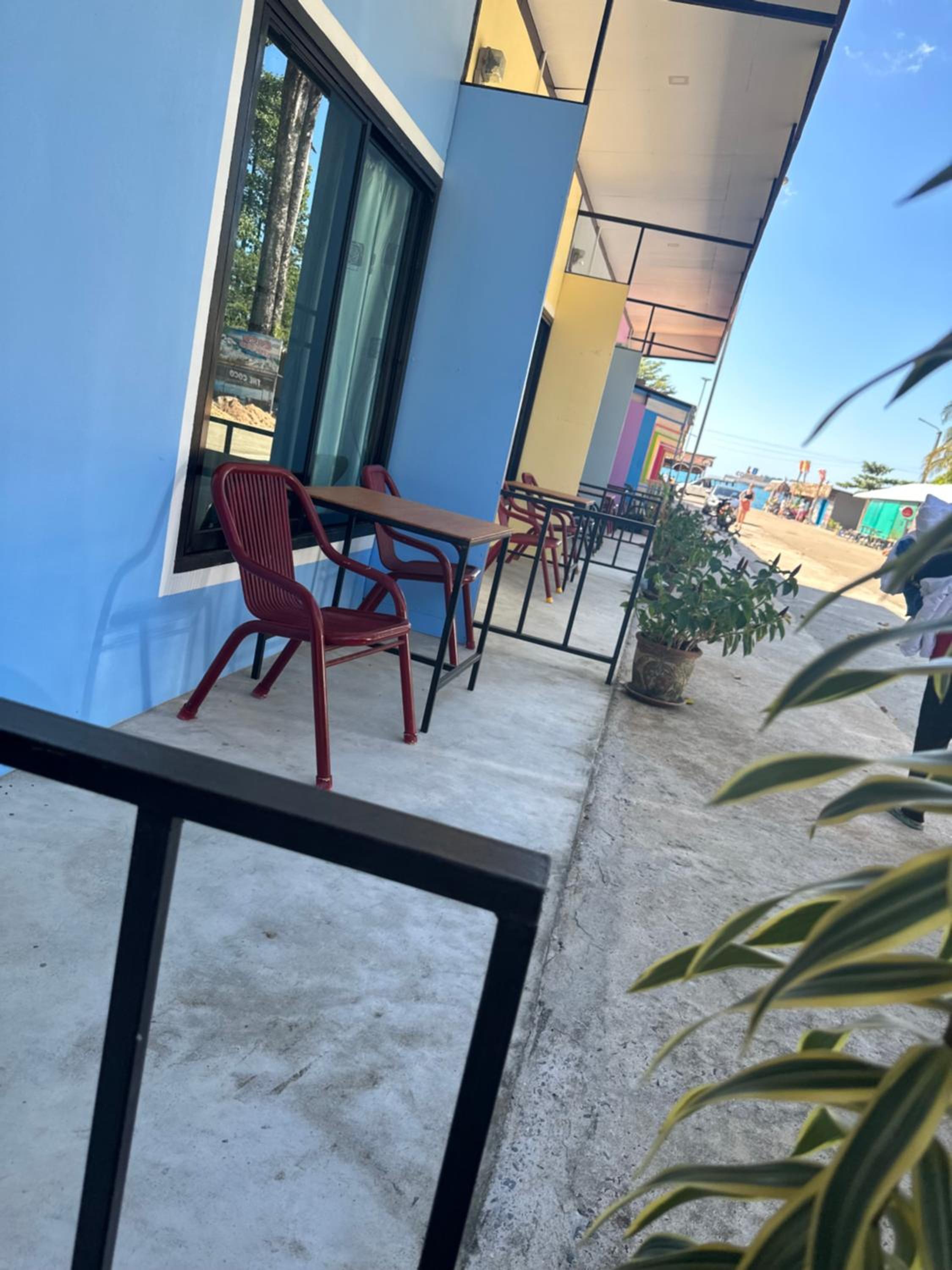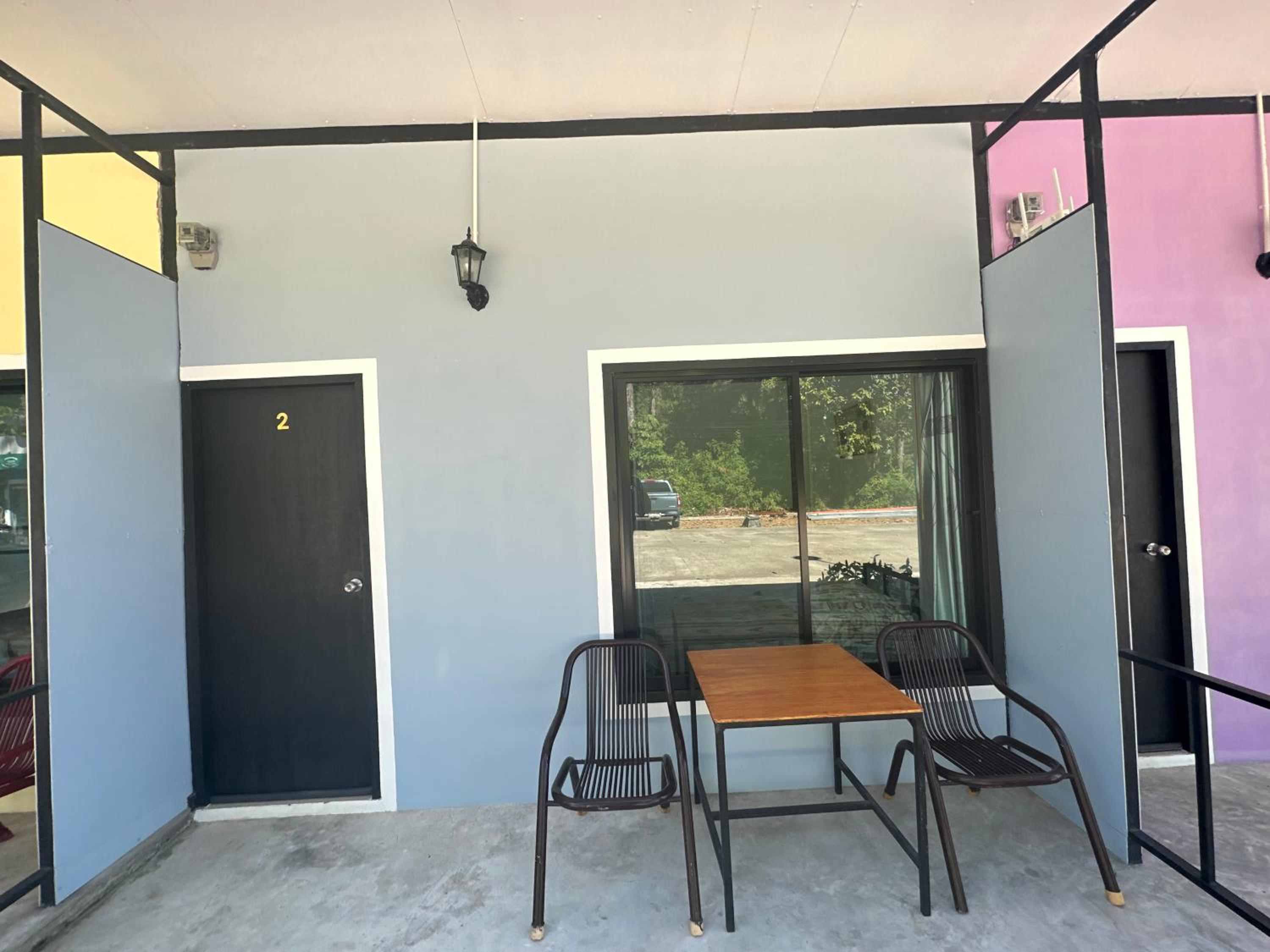 The location was close to coffee shop, 7-11, and a short walk down a path to beach. The staff brought water and TP everyday. There was a table and chairs to sit outside in front of room. Four restaurants close by.