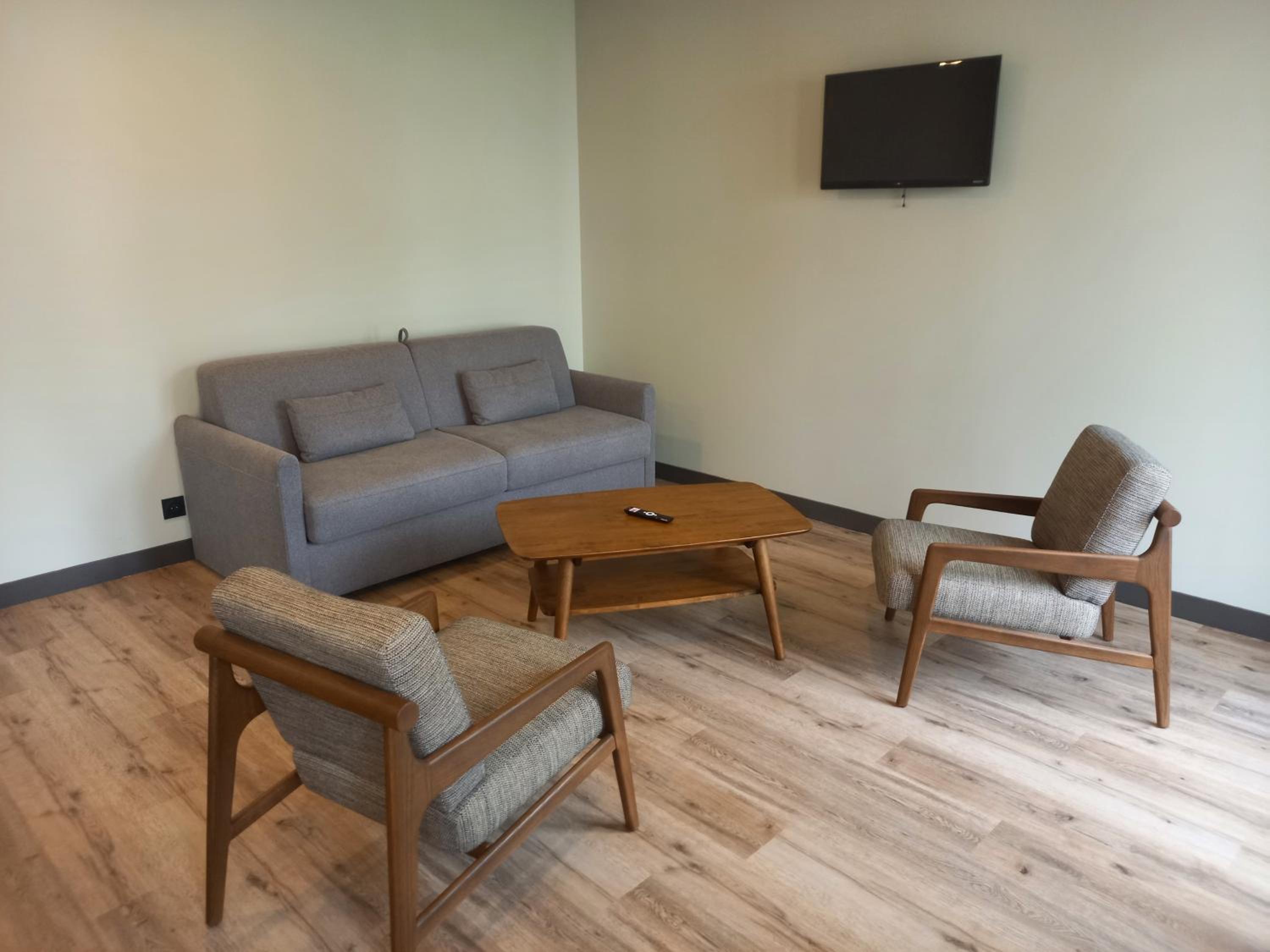 Relax in our thoughtfully designed rooms, complete with flat-screen TVs, cozy closets, and convenient electric tea pots. Some rooms even offer kitchenettes for added flexibility.