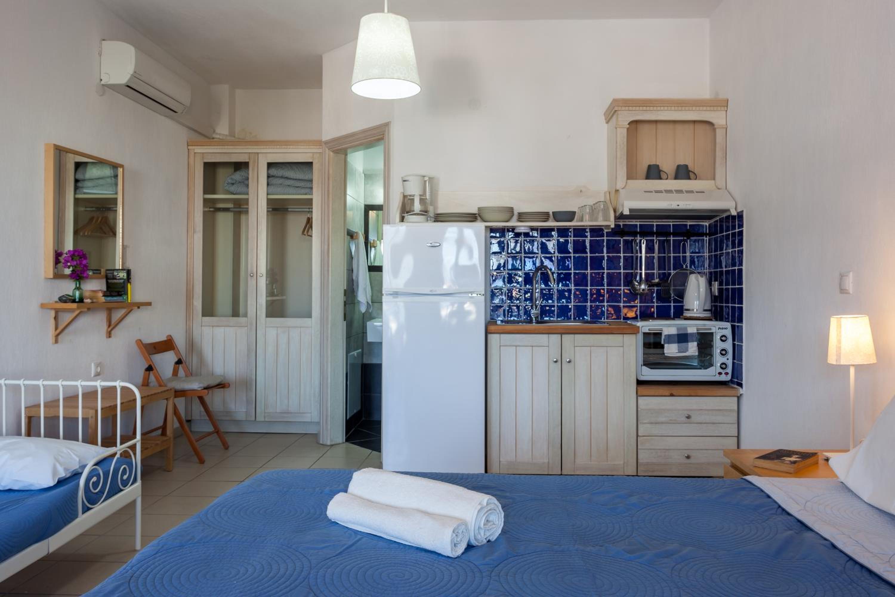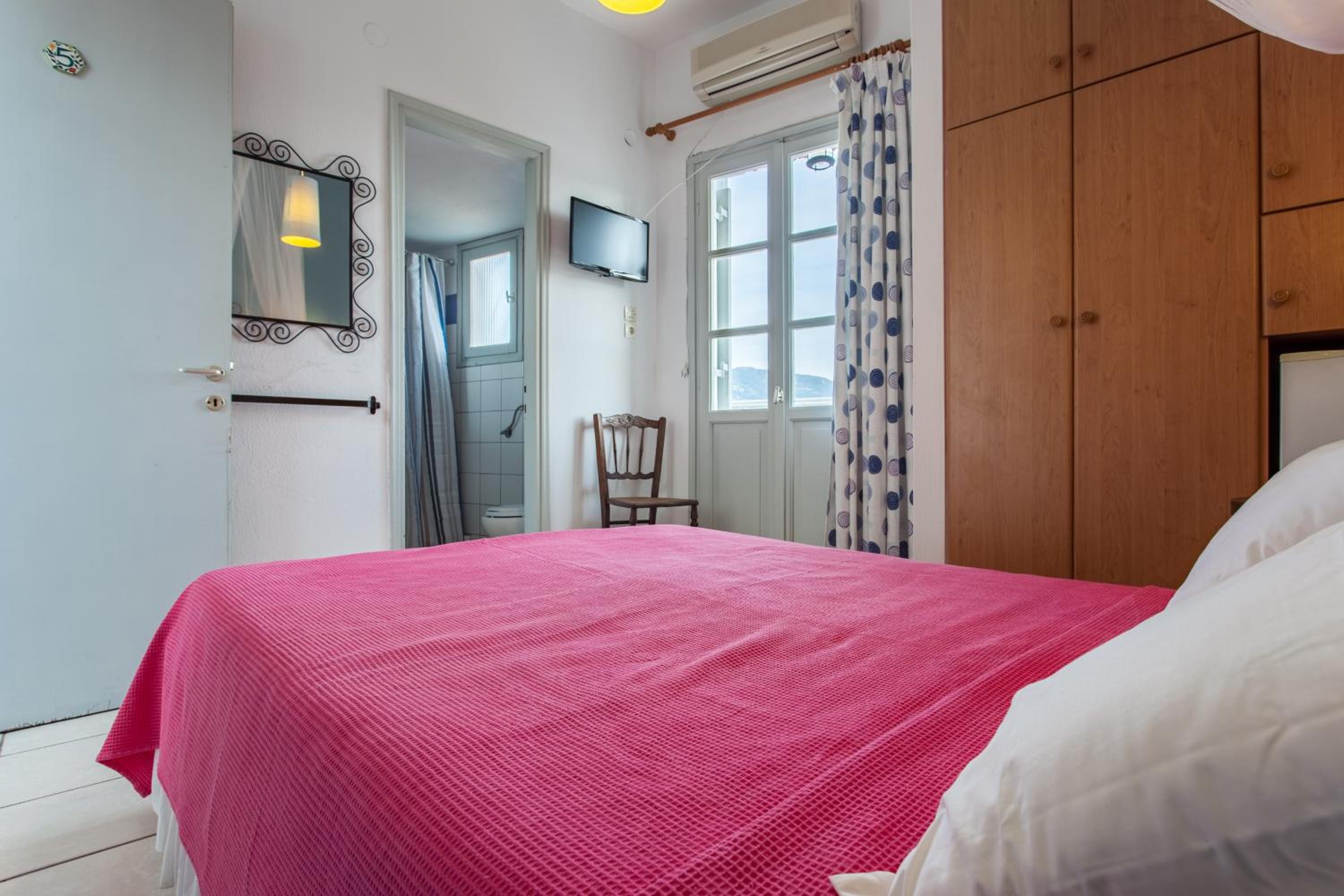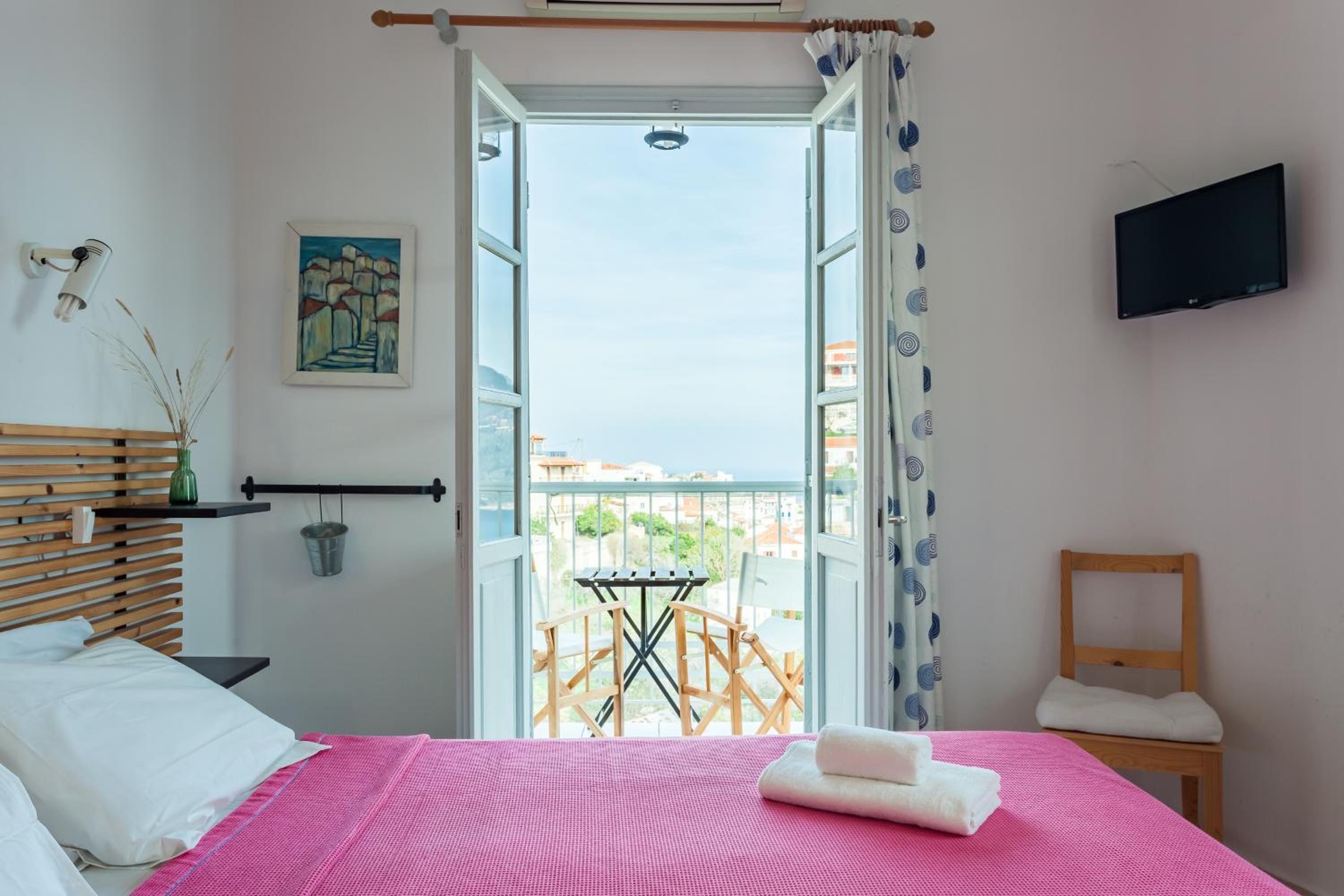 Experience relaxation in our well-appointed rooms featuring air conditioning, a fridge, and a TV. Enjoy your own private balcony, where many offer breathtaking views of the Old Town and the azure waters of the Aegean Sea.