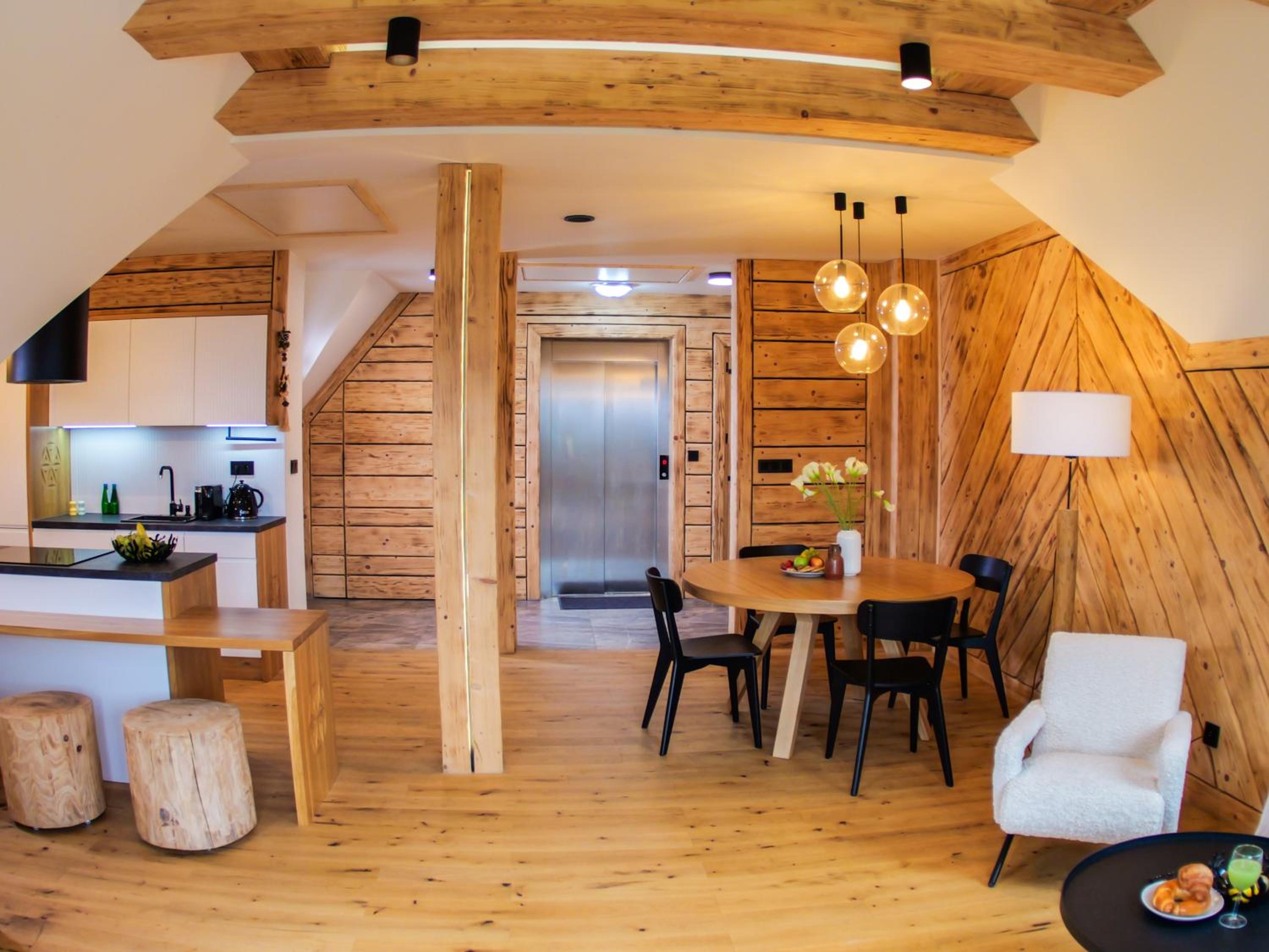 Wystrój i wyposażenie, piękne widoki z okna/balkonu. Podczas niezachmurzonego nieba widać skocznie narciarskie:) Wygląd apartamentu robi dobre wrażenie, jednak nie wszystko do końca przemyślane.