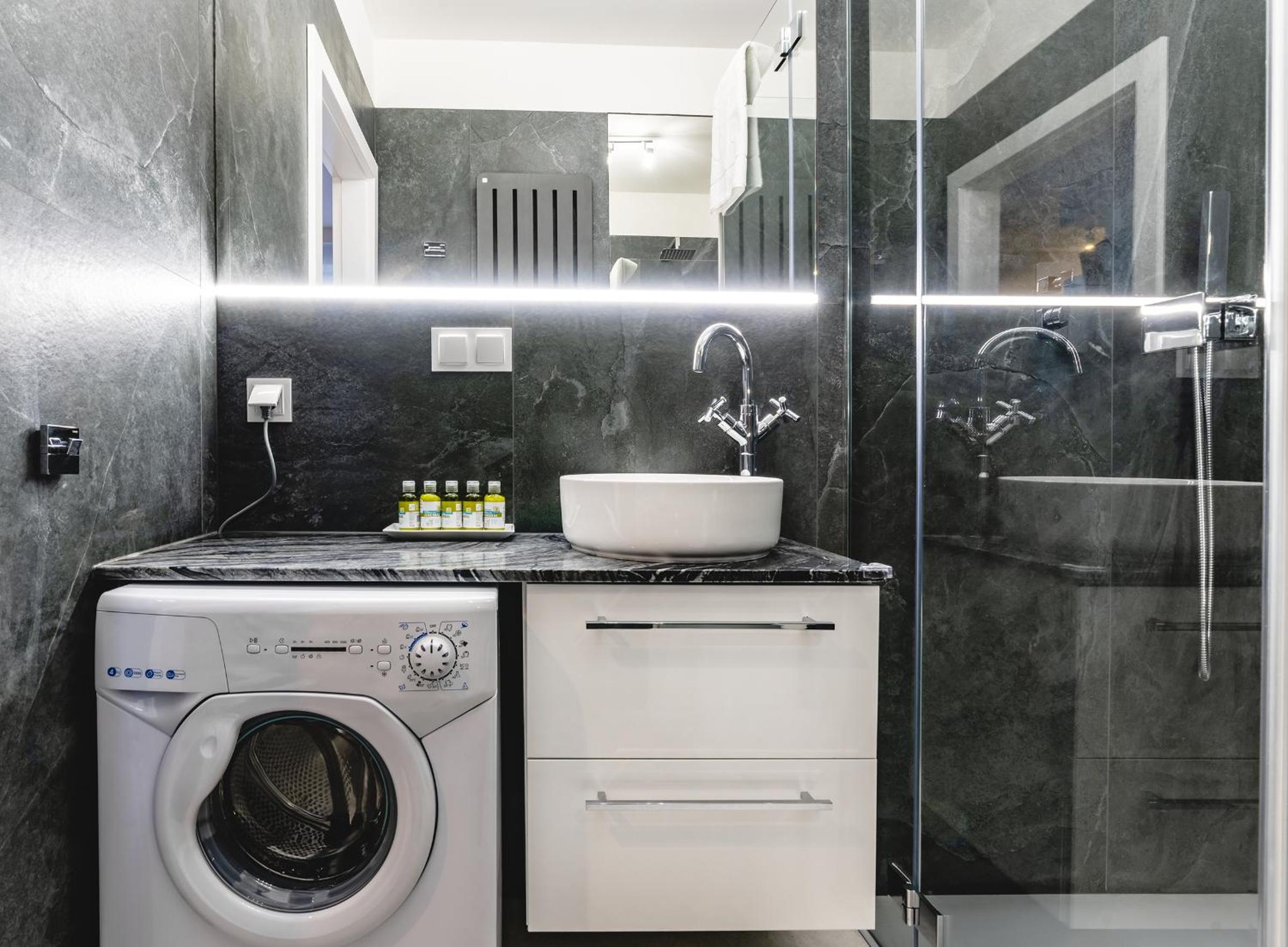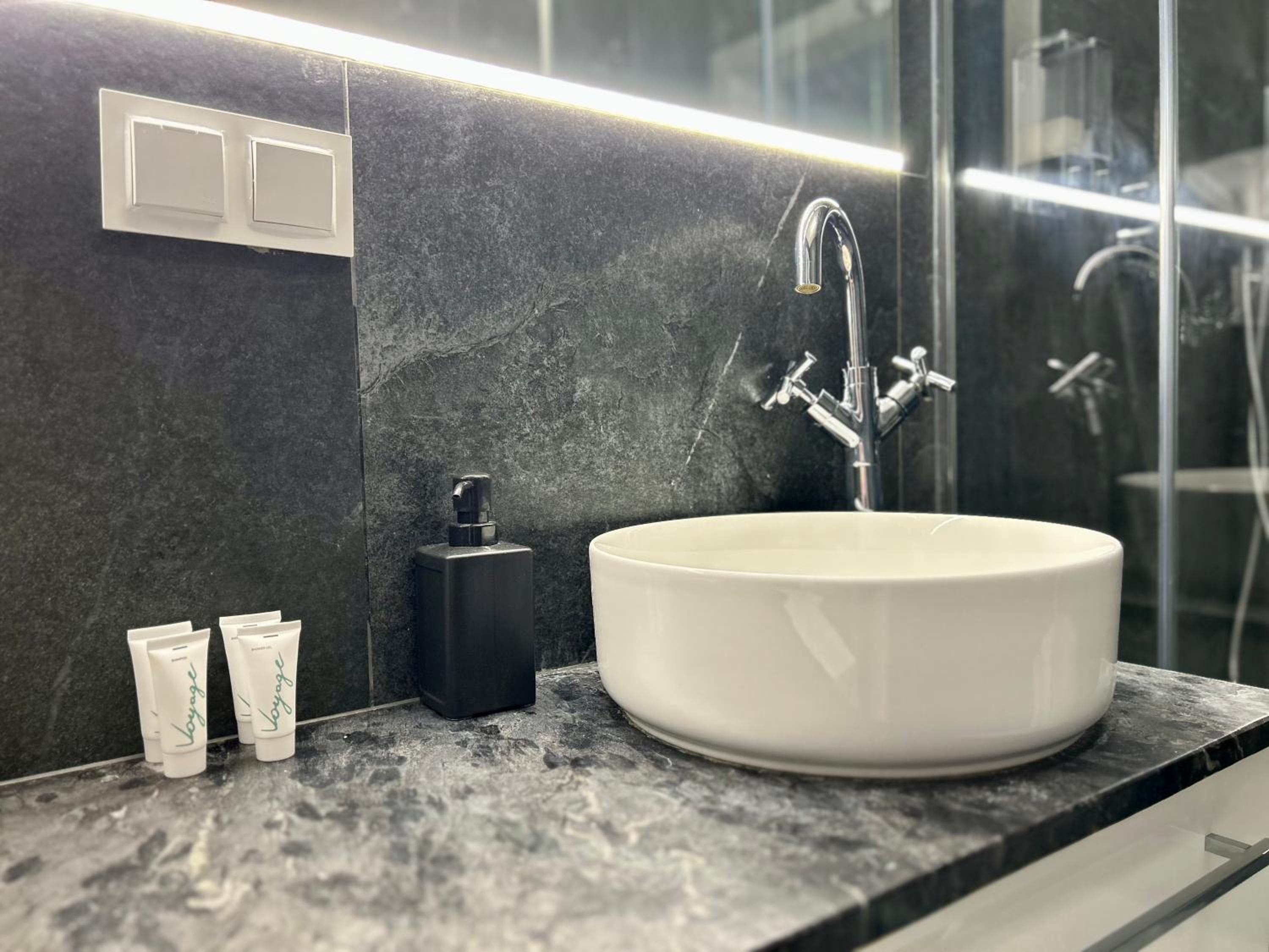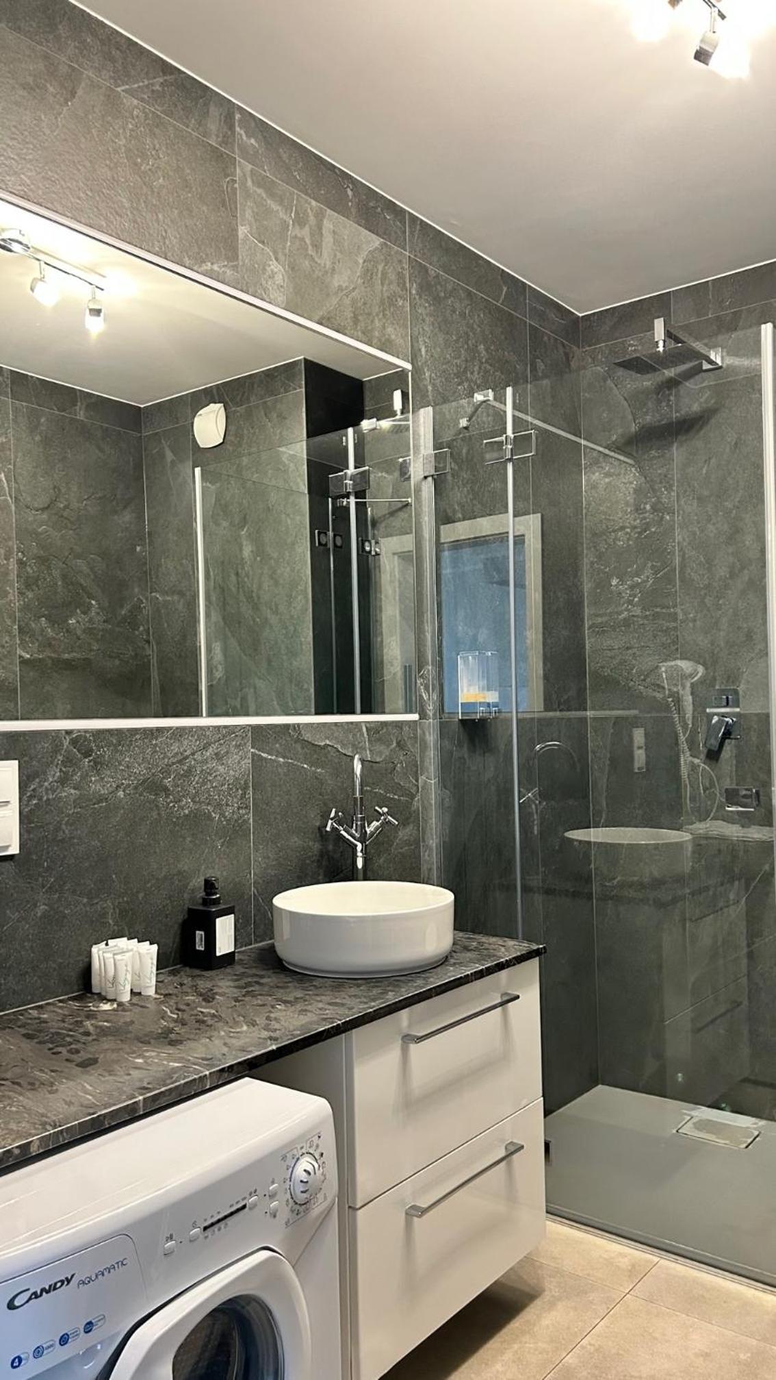 Całościowo oceniam obiekt za dobry, trzy kwestie pozostawiam do przemyślenia: pierwsza dotyczy standardu który bazując na zdjęciach jest wysoki ale wydaje się, że niektóre elementy apartamentu (dot. apartamentu typu loft z 2 sypialniami) albo się zużyły i wymagają wymiany lub naprawy (sofa w salonie, drzwiczki szafki w kuchni, kabina prysznicowa - kamień rdza, zlew).
