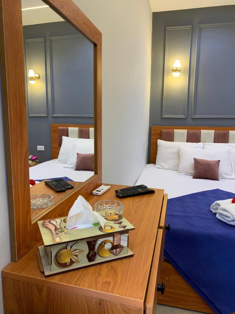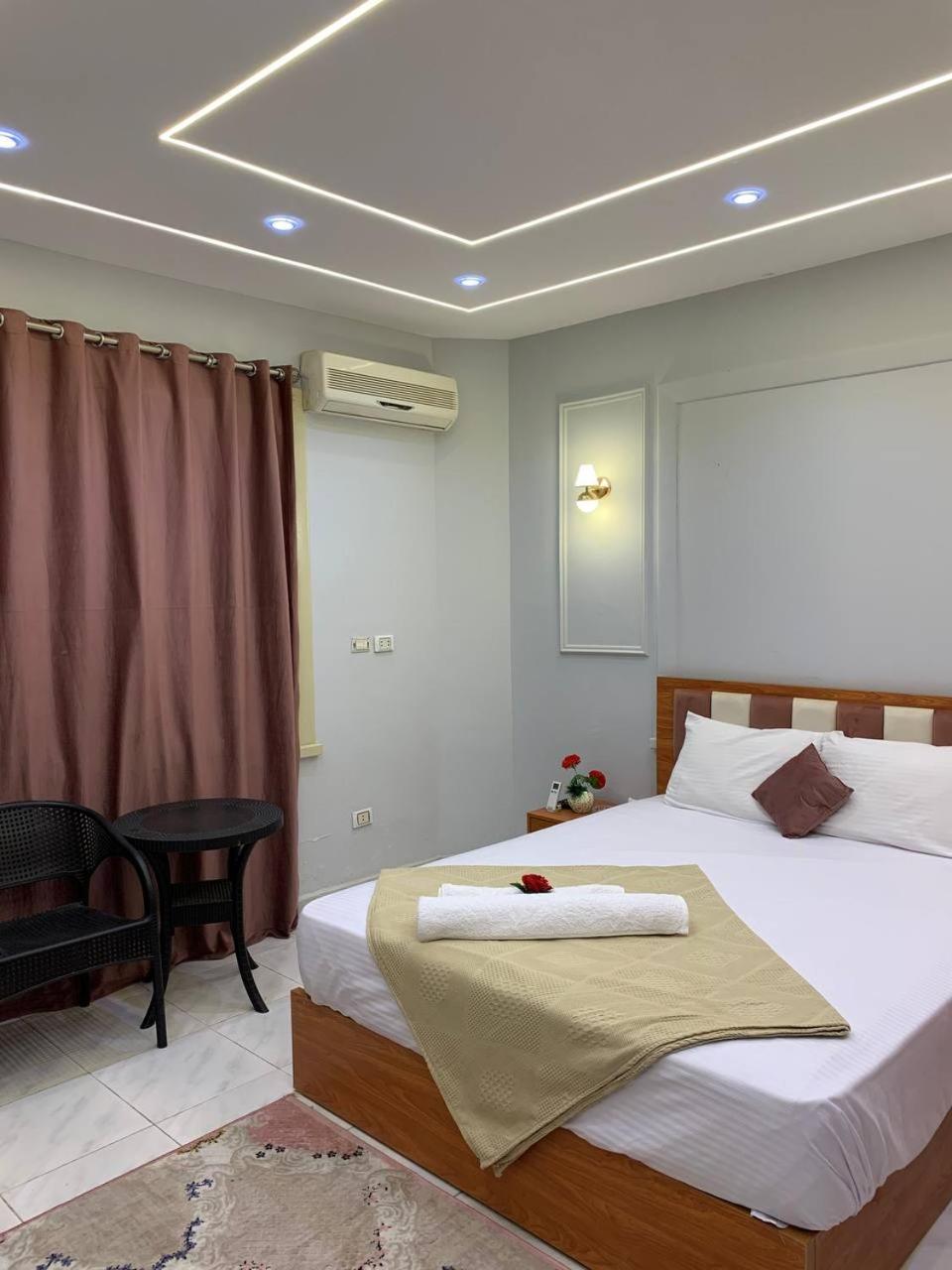 Vybavení pokoje absolutně neodpovídalo popisu v nabídce Booking.com. I s přihlédnutím k tomu, že jde o hotel se třemi hvězdičkami a Egypt. A to jsme měli zaplacený pokoj "De Luxe"!!!! Na stránkách Booking jsou pokoje nafocené tak, aby vypadaly vcelku bezproblemově. Realita je jiná - proležená matrace, špína v koupelně, hluk z ulice, sprcha na zdi hned vedle záchodu a nekryté elektroinstalace. Na 2 lidi jsme dostali 1 ručník a 1 osušku, kterou nám za celý týden nevyměnili. V pokoji nebyla ani židle, natož fén a dokonce ani trezor, který byl dle popisu na Booking.