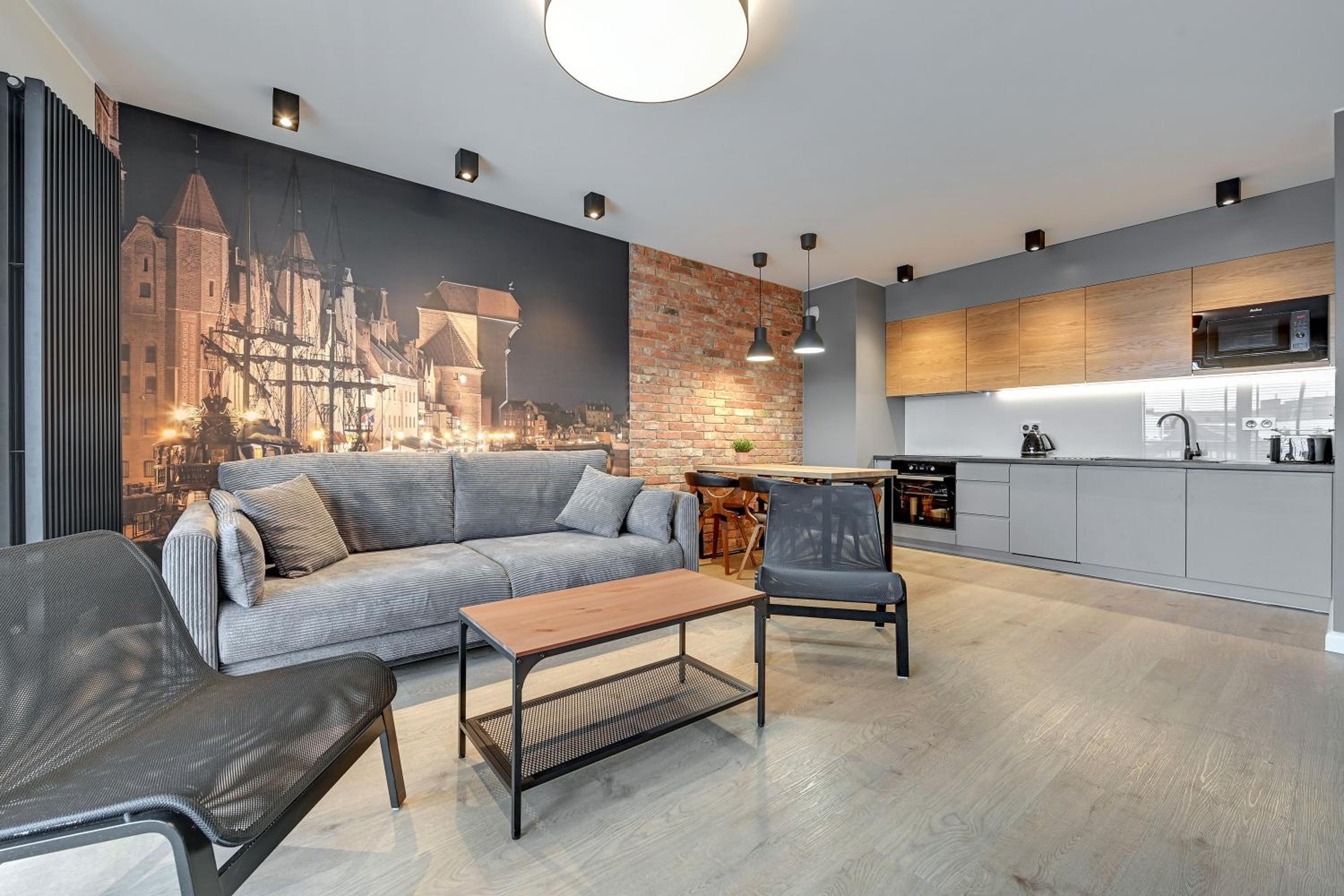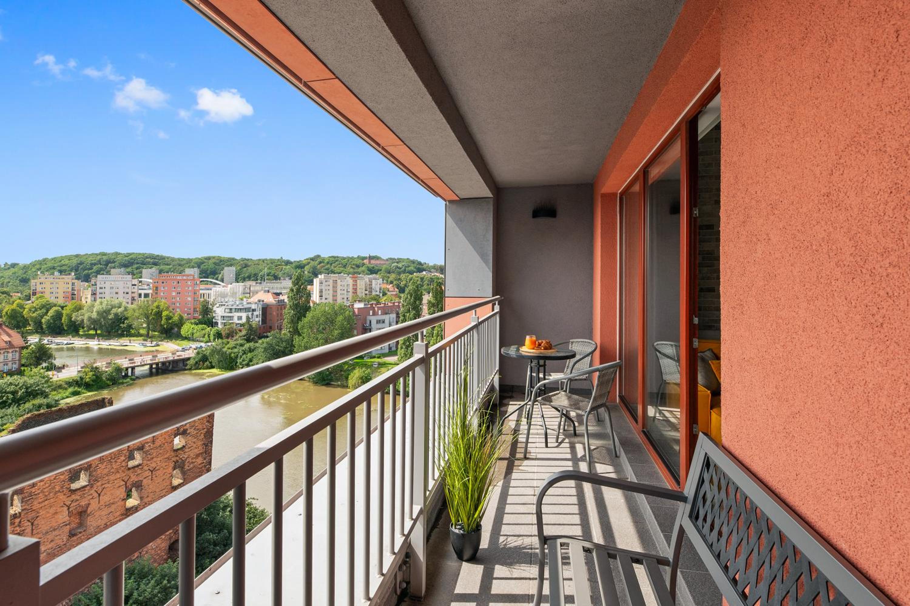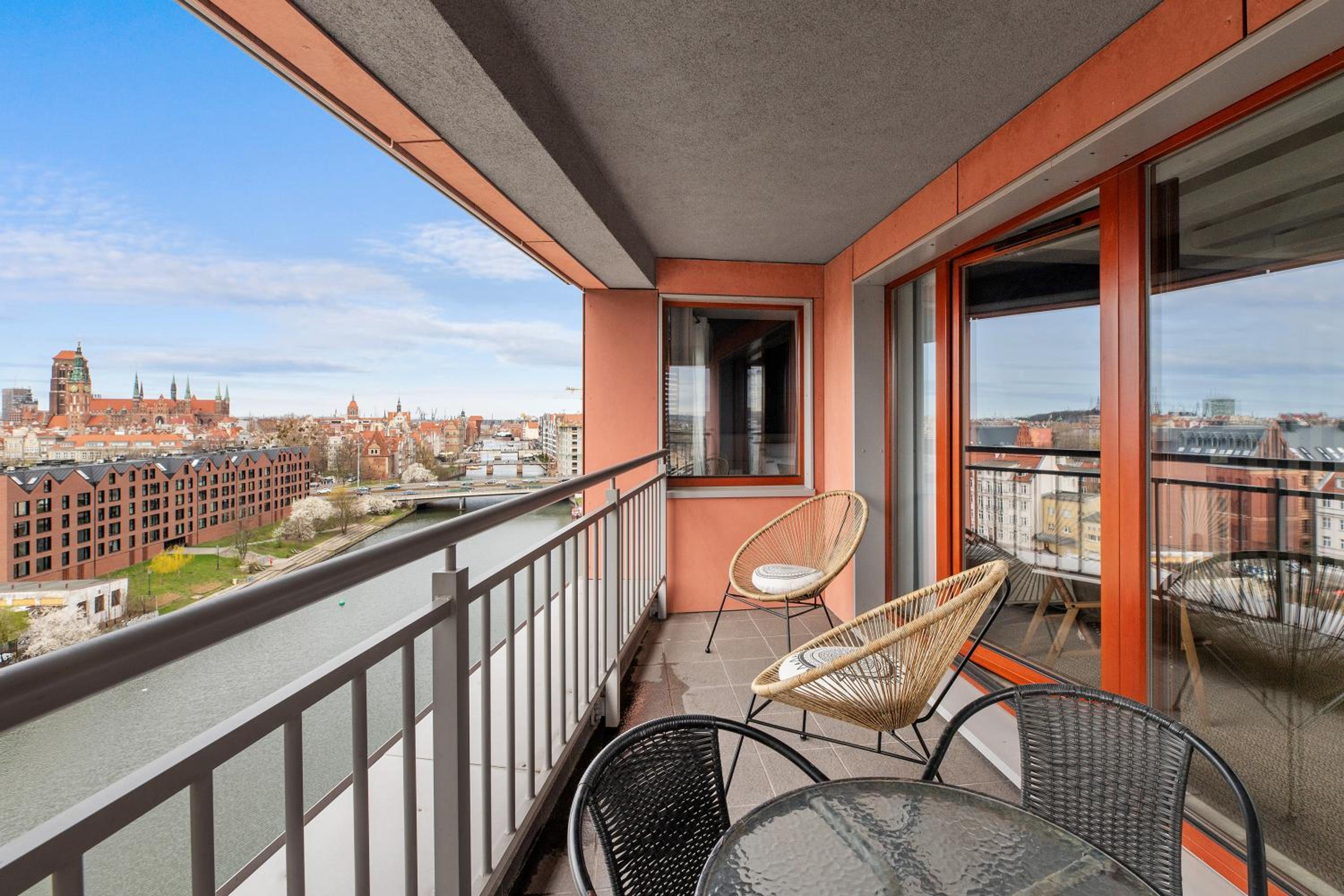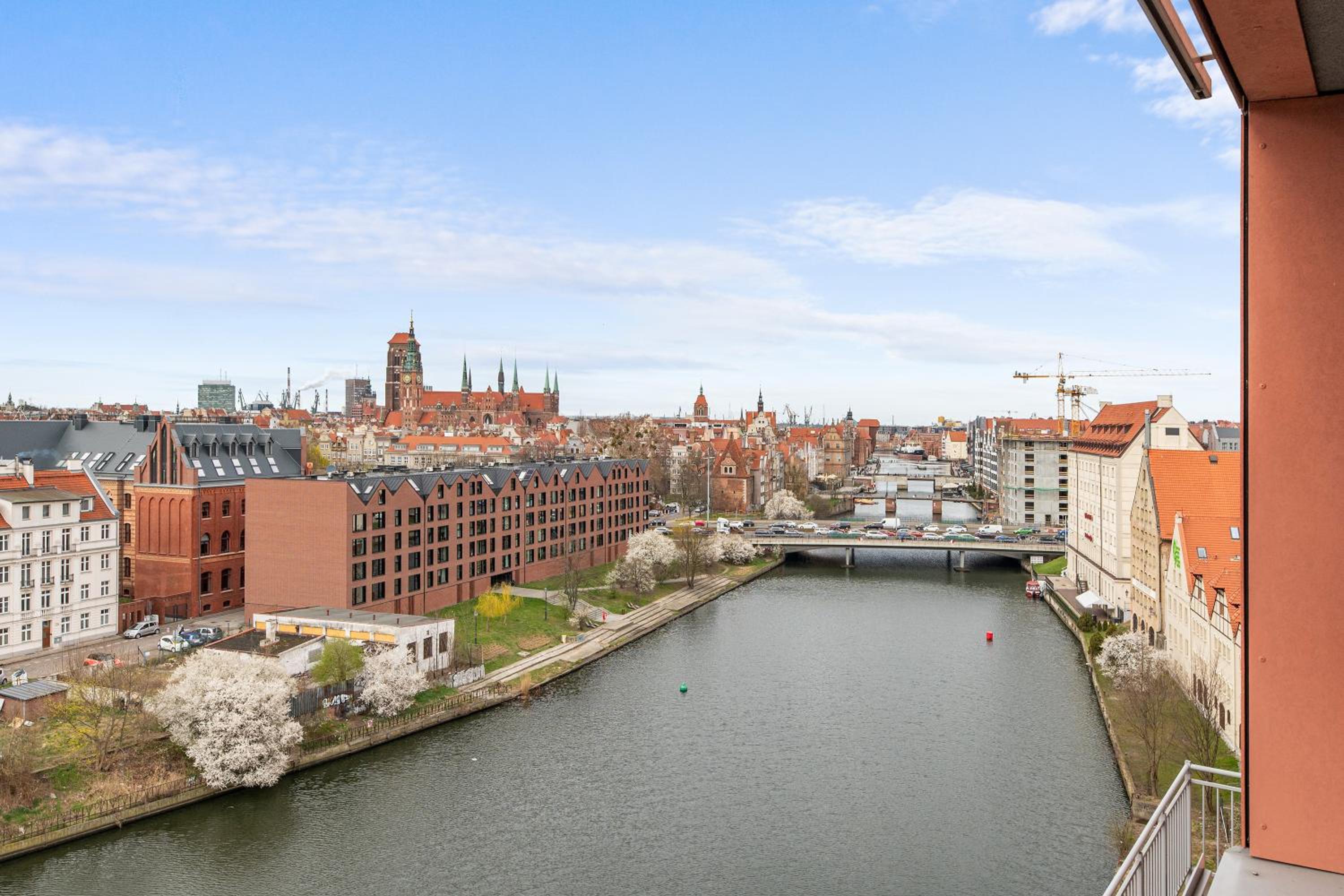 Przestronny apartament z dużymi oknami, tarasem. Wszelkie udogodnienia (lodówka, zmywarka, pralka, płyta indukcyjna, kuchenka mikrofalowa). Znakomita lokalizacja, bardzo blisko na starówkę. Widok na Motławę.