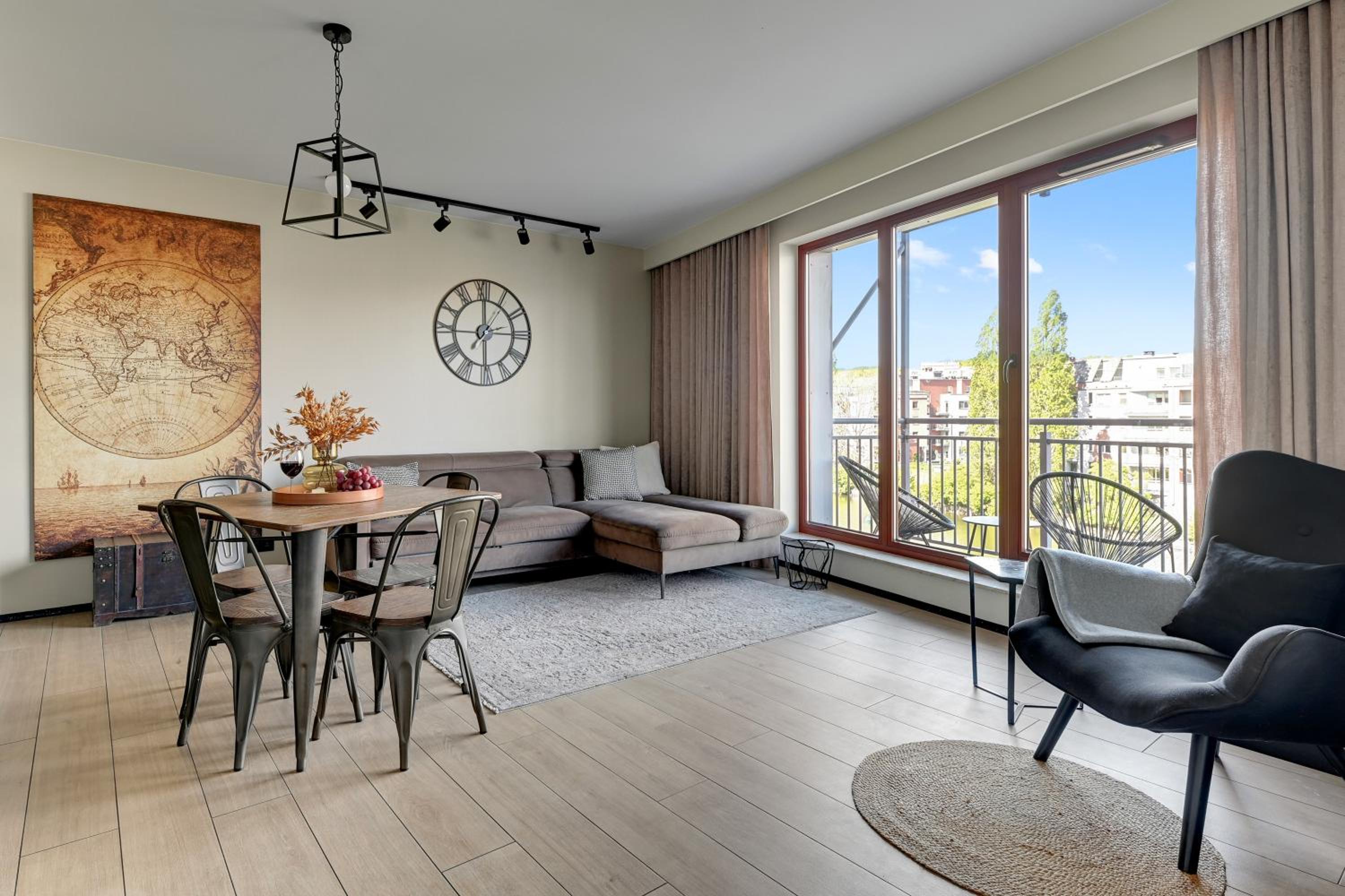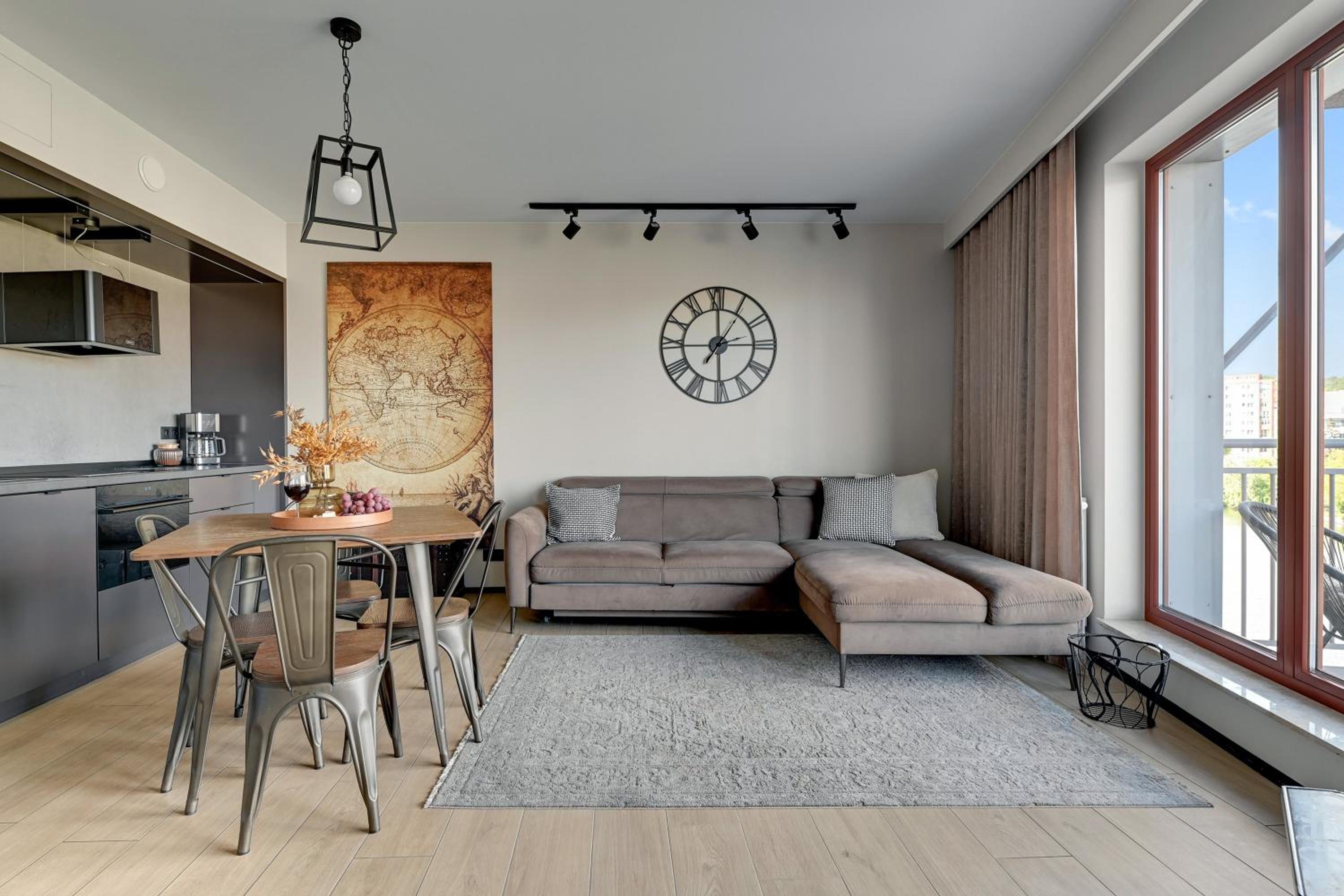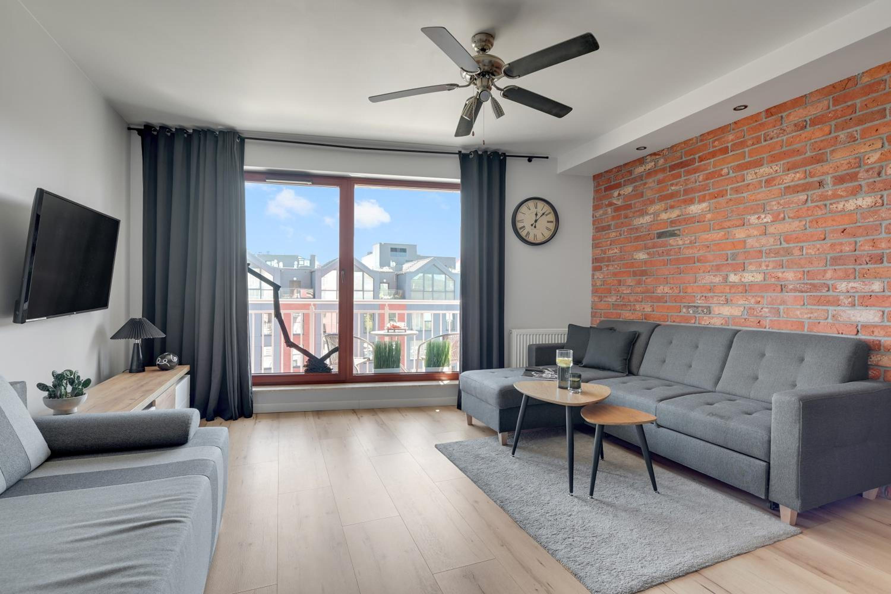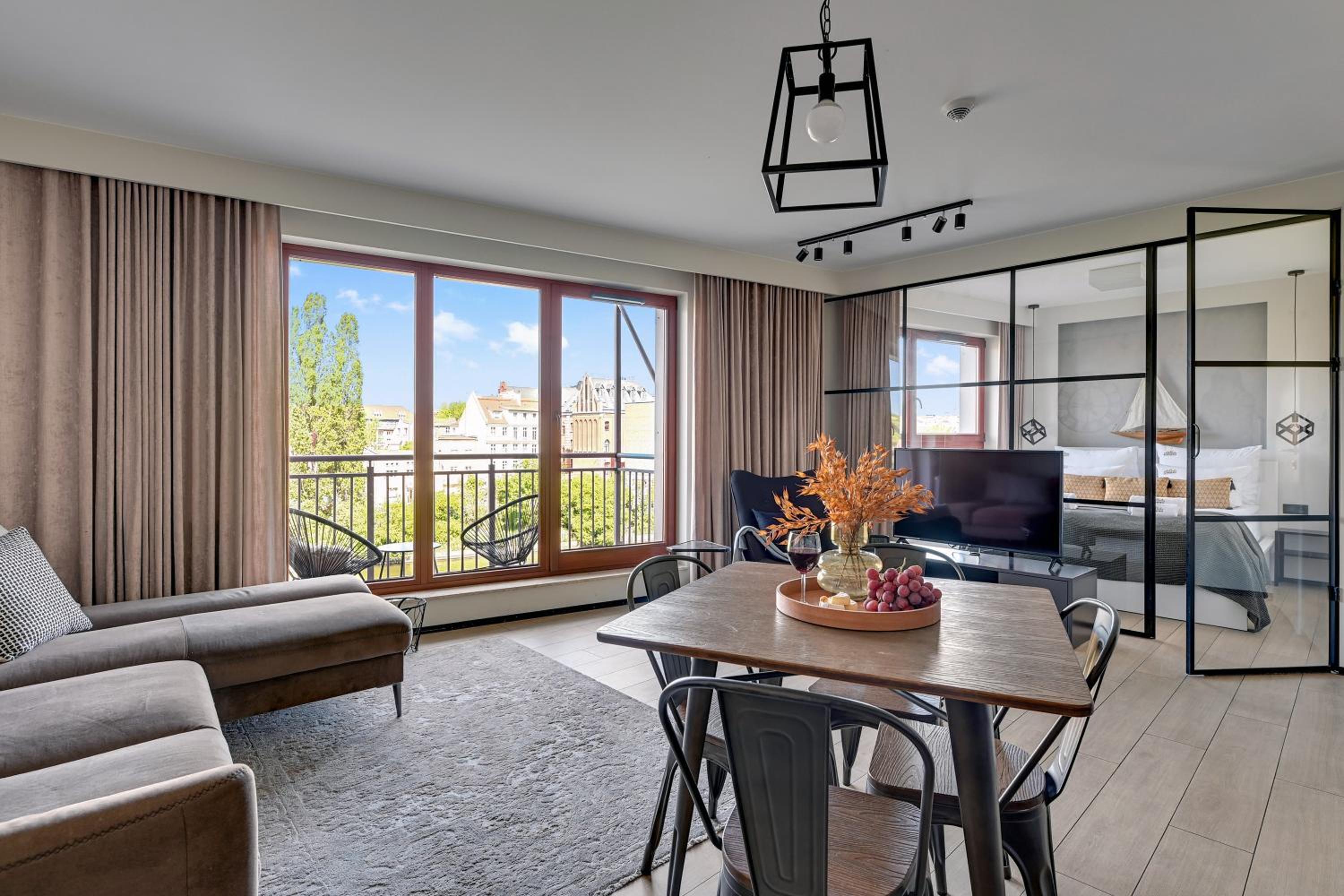 Przestronny apartament z dużymi oknami, tarasem. Wszelkie udogodnienia (lodówka, zmywarka, pralka, płyta indukcyjna, kuchenka mikrofalowa). Znakomita lokalizacja, bardzo blisko na starówkę. Widok na Motławę.