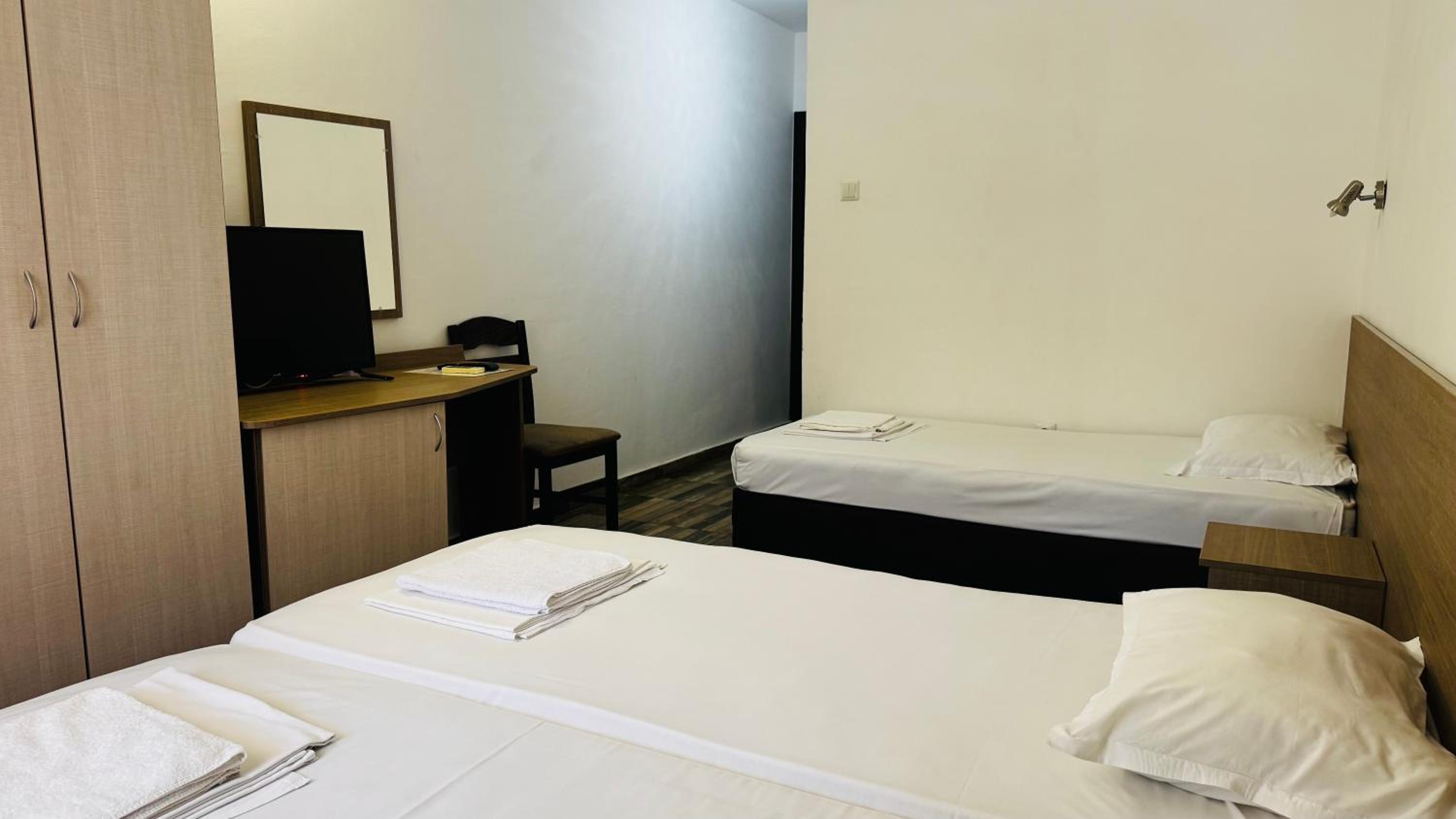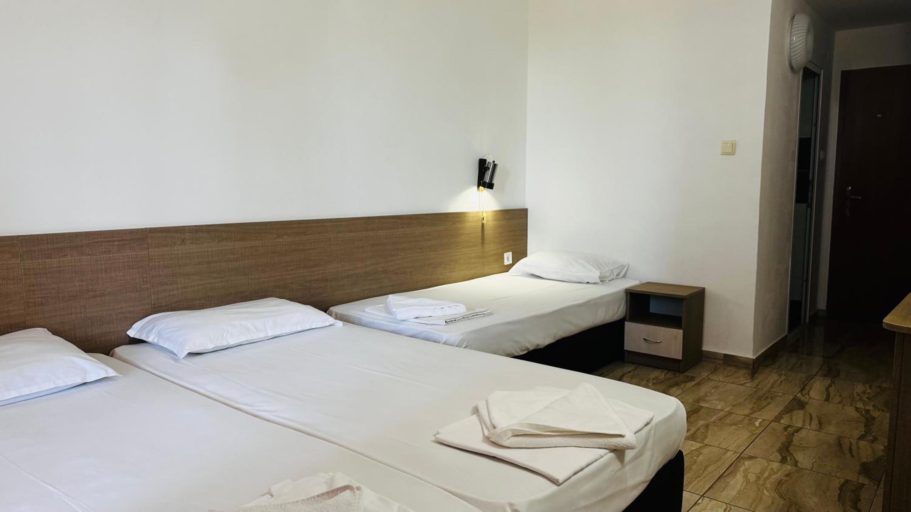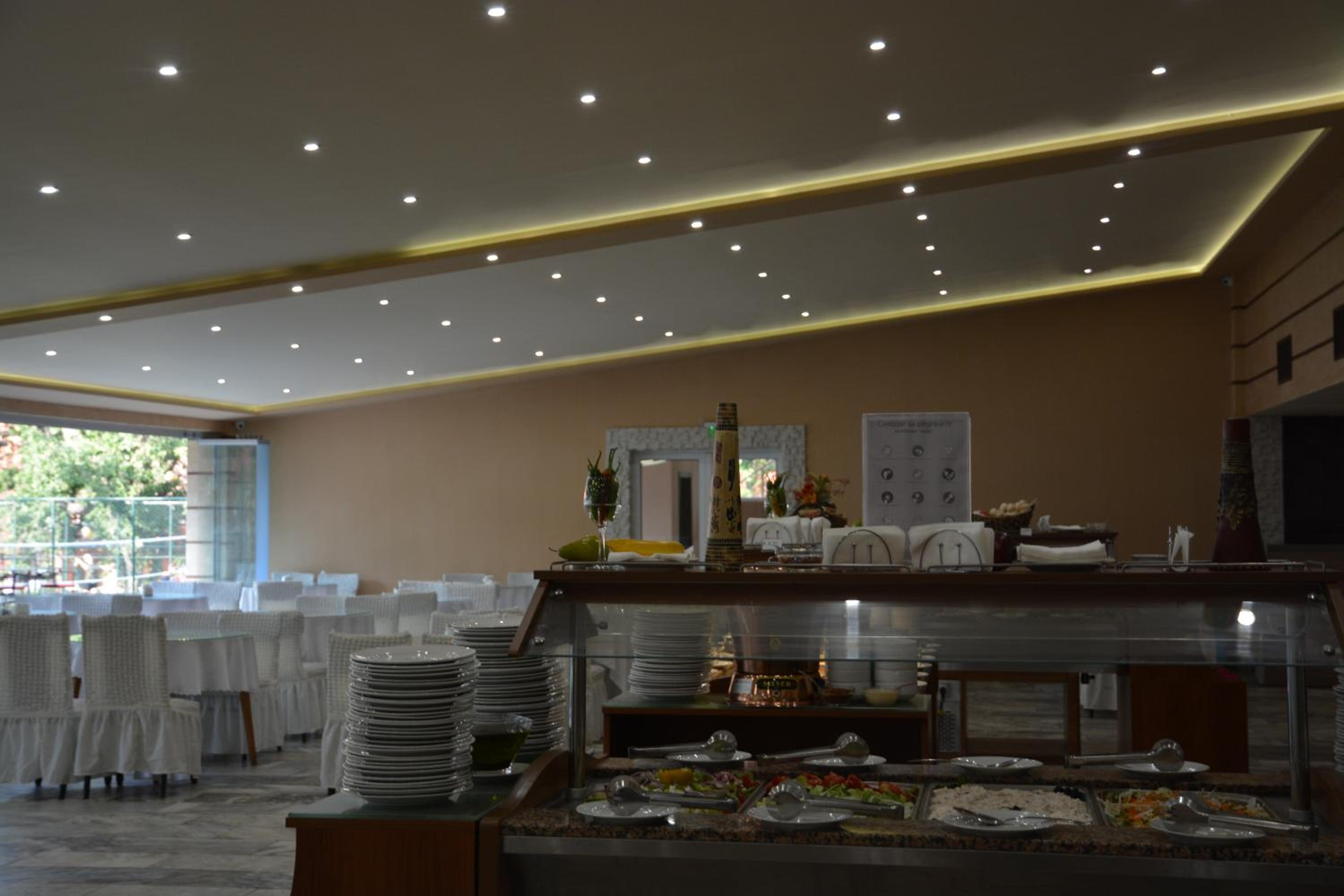 Басейна имаше извадена лампа която не оправиха за целия престой беше ни страх да пуснем децата вътре храната беше една и съща всеки ден стаята беше много тясна хладилника се отваряше не повече от една педя банята също беше тясна вратата се удряше в тоалетната за да я ползваш трябваше да влезеш да отидеш към душа и да затвориш вратата.