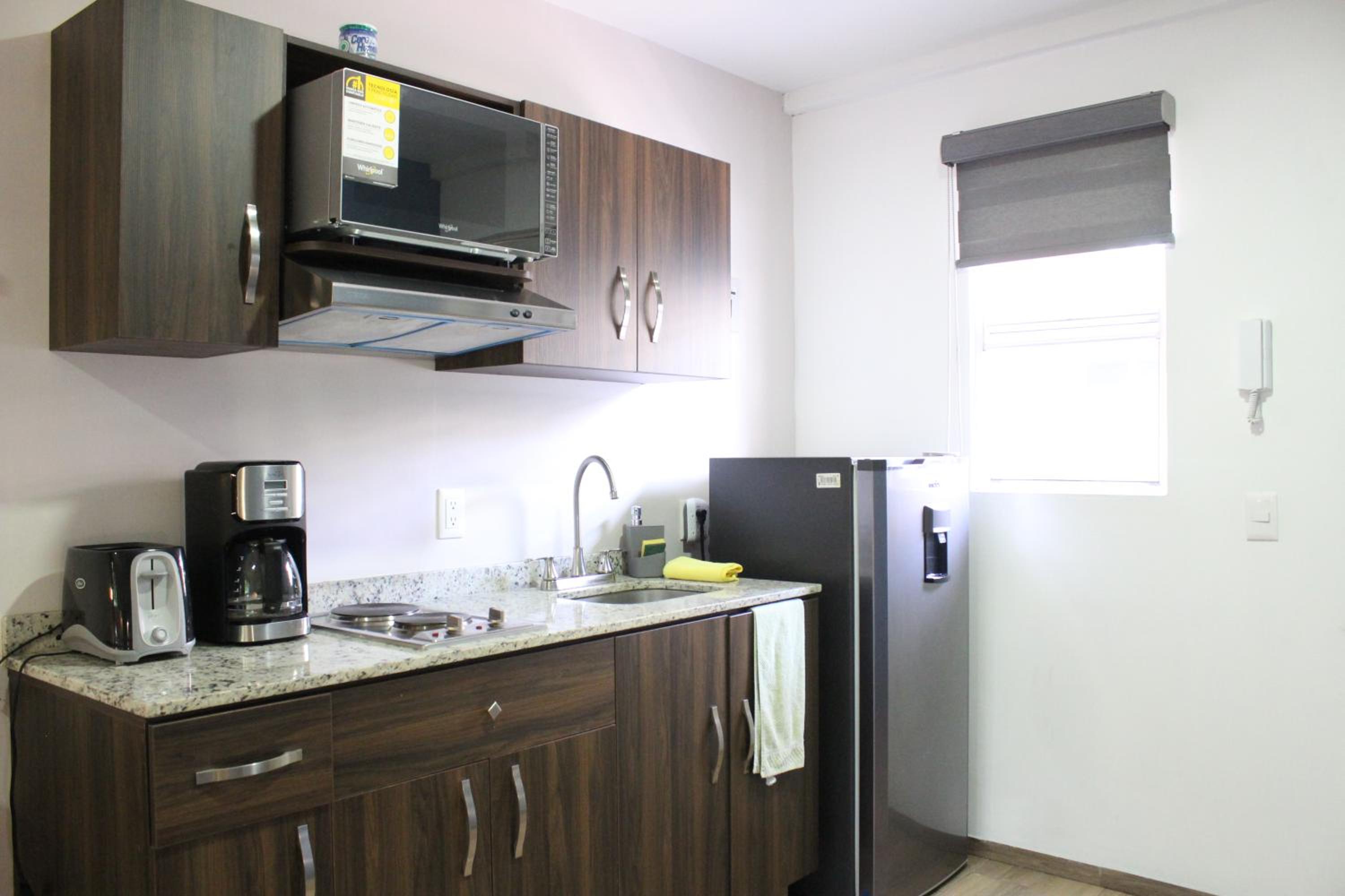 Es un lugar muy bonito y bien ubicado en una zona que se ve bonita y aparentemente segura, la tele tiene varios canales gratis, las almohadas y cama son cómodas, es muy amplia la habitación y tiene su pequeña cocineta, barra, un escritorio, armario y un sofá, el internet es bueno. Fue una estancia agradable, la recomendaría.