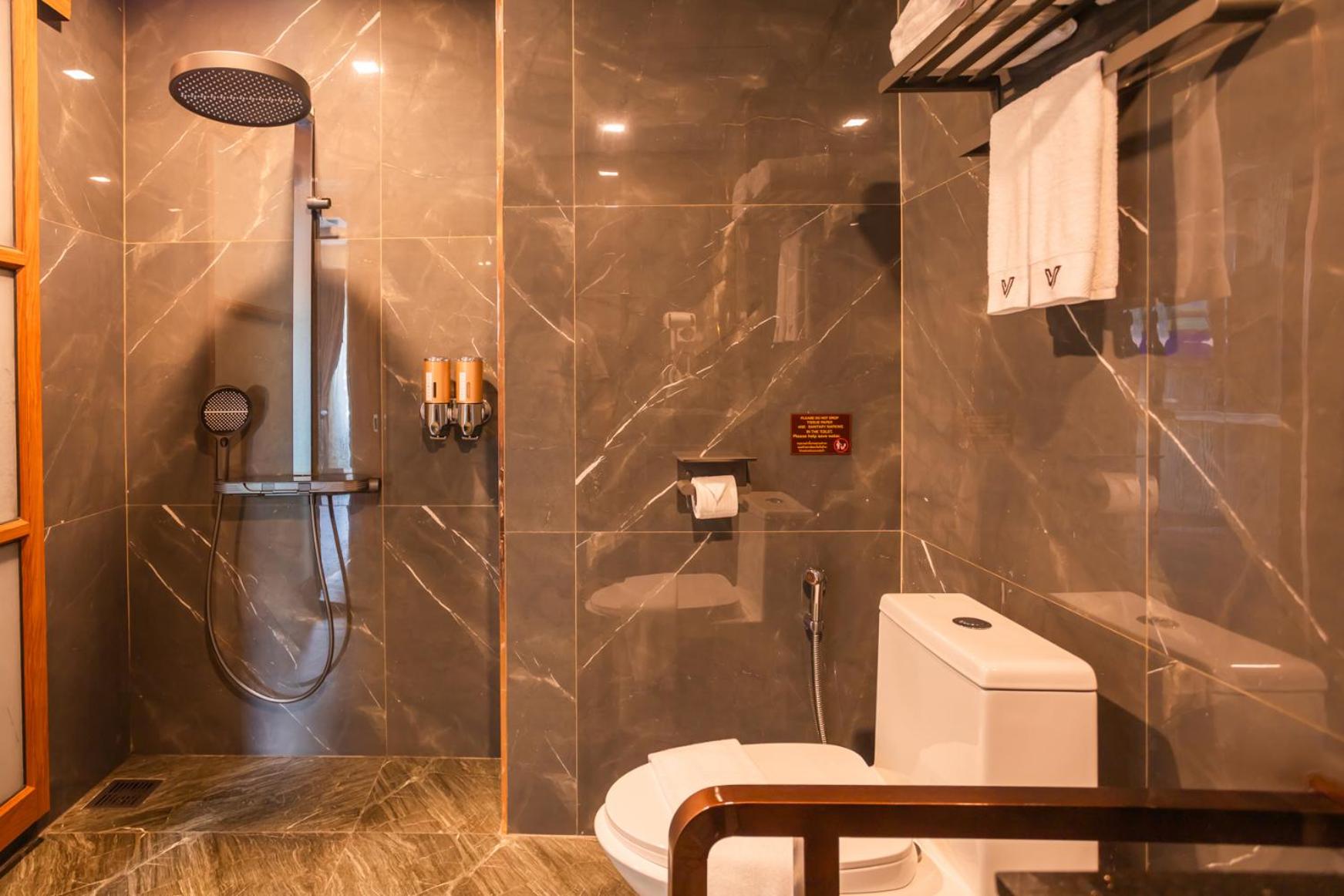 Heel goed douchen en producten gratis. ( scheermesje-tandenborstel- oorstokjes) heel goed bed!