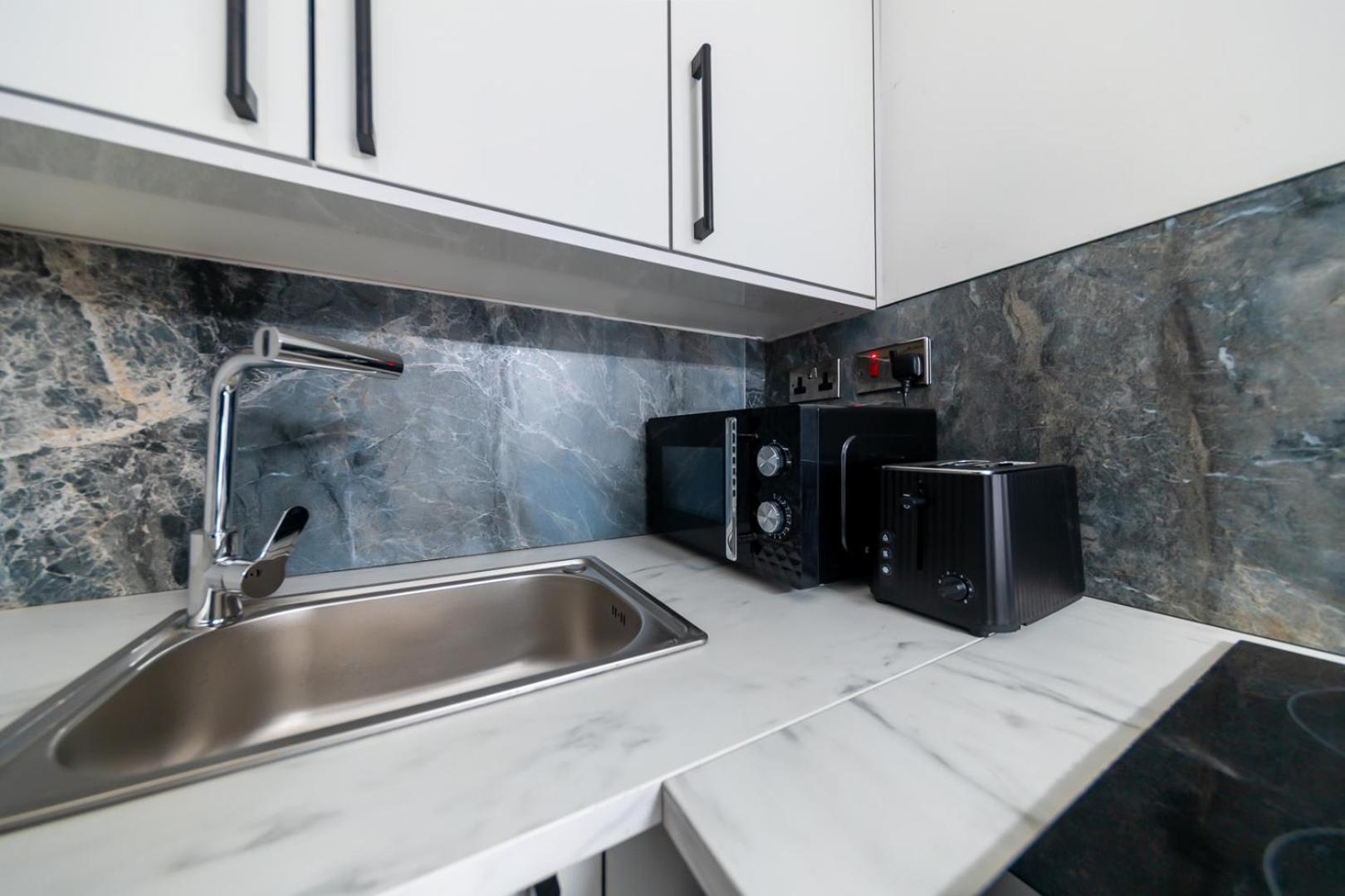 The kitchen didn’t have much in it. We had bought food to make but the kitchen didn’t have a saucepan or anything really to do this very basic we didn’t make any food in the end in the kitchen and paid out for delivery.
