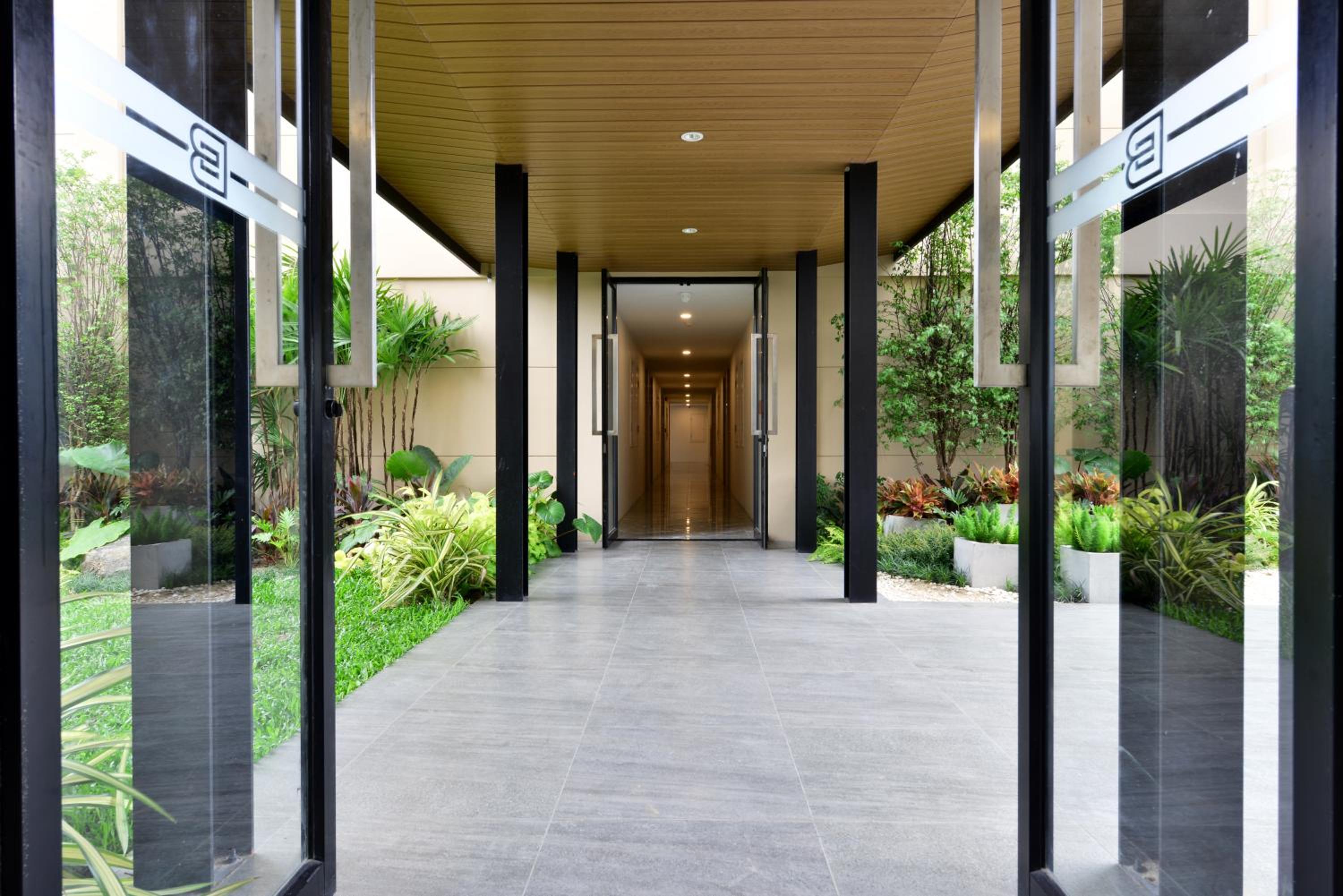 Kena basseiniala hotelli sisehoovis.