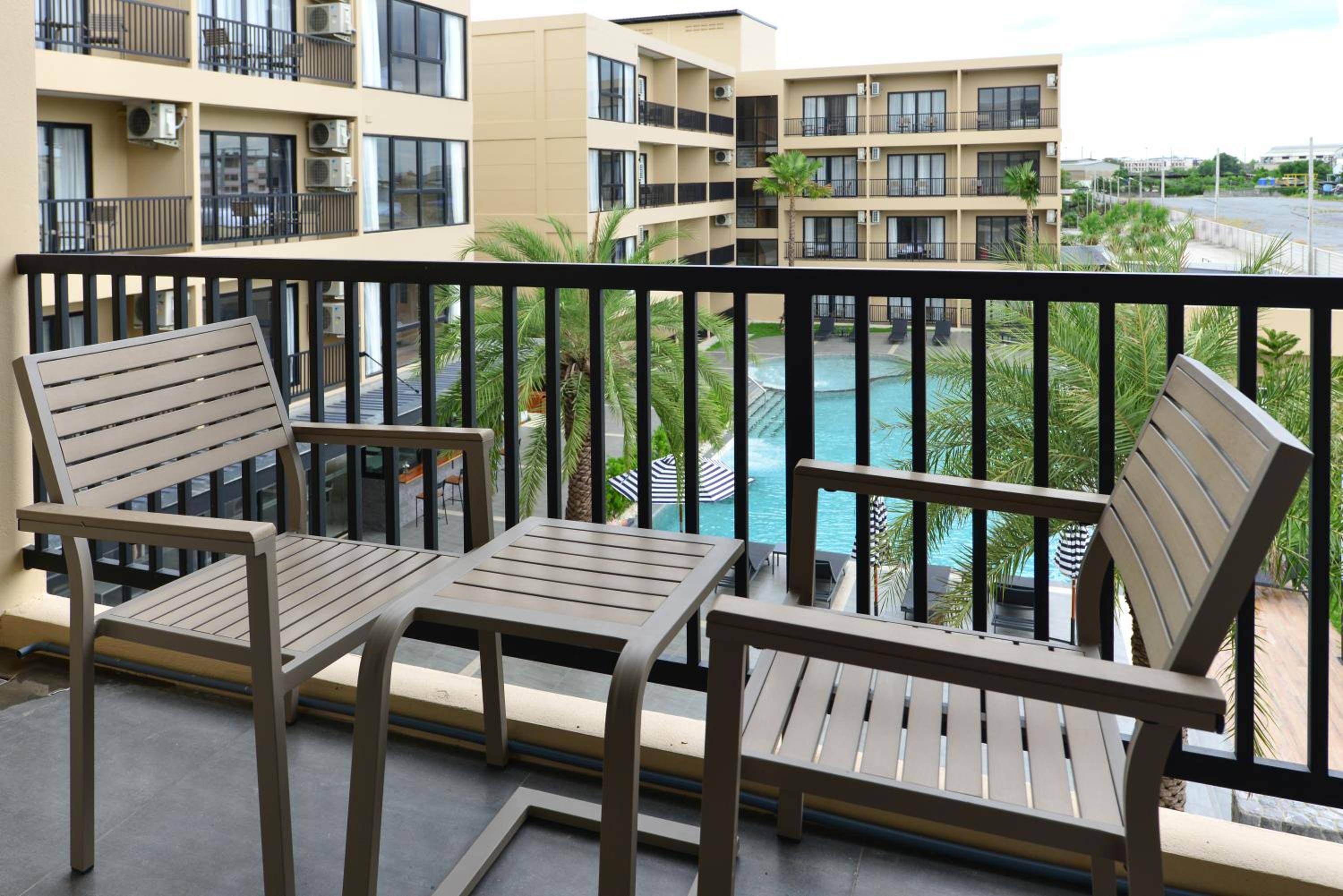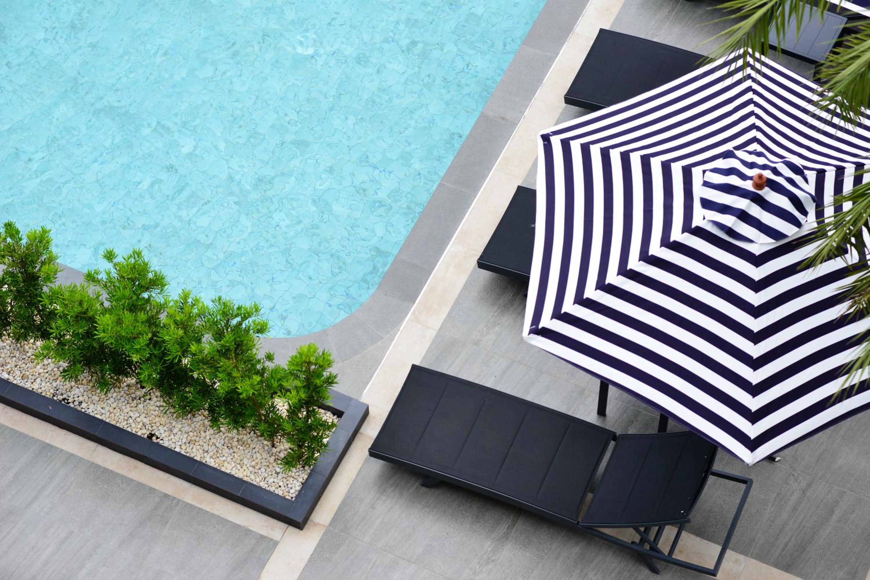 Indulge in our refreshing outdoor swimming pool surrounded by lush gardens, providing a tranquil escape after a long day of travel or exploration.