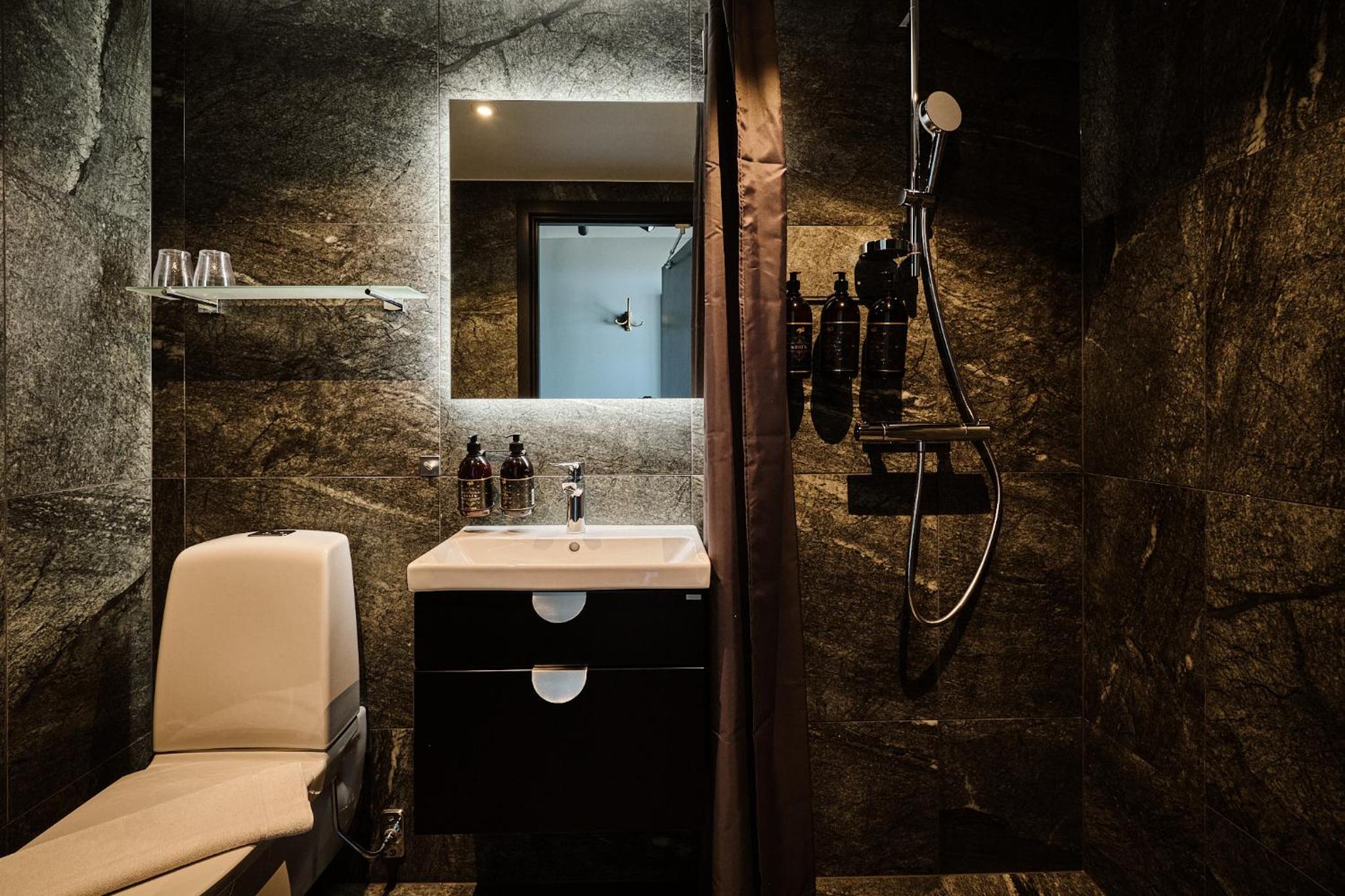 Sæbeprodukterne i badeværelset er lidt overdøvende og ikke så diskret. Det er ikke en duft for alle.