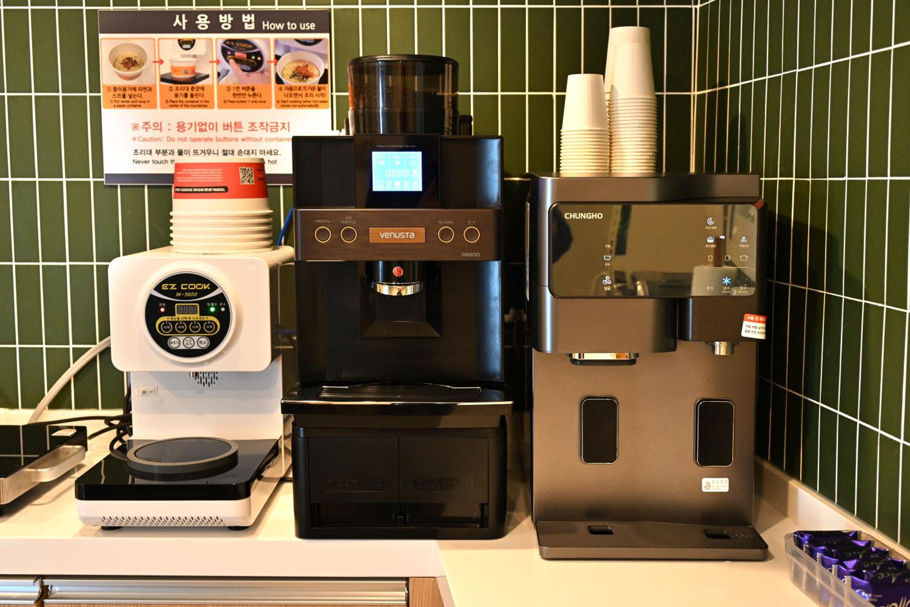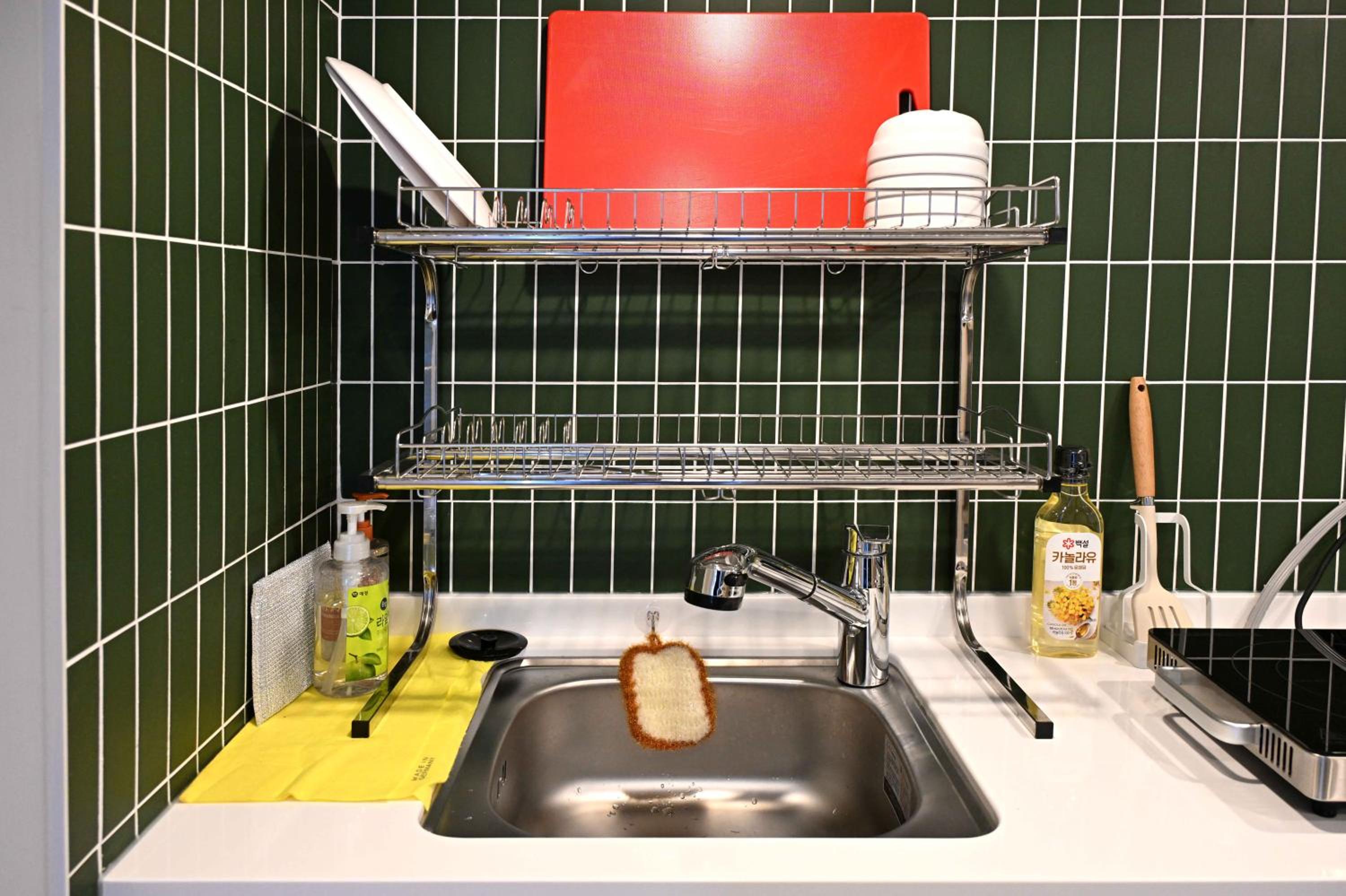 Hôtel récent avec tous les équipements nécessaires, la cuisine est équipée et propre, machine à laver, sèche linge La personne présente est accueillante . La station de métro de hoegi est juste à côté