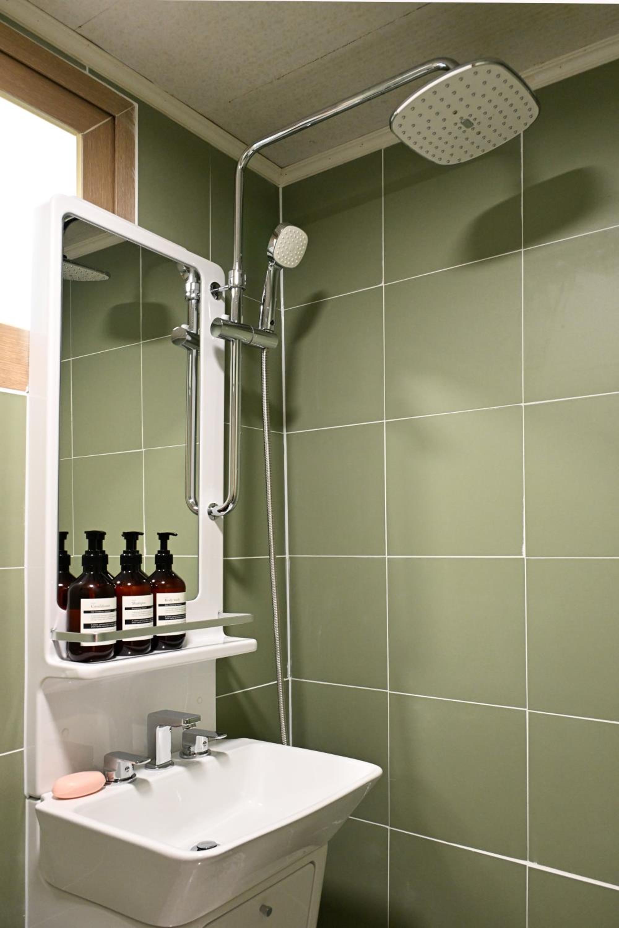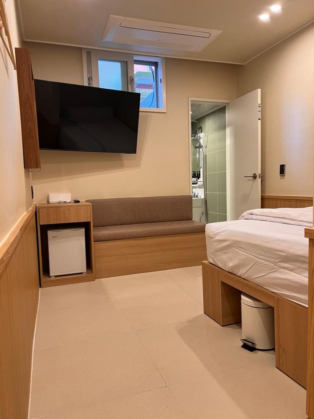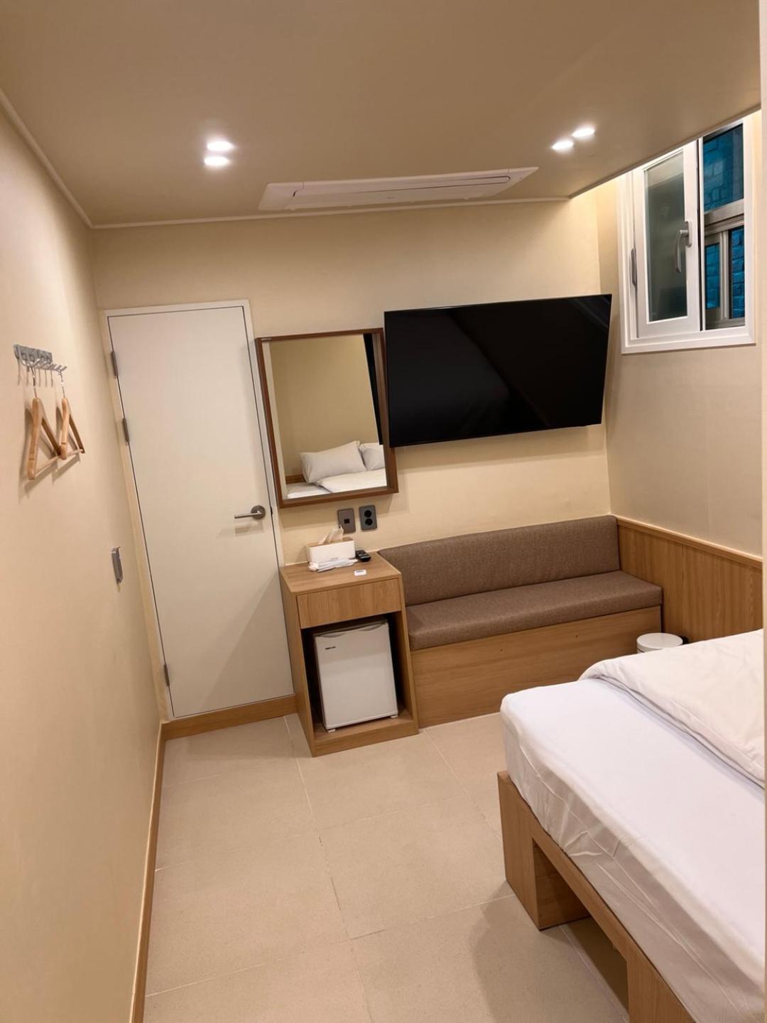 Die Einrichtung ist mega. Alles wirkt neu und sehr gepflegt! Schönes kleines Doppelzimmer mit exzellentem Badezimmer und ich habe viel in Korea gesehen. Dieses Bad ist mit Abstand das Beste, was ich bisher hatte.