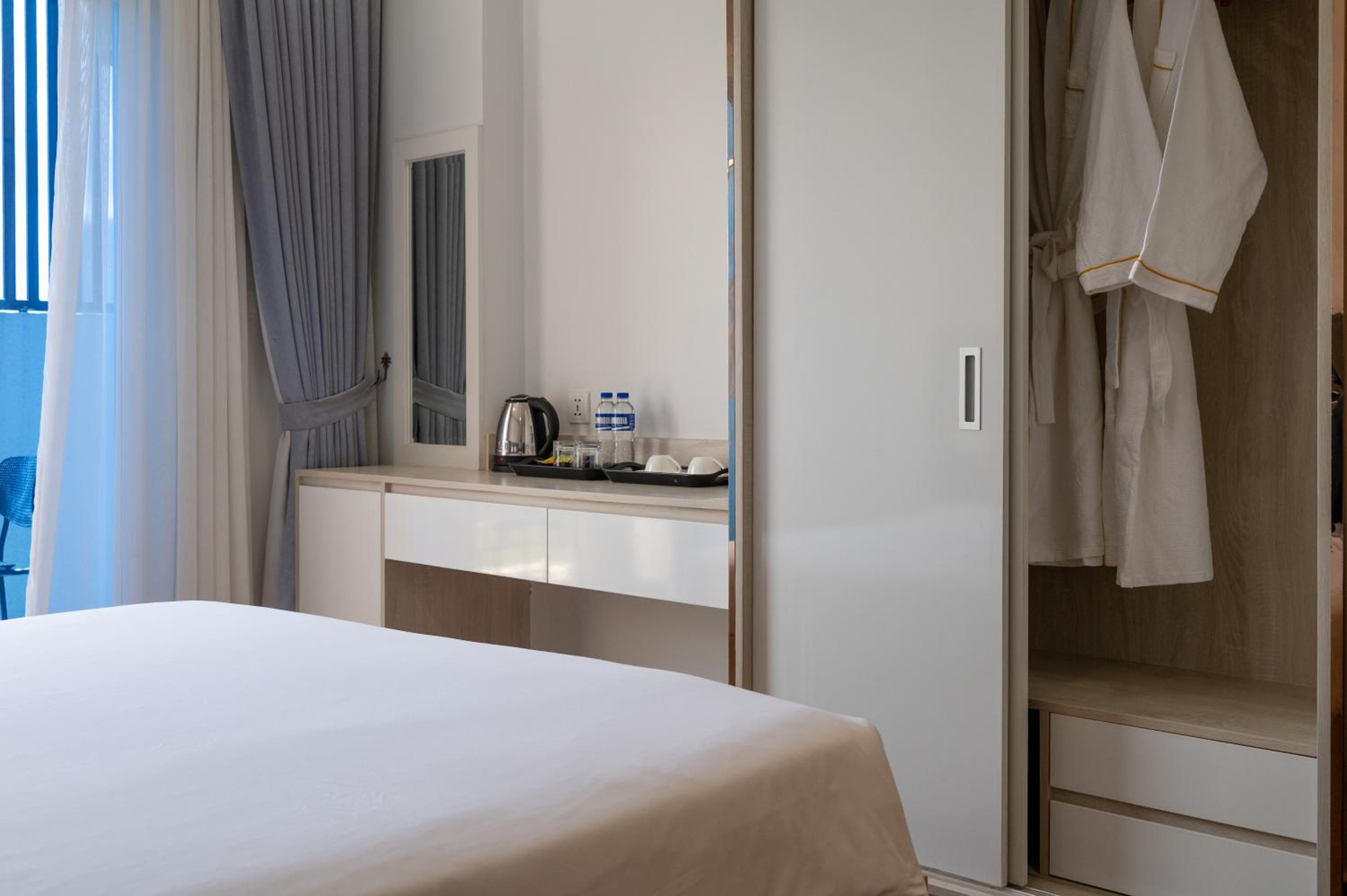 Our air-conditioned rooms are designed for comfort, featuring modern amenities such as a flat-screen TV, microwave, and private balcony, making your stay feel like a home away from home.