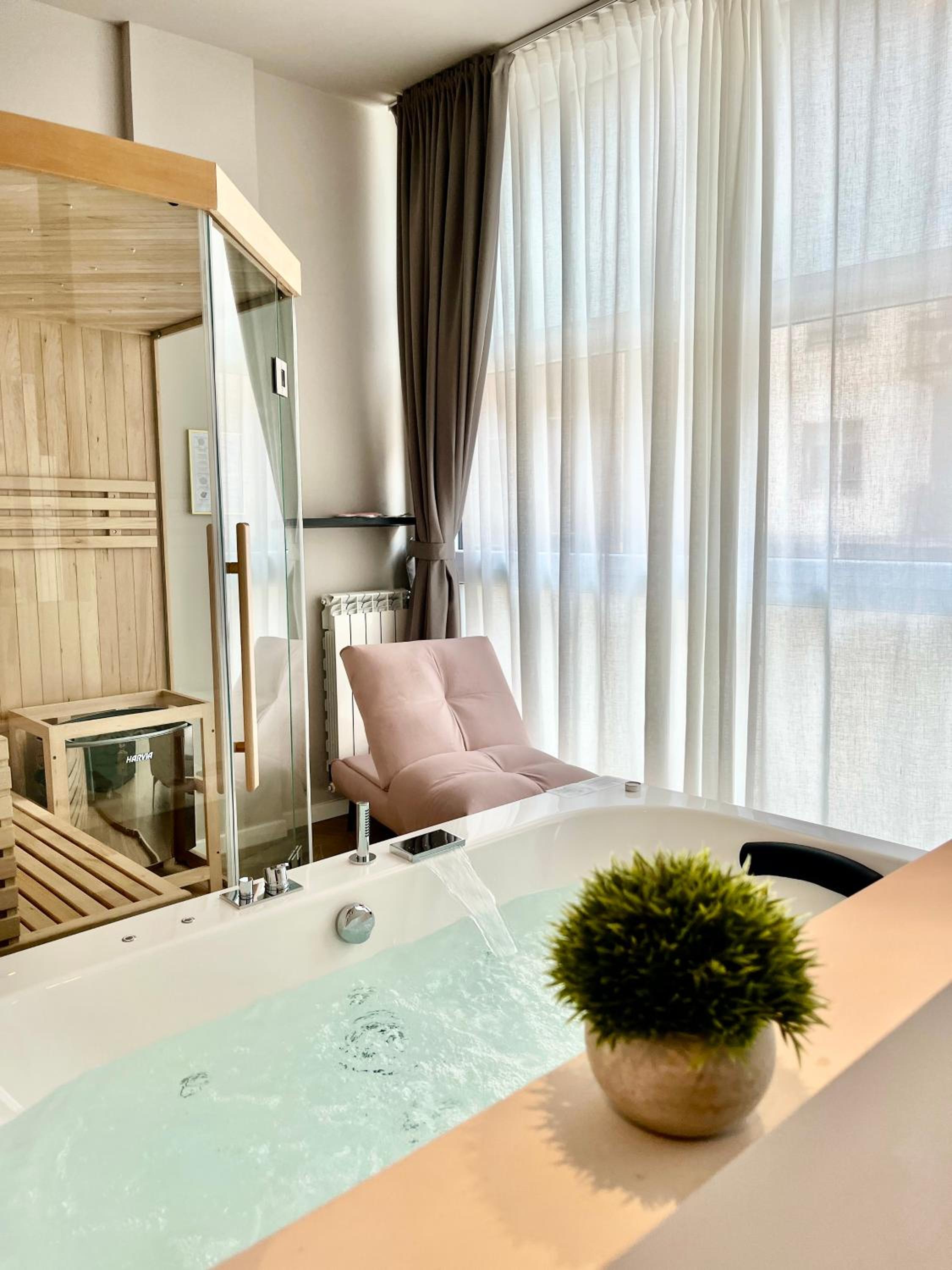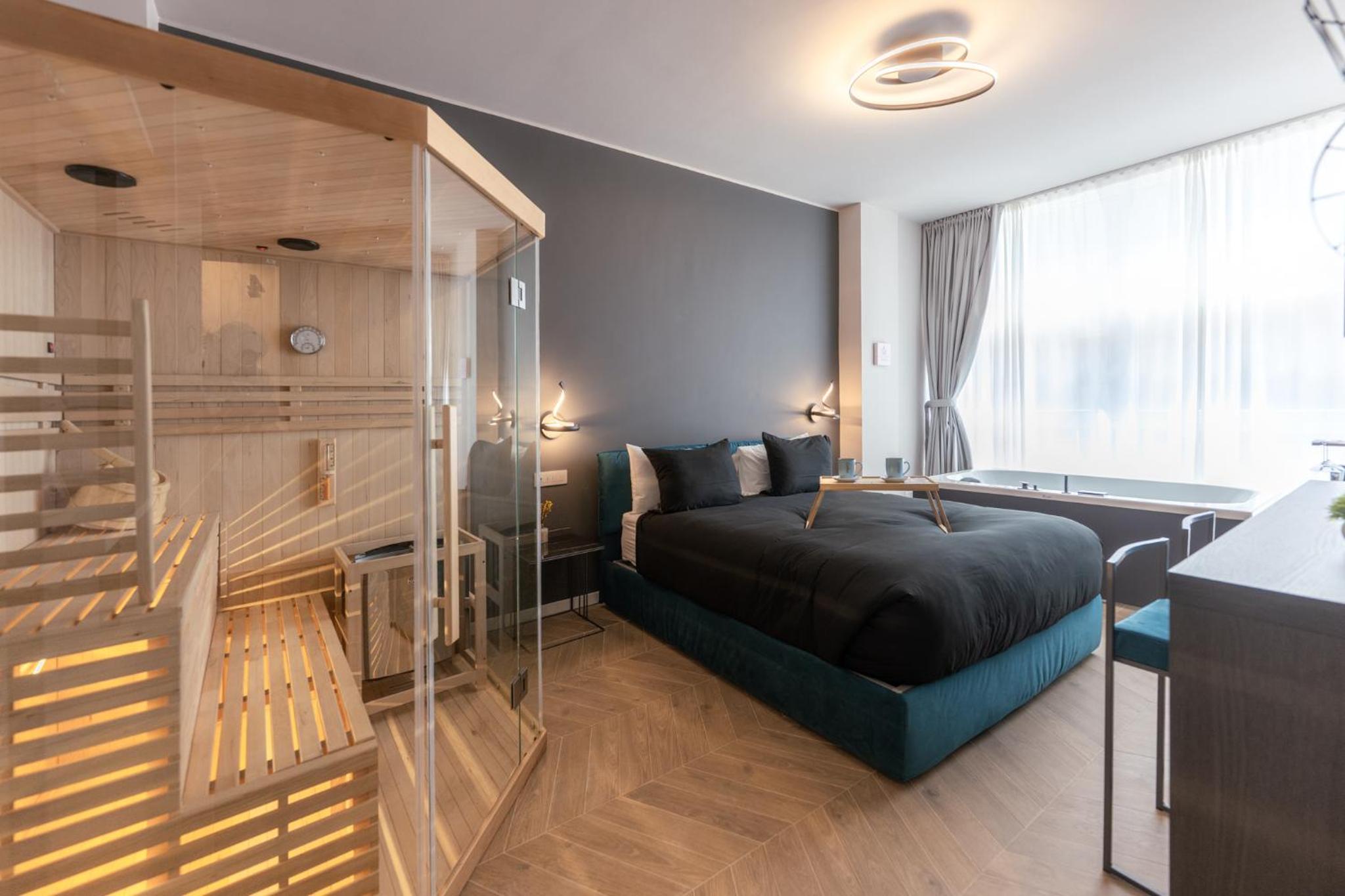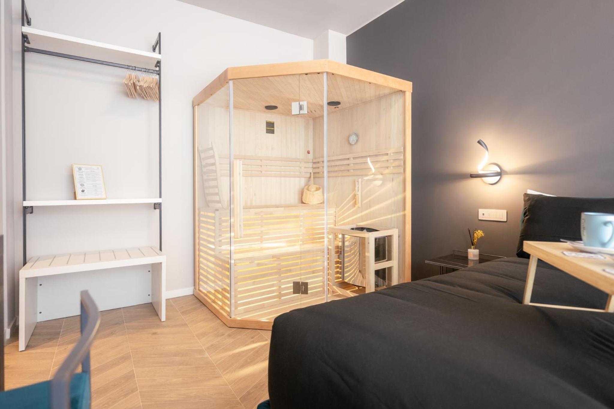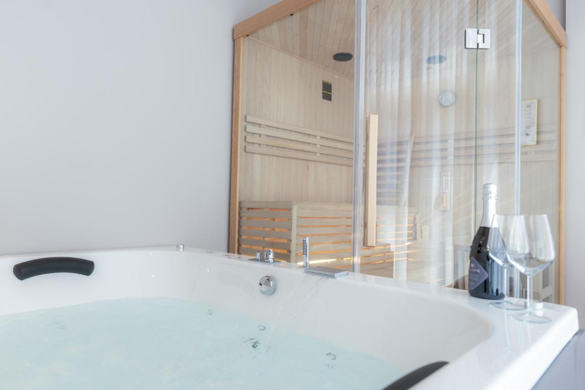 Unwind in our luxurious hot tub or rejuvenate in the sauna, perfect for a serene escape after a day of exploring. Enjoy the sun in our solarium, allowing you to bask in the warmth in complete tranquility.