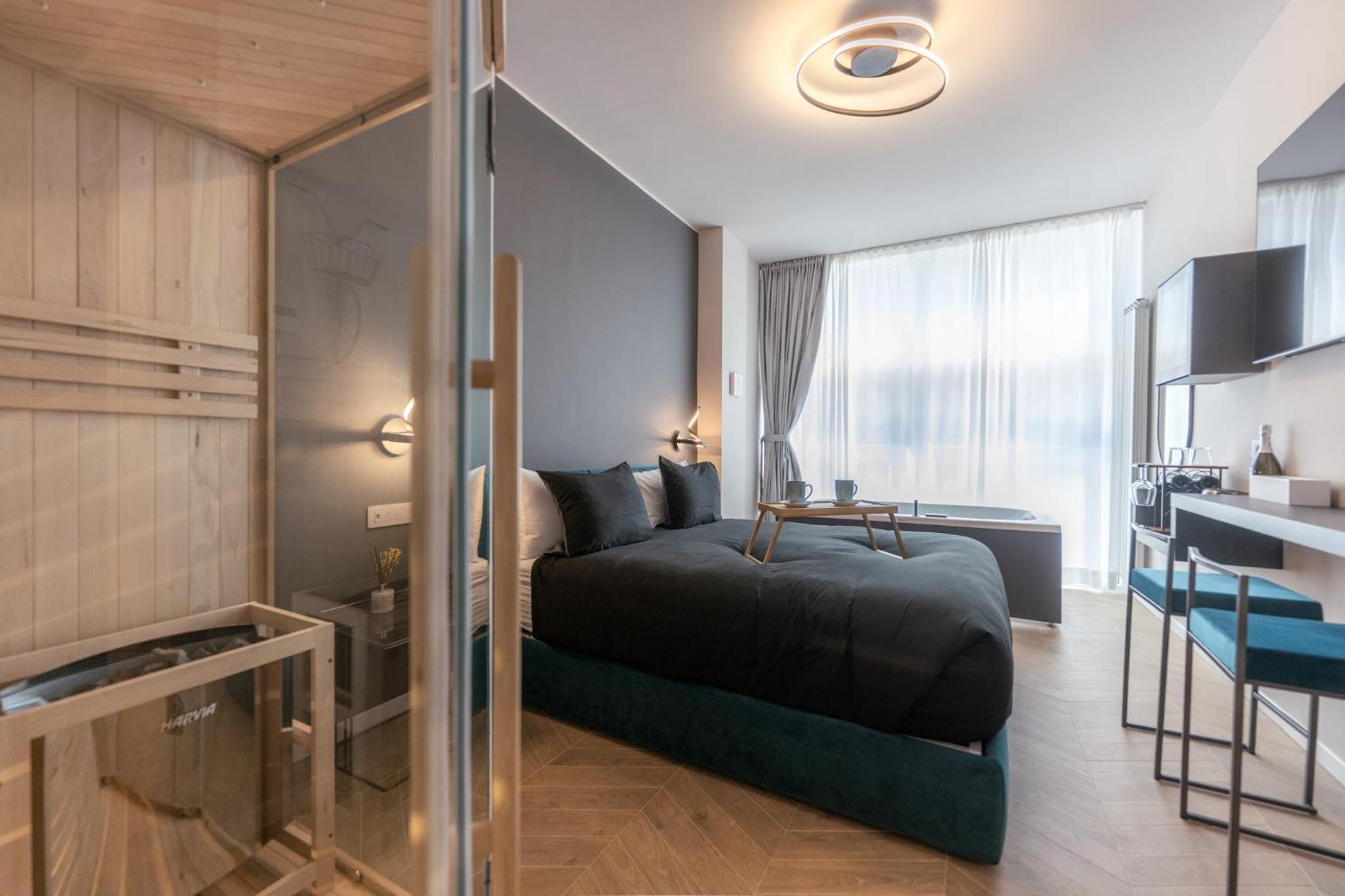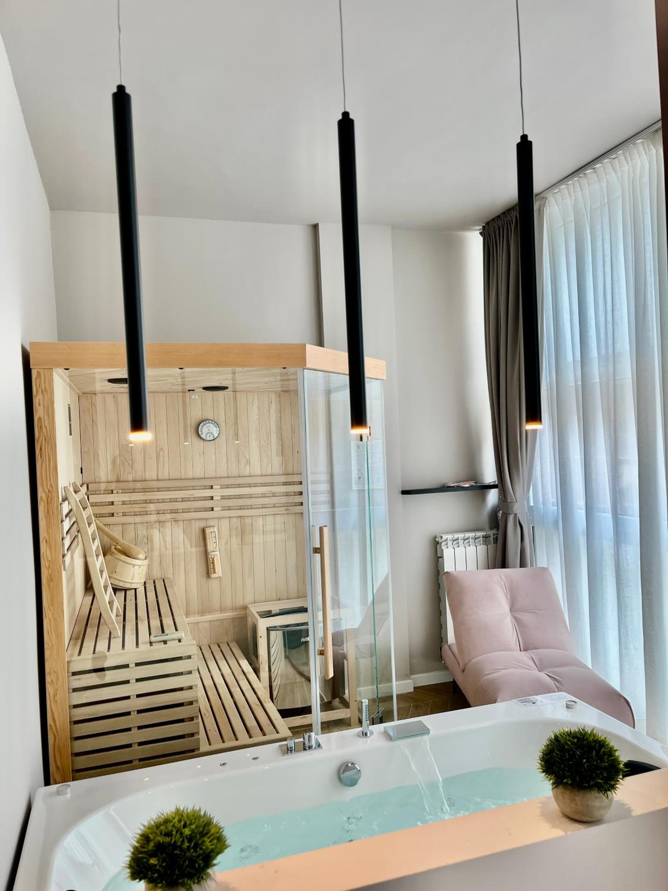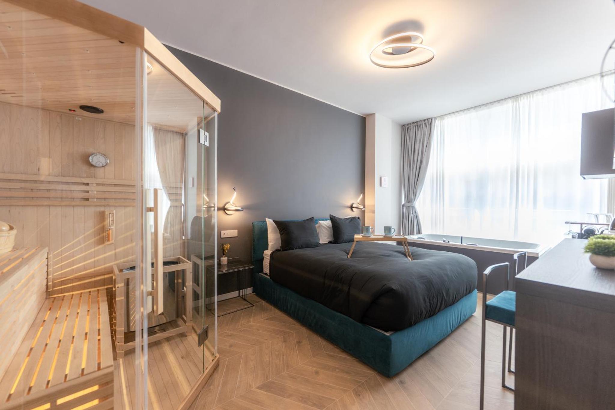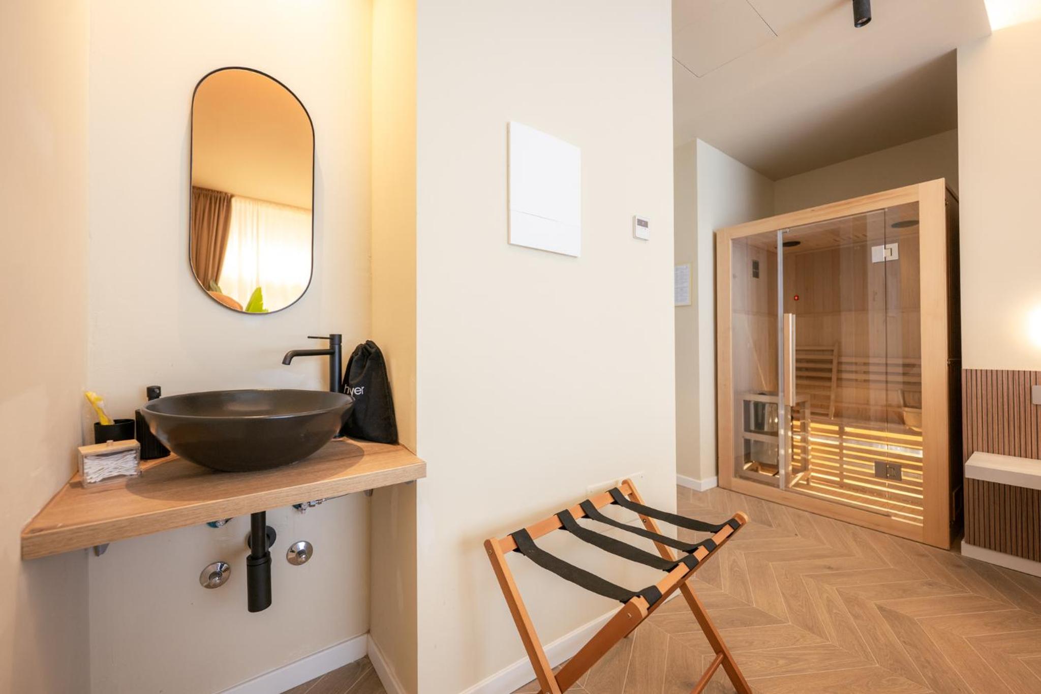 Unwind in our luxurious hot tub or rejuvenate in the sauna, perfect for a serene escape after a day of exploring. Enjoy the sun in our solarium, allowing you to bask in the warmth in complete tranquility.