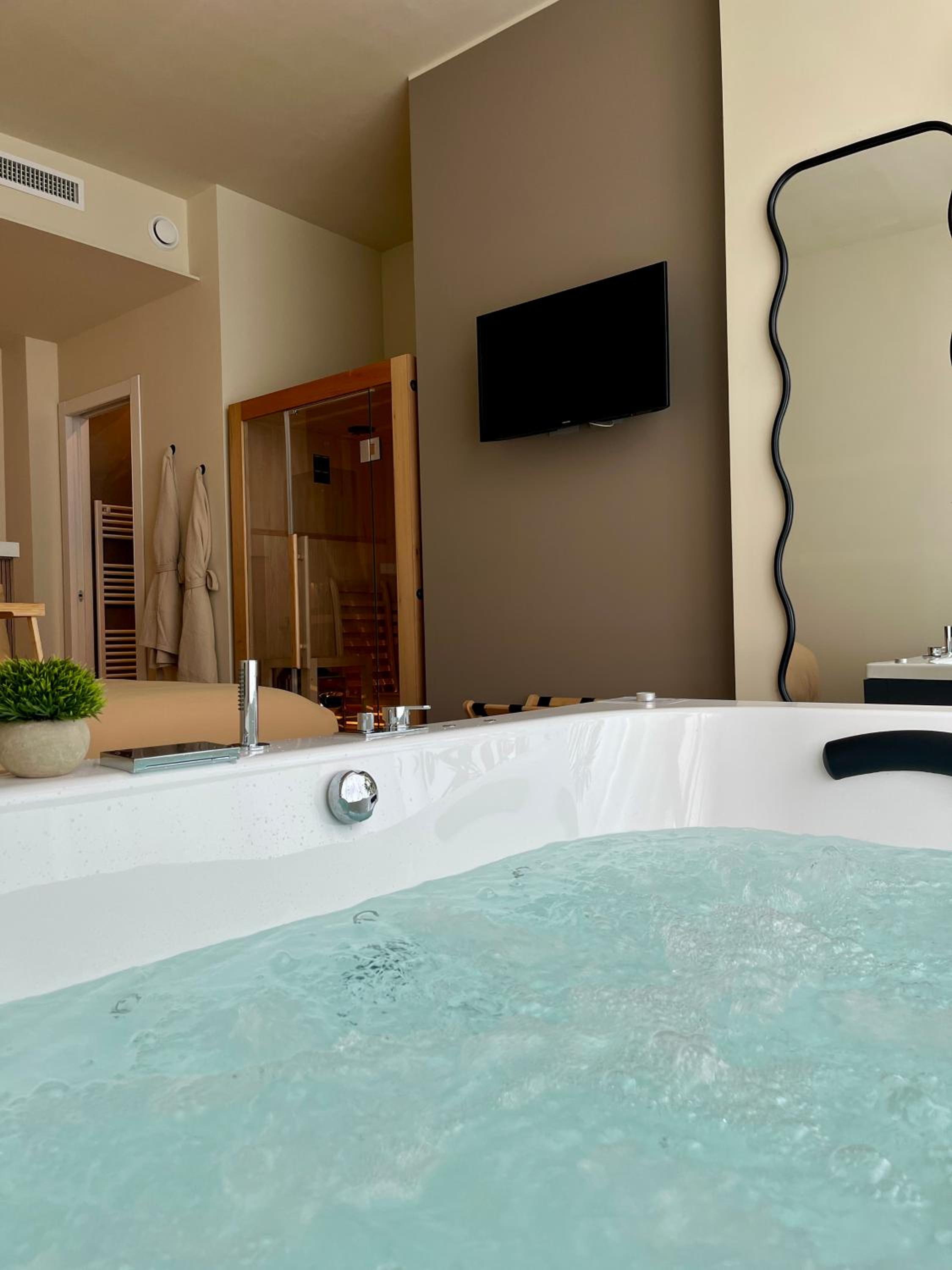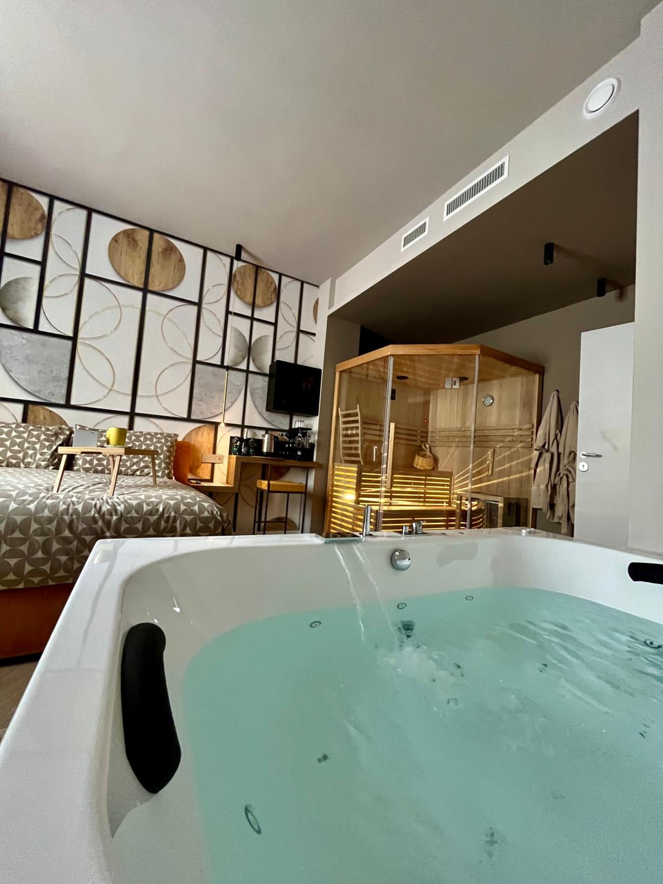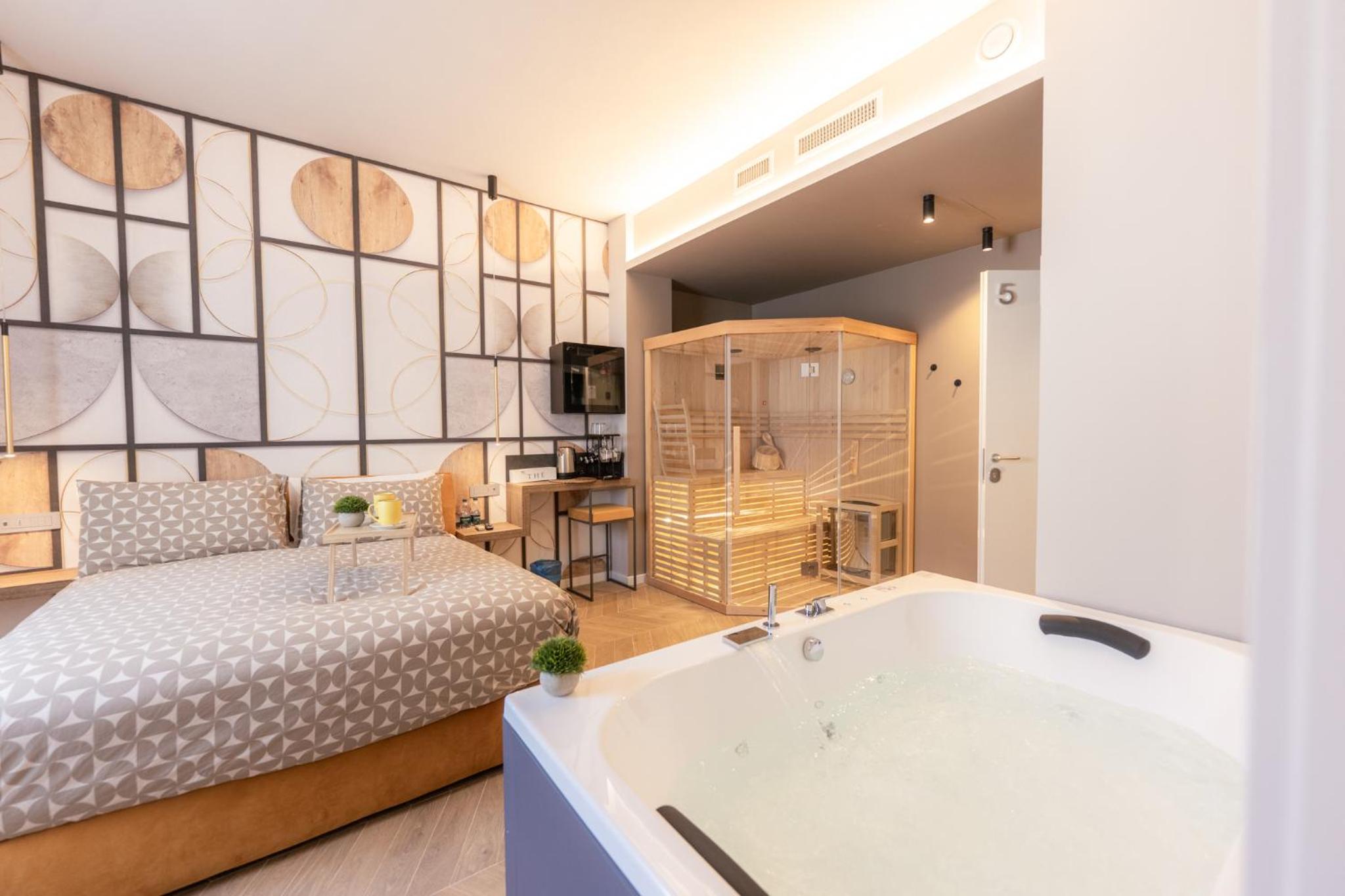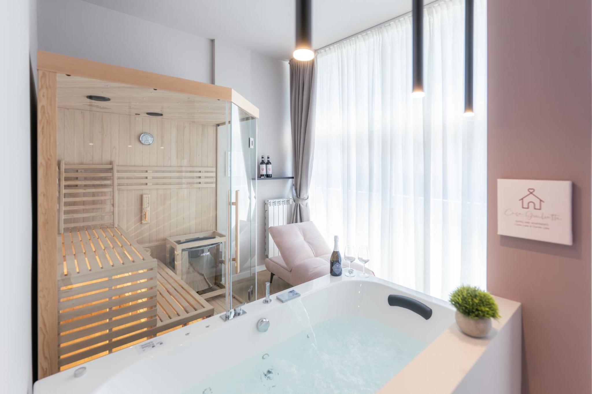 Unwind in our luxurious hot tub or rejuvenate in the sauna, perfect for a serene escape after a day of exploring. Enjoy the sun in our solarium, allowing you to bask in the warmth in complete tranquility.